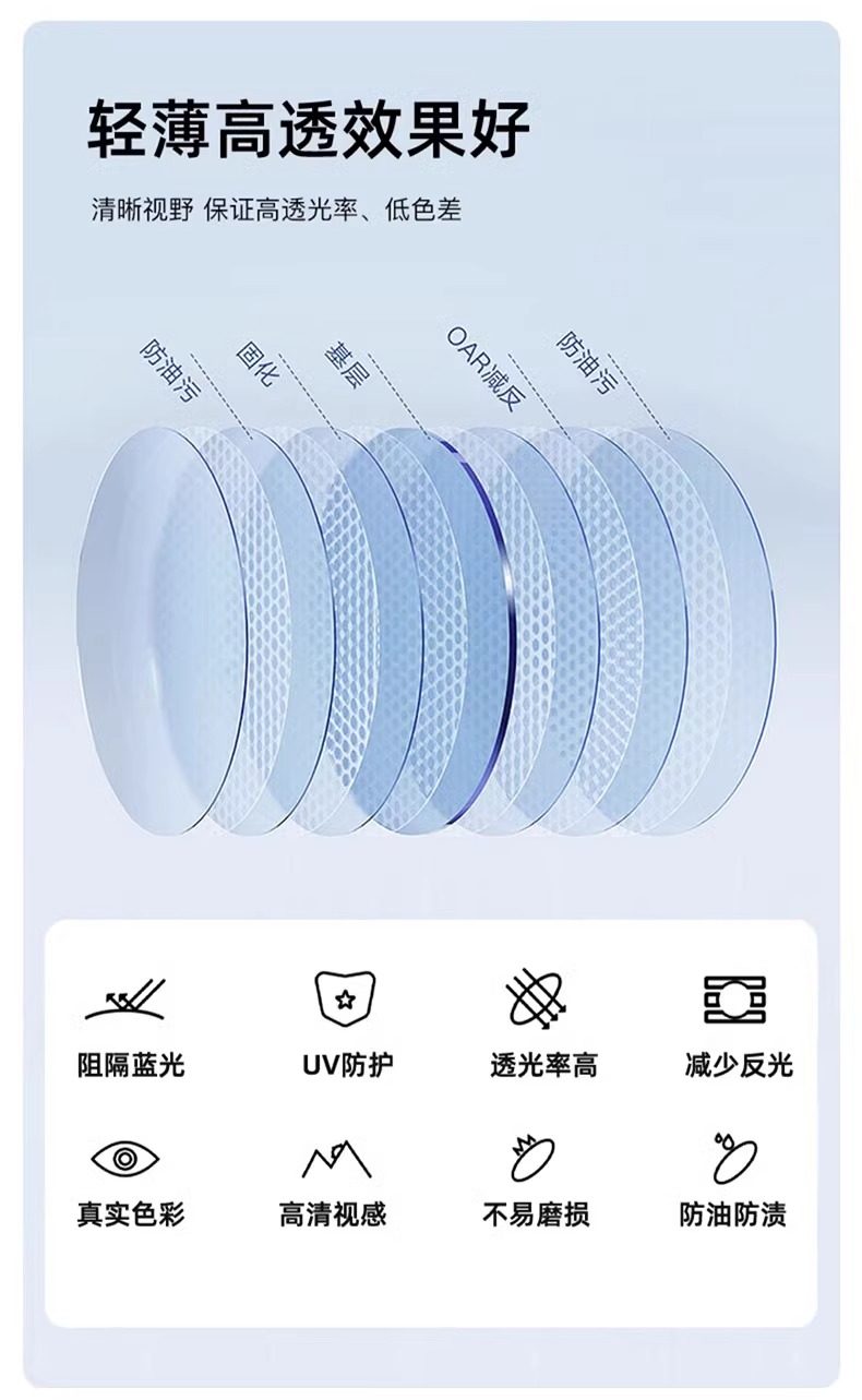 | Lens Refractive Index | Non-Prescription Blue Light Blocking Lenses,Comfortable Tr Frame + Non-Prescription Anti-Blue Light Lenses,[Thin] 1.56 Anti-Radiation Aspherical Lens [0-300 Degrees],[Thinner] 1.60 Anti-Radiation Aspherical Lens [0-500 Degrees],[Ultra-Thin] 1.67 Anti-Radiation Aspherical Lens [0-800 Degrees],[Thin] 1.56 Anti-Blue Light and Anti-Radiation Lenses [Suitable for 0-300 Degrees],[Thinner] 1.60 Anti-Blue Light and Anti-Radiation Lenses [Suitable for 0-500 Degrees],[Ultra-Thin] 1.67 Anti-Blue Light and Anti-Radiation Lenses [Suitable for 0-800 Degrees],Essilor's Wanxin 1.56 Daily Anti-Radiation Lenses [Suitable for 0-300 Degrees],Essilor's Vanxin 1.60 Daily Anti-Radiation Lenses [Suitable for 0-500 Degrees],Essilor's Wanxin 1.67 Daily Anti-Radiation Lenses [Suitable for 0-800 Degrees],Essilor's Wanxin 1.74 Daily Anti-Radiation Lenses [Suitable for 0-1200 Degrees],Essilor's Wanxin 1.56 Multi-Screen Anti-Blue Light Lenses [Suitable for 0-300 Degrees],Essilor's Wanxin 1.60 Multi-Screen Anti-Blue Light Lenses [Suitable for 0-500 Degrees],Essilor's Wanxin 1.67 Multi-Screen Anti-Blue Light Lenses [Suitable for 0-800 Degrees],Essilor's Wanxin 1.74 Multi-Screen Anti-Blue Light Lenses [Suitable for 0-1200 Degrees] |
