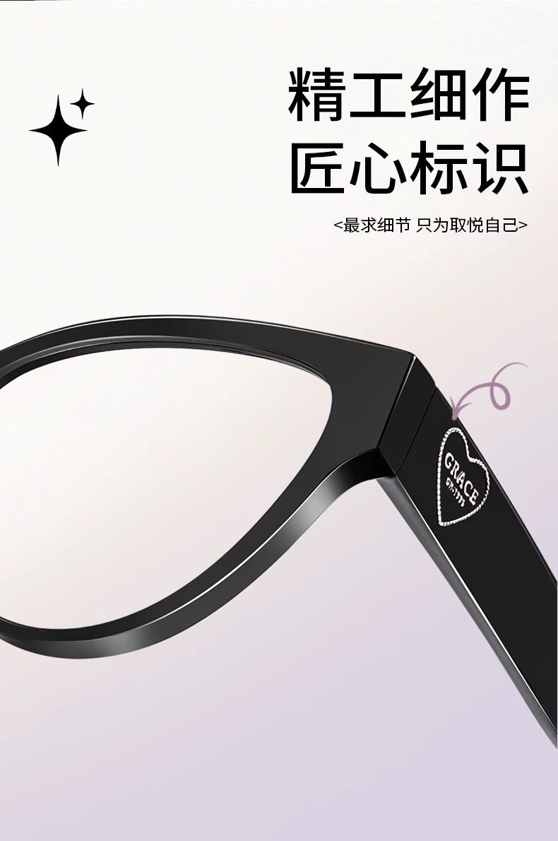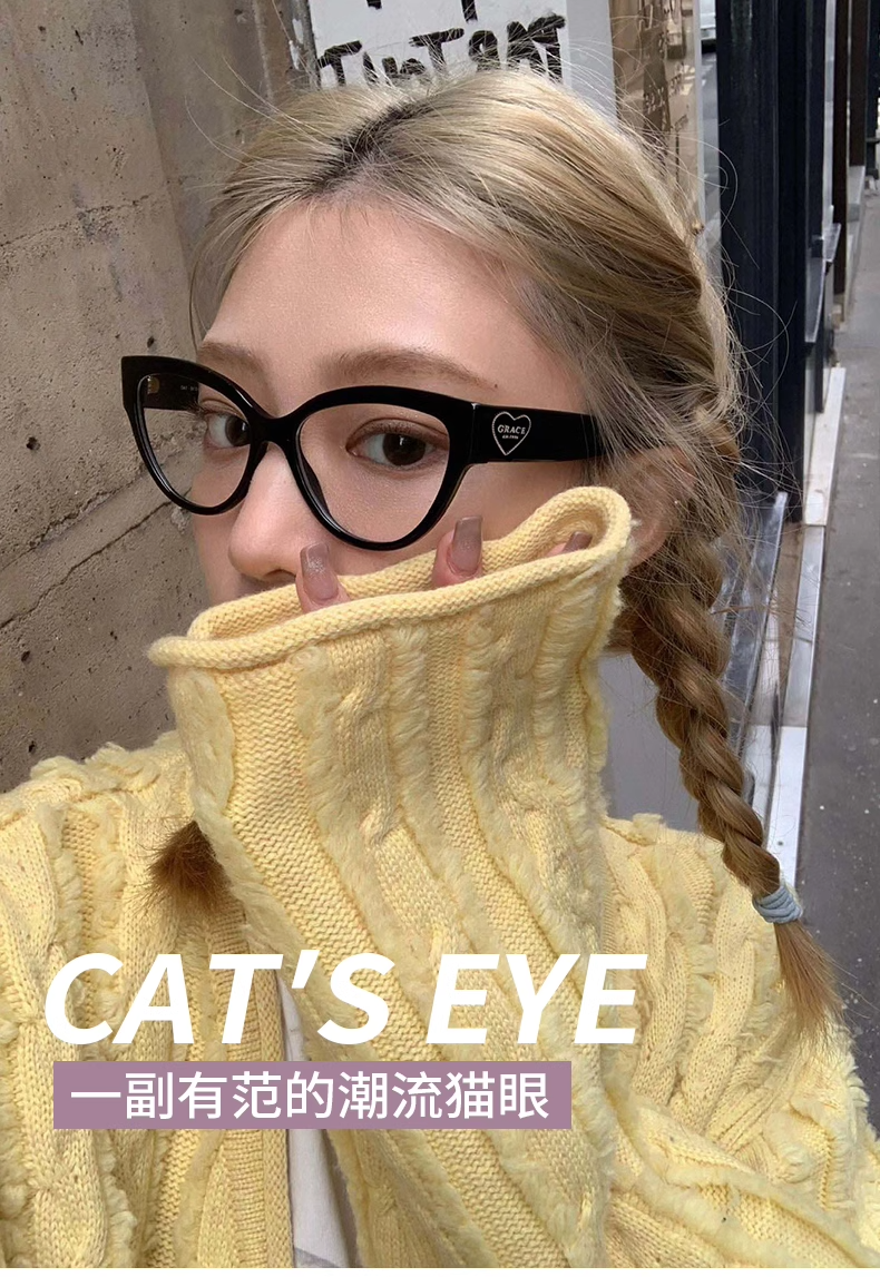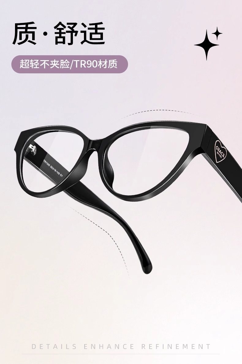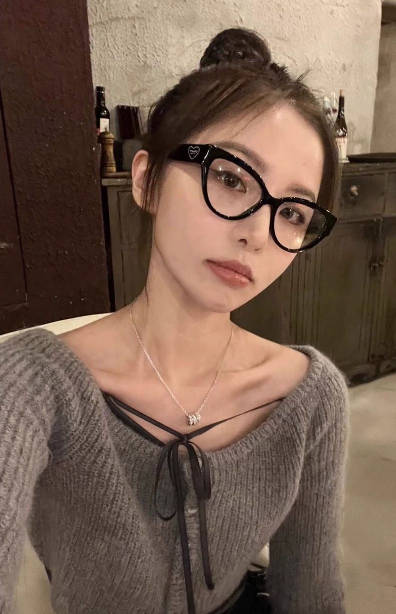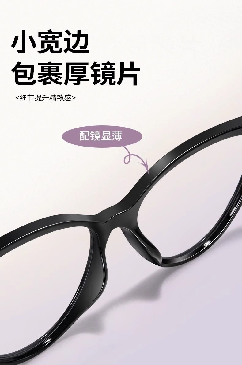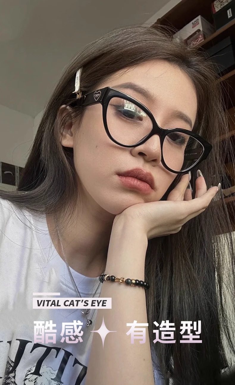 Personalized Cat-Eye Glasses for Nearsighted Women, Customizable Prescription, High-End Style, Natural Look, Makes Face Look Smaller, Black Frame, Suitable for Square and Round Faces