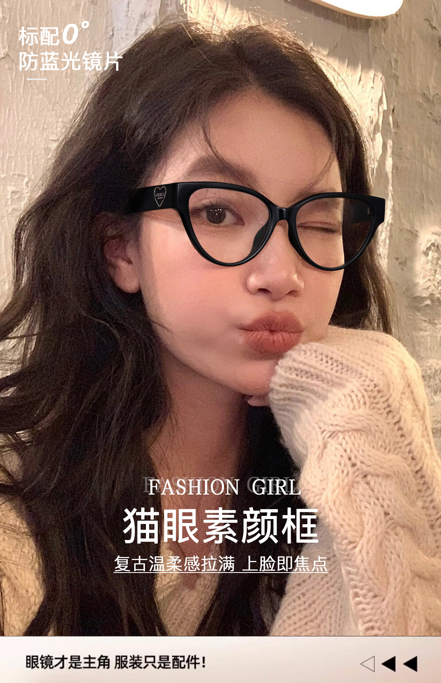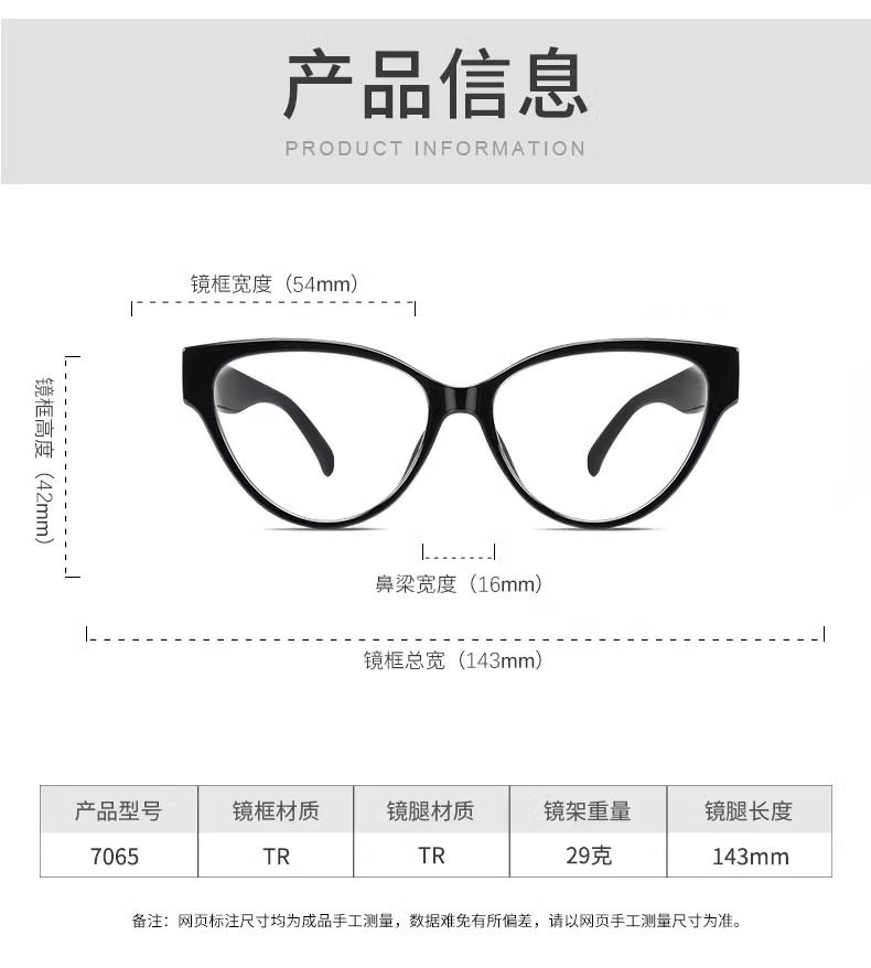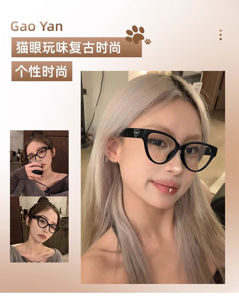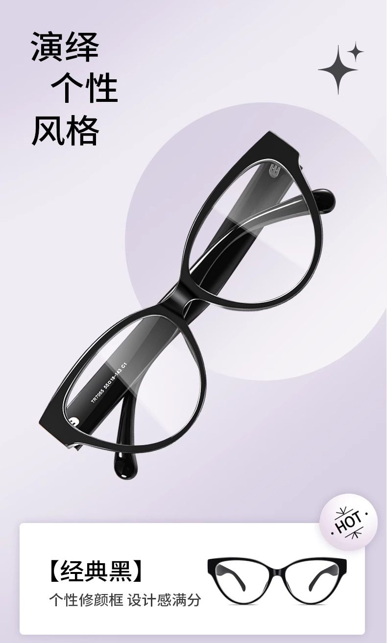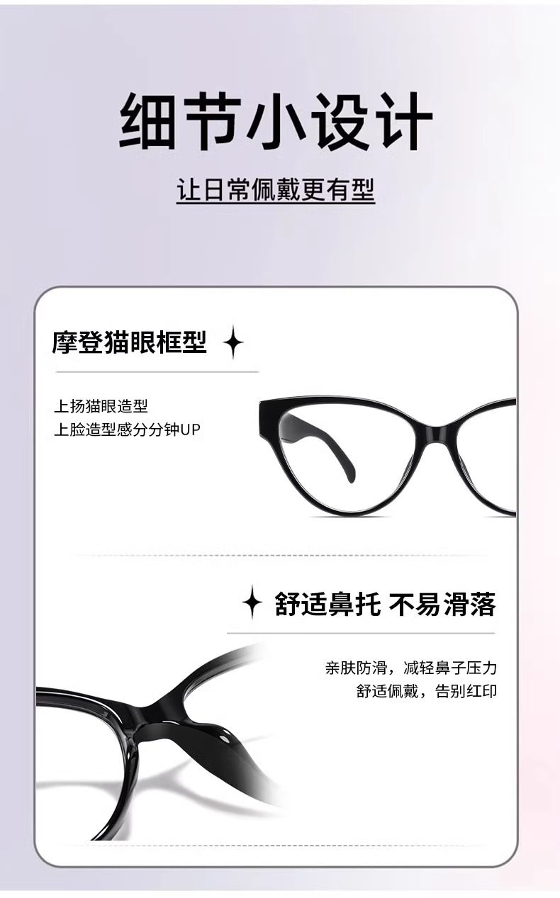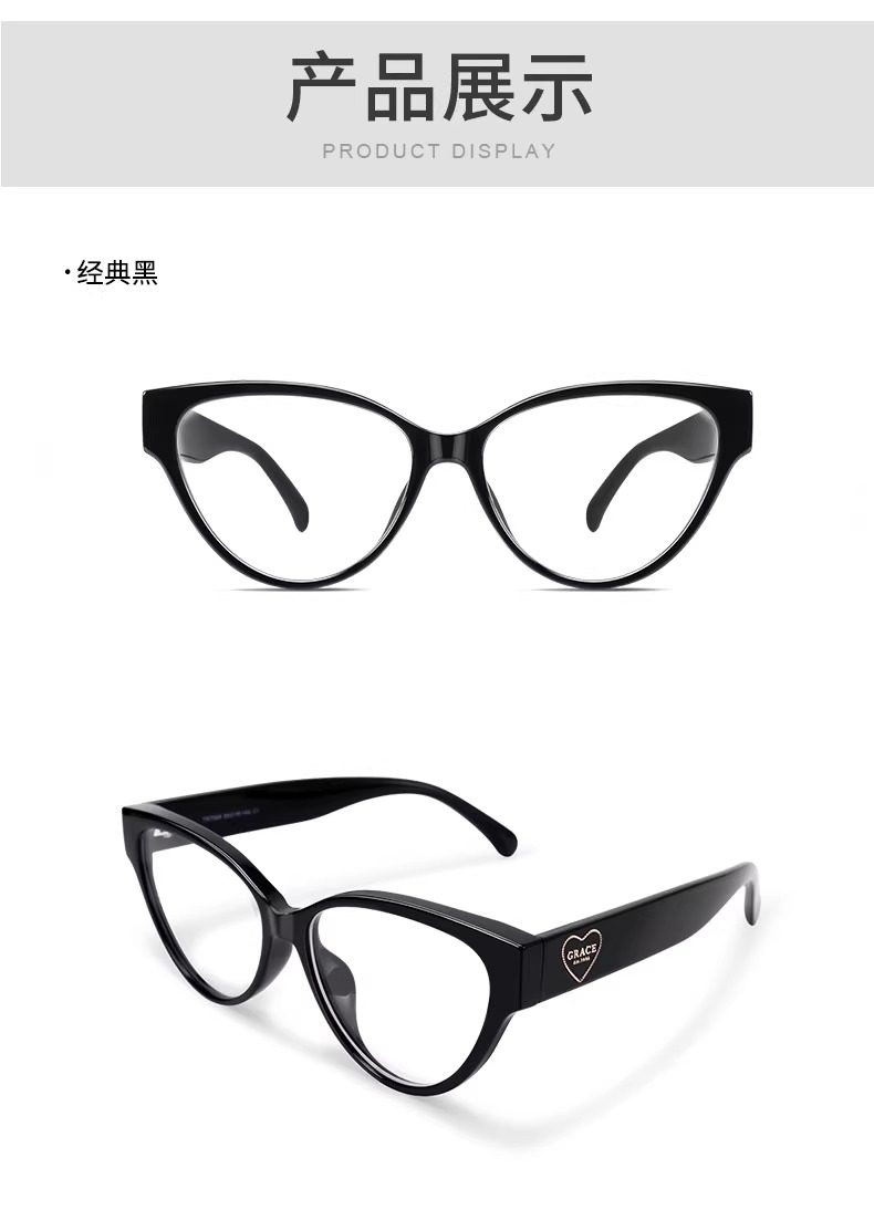 Personalized Cat-Eye Glasses for Nearsighted Women, Customizable Prescription, High-End Style, Natural Look, Makes Face Look Smaller, Black Frame, Suitable for Square and Round Faces