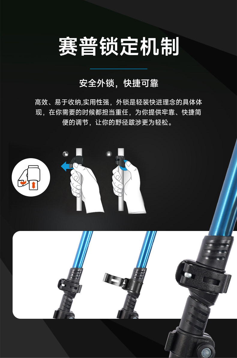 Sai Pu Trekking Poles, Professional Outdoor Aluminum Alloy External Locking Three-Section Telescopic Hiking Poles, Suitable for Children and Adults
