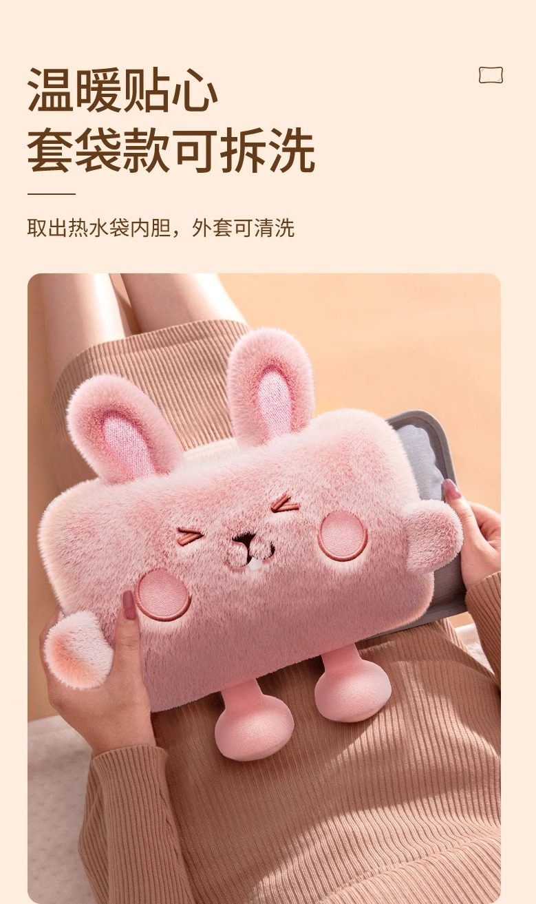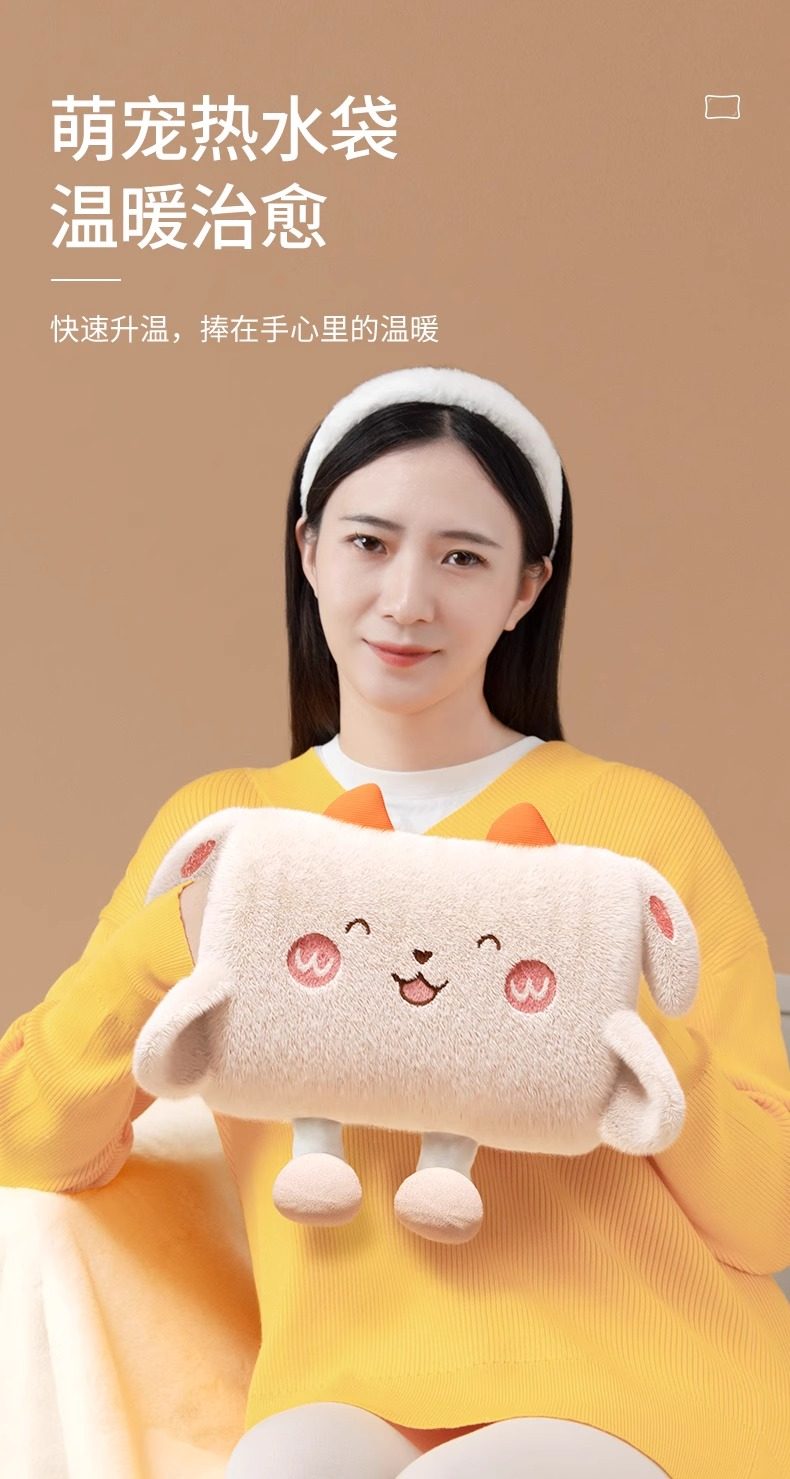 Hot Water Bottle, Explosion-Proof Rechargeable Hot Water Bottle, Plush and Cute Electric Hand Warmer for Girls, Hot Compress to Warm Belly and Waist, Baby Warmer