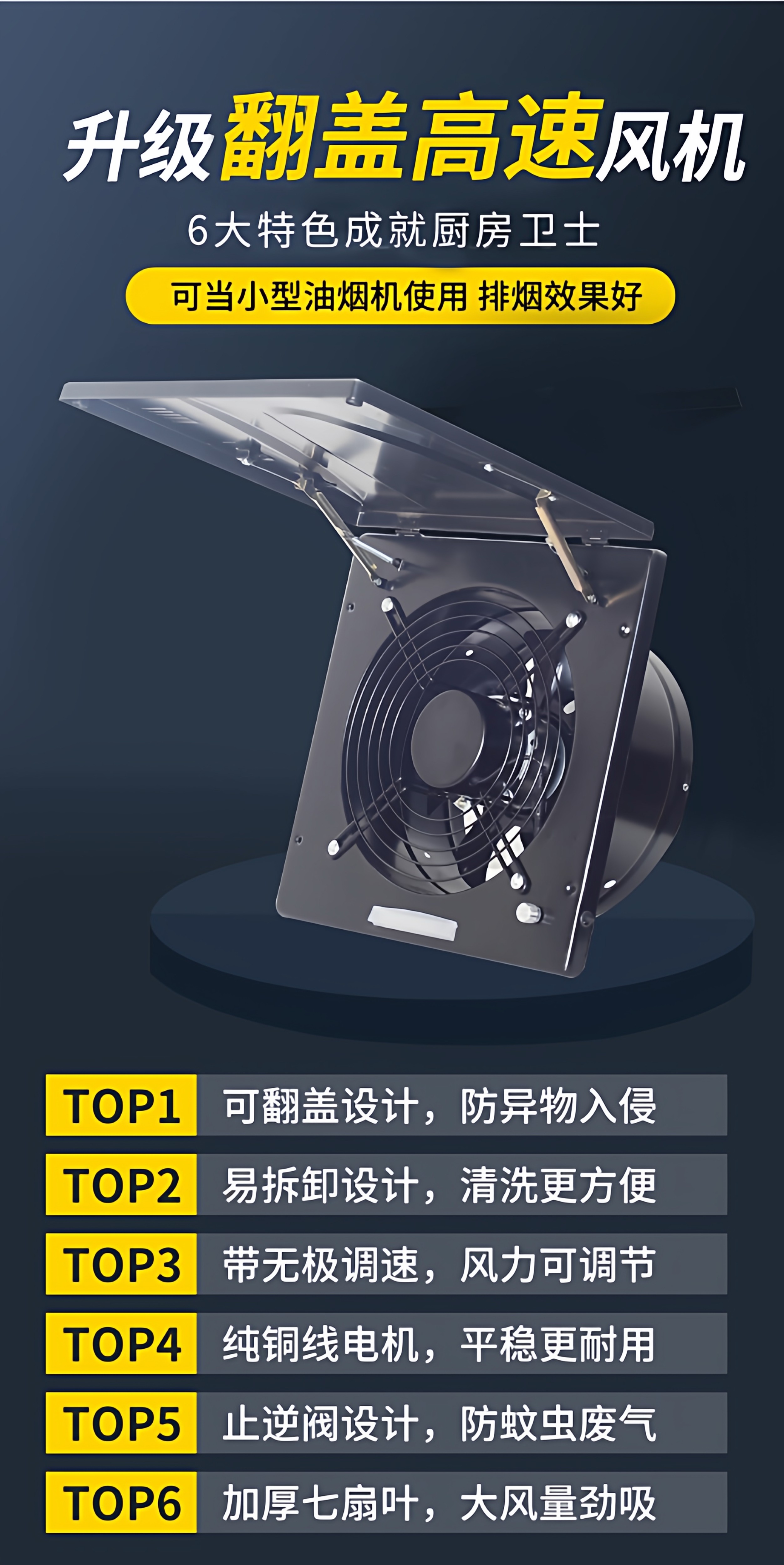 Flip-Top Exhaust Fan, Powerful Kitchen Window-Type Oil Fume Fan, Household Simple Exhaust Fan, High-Power Ventilation Fan, Exhaust Fan
