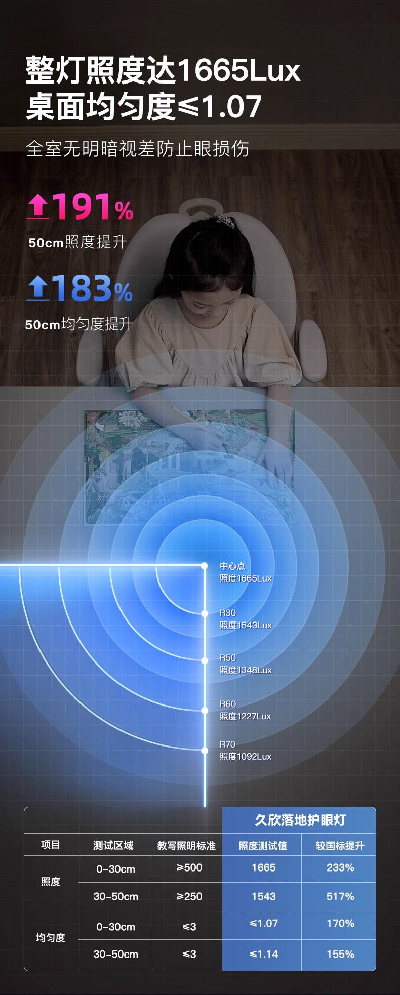Floor-Standing Eye Protection Lamp, Full Spectrum Vertical Desk Lamp, Special for Studying, Large Street Lamp, Shadowless Reading Lamp for Children, Anti-Myopia for Students