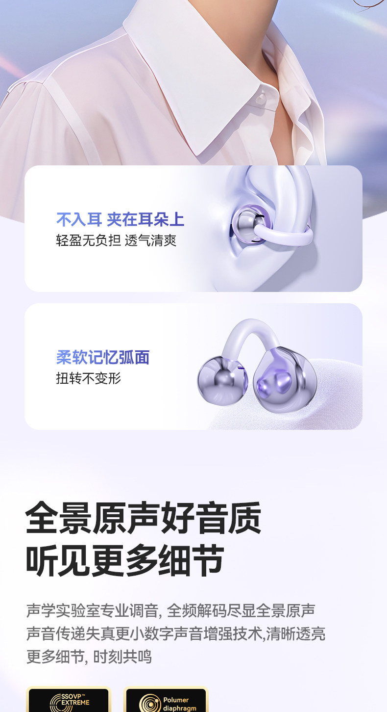 | Color Classification | [Add to Favorites + Add to Cart] Next Day Delivery + Upgraded Free 90-Day Trial + Free Shipping Insurance,【Bone Conduction Hot Selling Top✅No Distinction between Huawei/Xiaomi/Android/Apple/Tablet/Computer, Etc.],Extreme Edition [Higurashi Purple] 360°Panoramic Sound Effect + No Pain after Long-Term Wear + Comfortable and No Sound Leakage + Ultra-Clear Noise Reduction + 80H Battery Life,Extreme Edition [Star Black] 360°Panoramic Sound Effect + No Pain after Long-Term Wear + Comfortable and No Sound Leakage + Ultra-Clear Noise Reduction + 80H Battery Life,Extreme Edition [Skin Friendly] 360°Panoramic Sound Effect + No Pain after Long-Term Wear + Comfortable and No Sound Leakage + Ultra-Clear Noise Reduction + 80H Battery Life,Version Comparison, 99% of Buyers Choose the Supreme Version, the Usability Is Improved by 200% + the Ultimate Music Experience,Ultimate Edition [Sunset Purple] 360°Panoramic Sound Effect + No Pain after Long-Term Wear + Comfortable and No Sound Leakage + Ultra-Clear Noise Reduction + 68H Battery Life,Flagship Edition [Star Black] 360°Panoramic Sound Effect + No Pain after Long-Term Wear + Comfortable and No Sound Leakage + Ultra-Clear Noise Reduction + 68H Battery Life,Flagship Version [Skin-Friendly] 360°Panoramic Sound Effect + No Pain after Long-Term Wear + Comfortable and No Sound Leakage + Ultra-Clear Noise Reduction + 68H Battery Life,Brand New Flagship Product! Unrivaled Comfort! the Best-Sounding Headphones yet,Glazed Gold [Free Bow Earrings] [Surround Cinema-Level Sound Quality + Enc Intelligent Noise Reduction + Directional Sound Transmission Without Sound Leakage + Super Long Battery Life],Roland Purple [Free Bow Earrings] [Surround Cinema-Grade Audio + Enc Smart Noise Cancellation + Directional Sound Transmission & No Sound Leakage + Super Long Battery Life],Starlight Black [Comes with Bow Earrings] [Surround Cinema-Grade Sound + Enc Intelligent Noise Cancellation + Directional Sound Transmission Without Sound Leakage + Super Long Battery Life],Elegant White [Free Bowknot Earrings] [Immersive Theater-Quality Sound + Enc Smart Noise Cancellation + Directional Audio Transmission & Soundproofing + Ultra-Long Battery Life] |