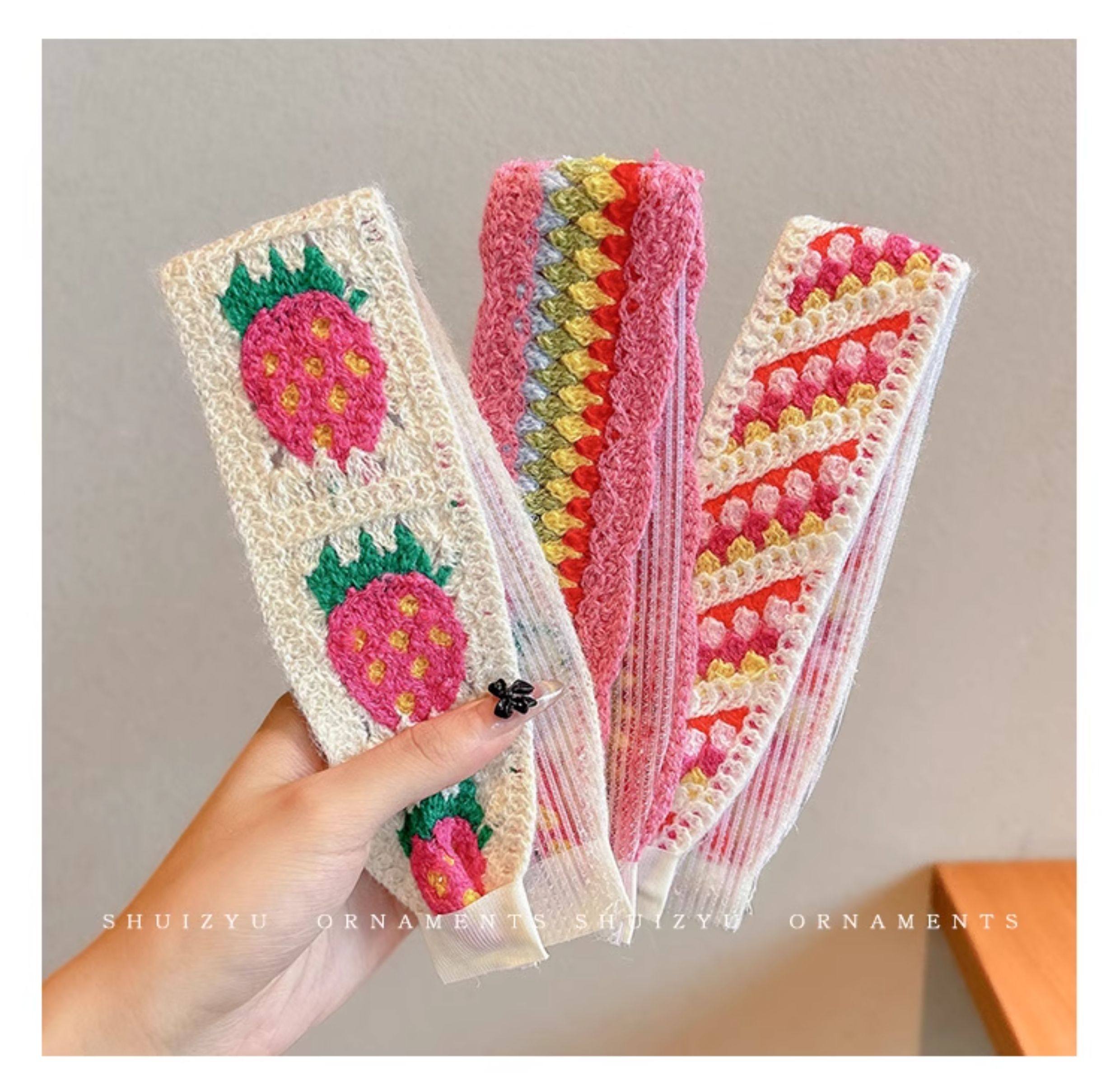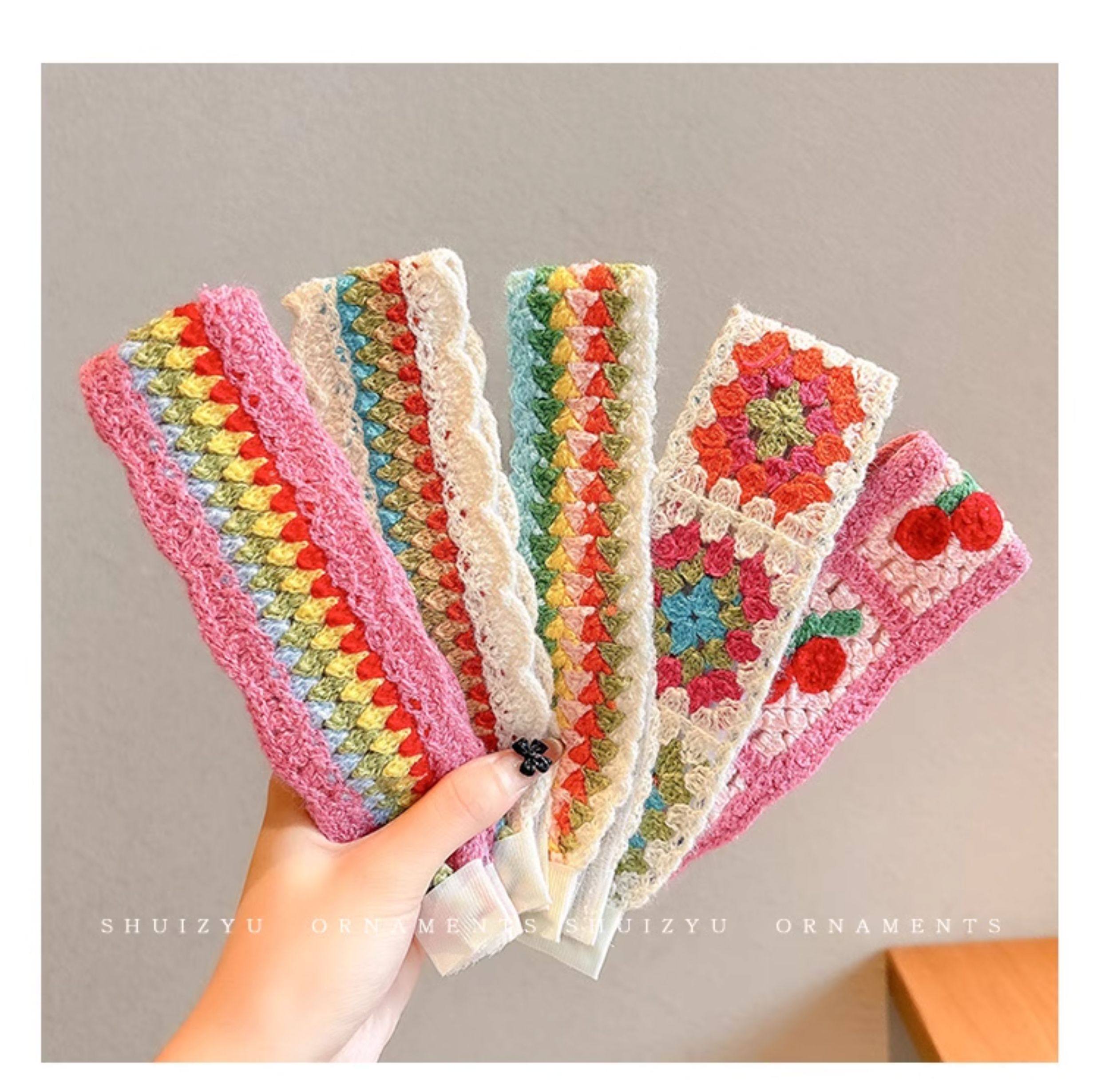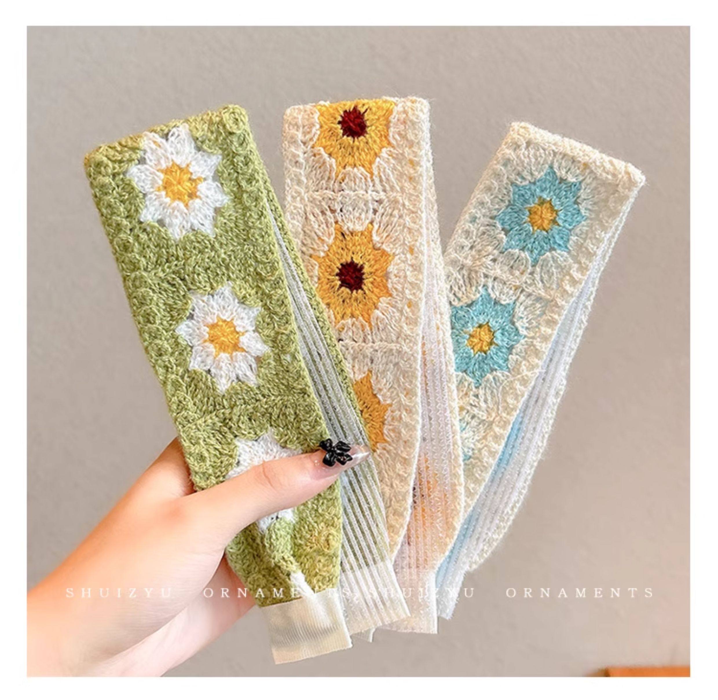 French-Style Floral Knitted Velcro Headband for Women 2025 New Model Bangs and Stray Hair Organizer Magic Hairband Hairpin Headwear
