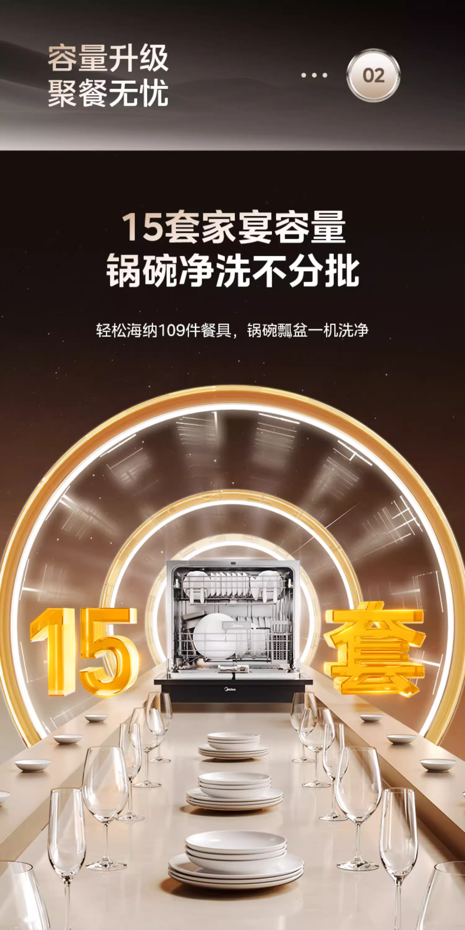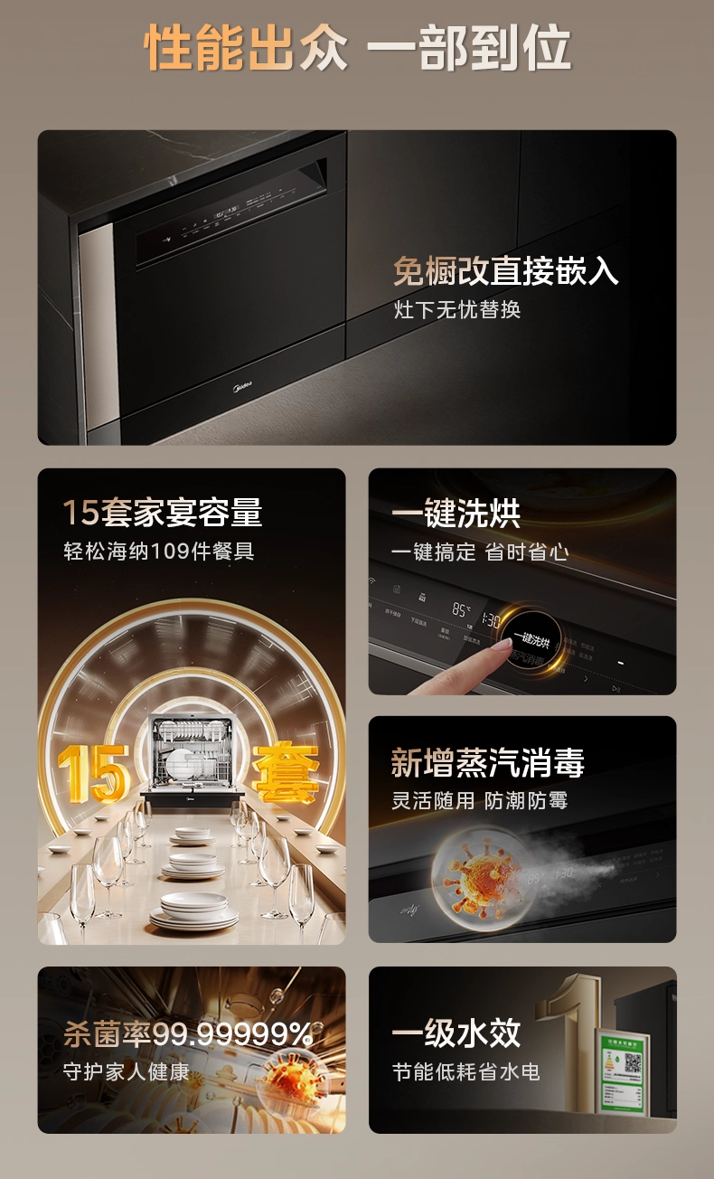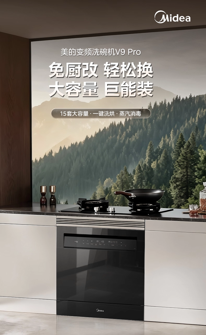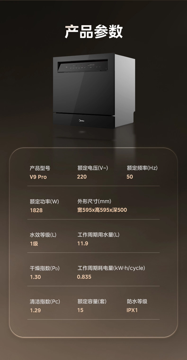 Midea Dishwasher V9Pro, Dual-Use for Freestanding or Built-In, Household Use, 15 Sets, Under-Counter, Hot Drying, Disinfection, Layered Washing, Intelligent Inverter