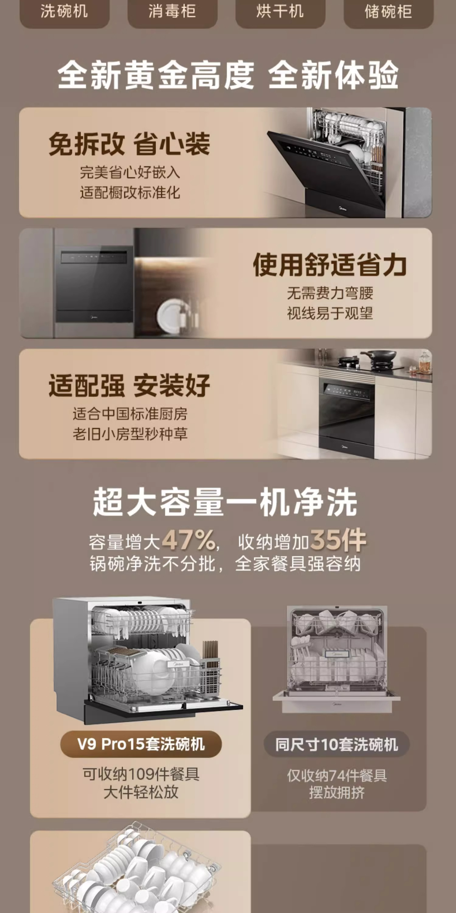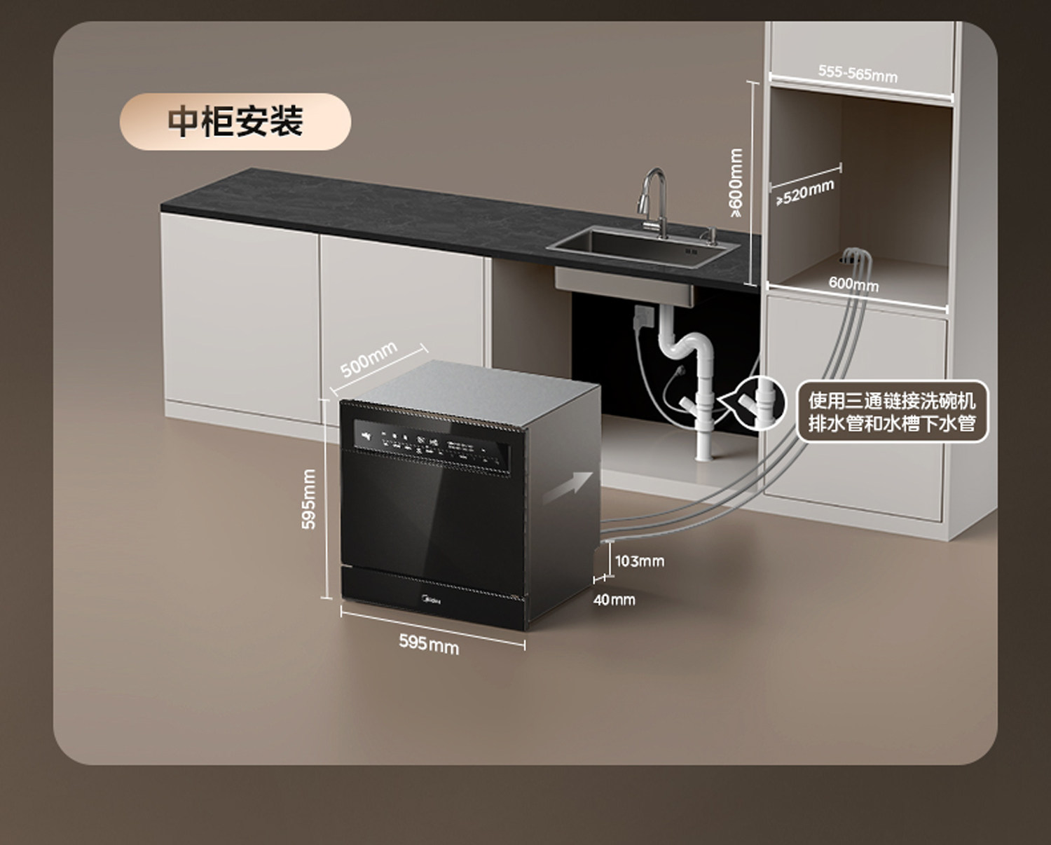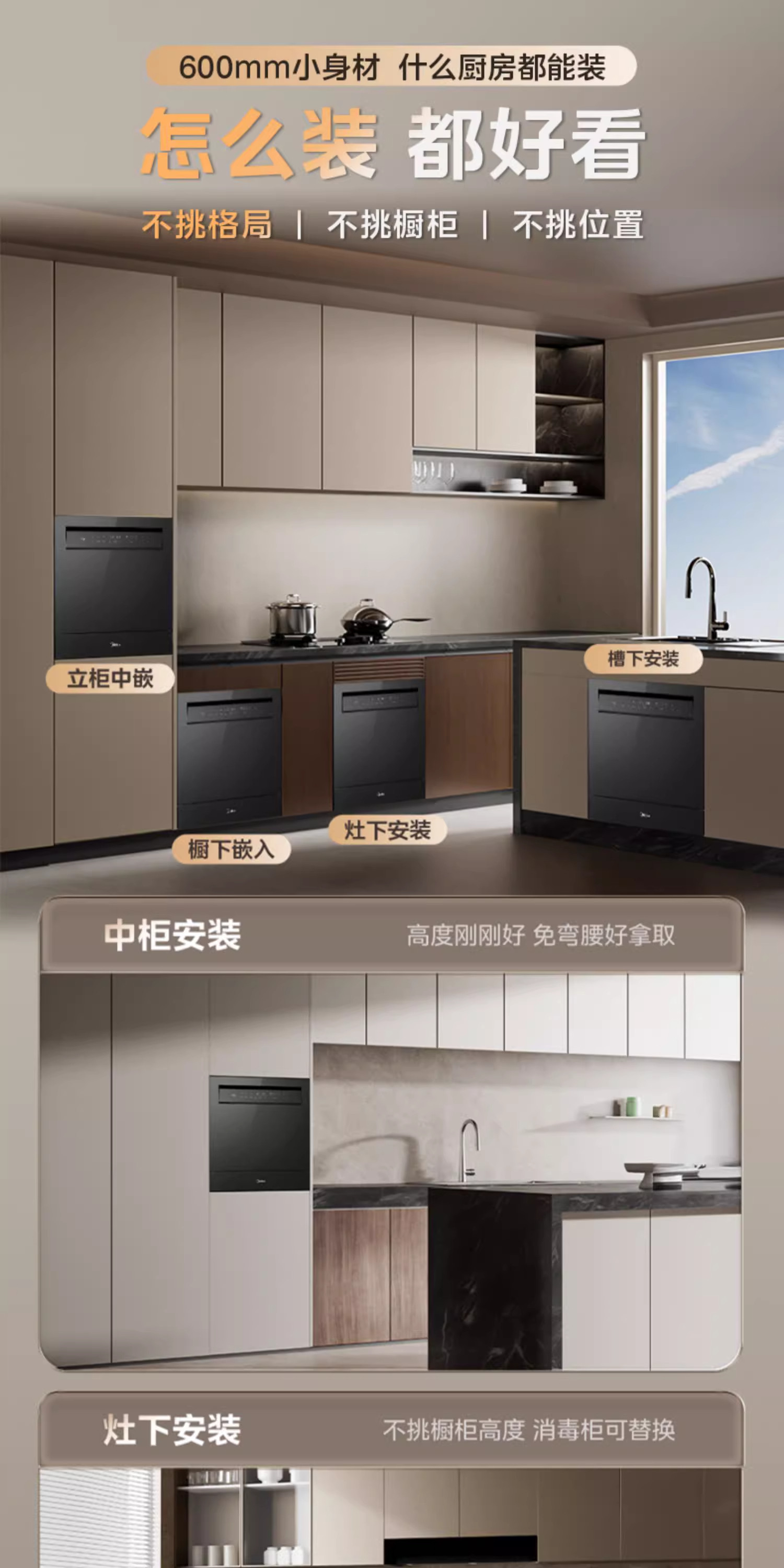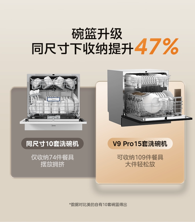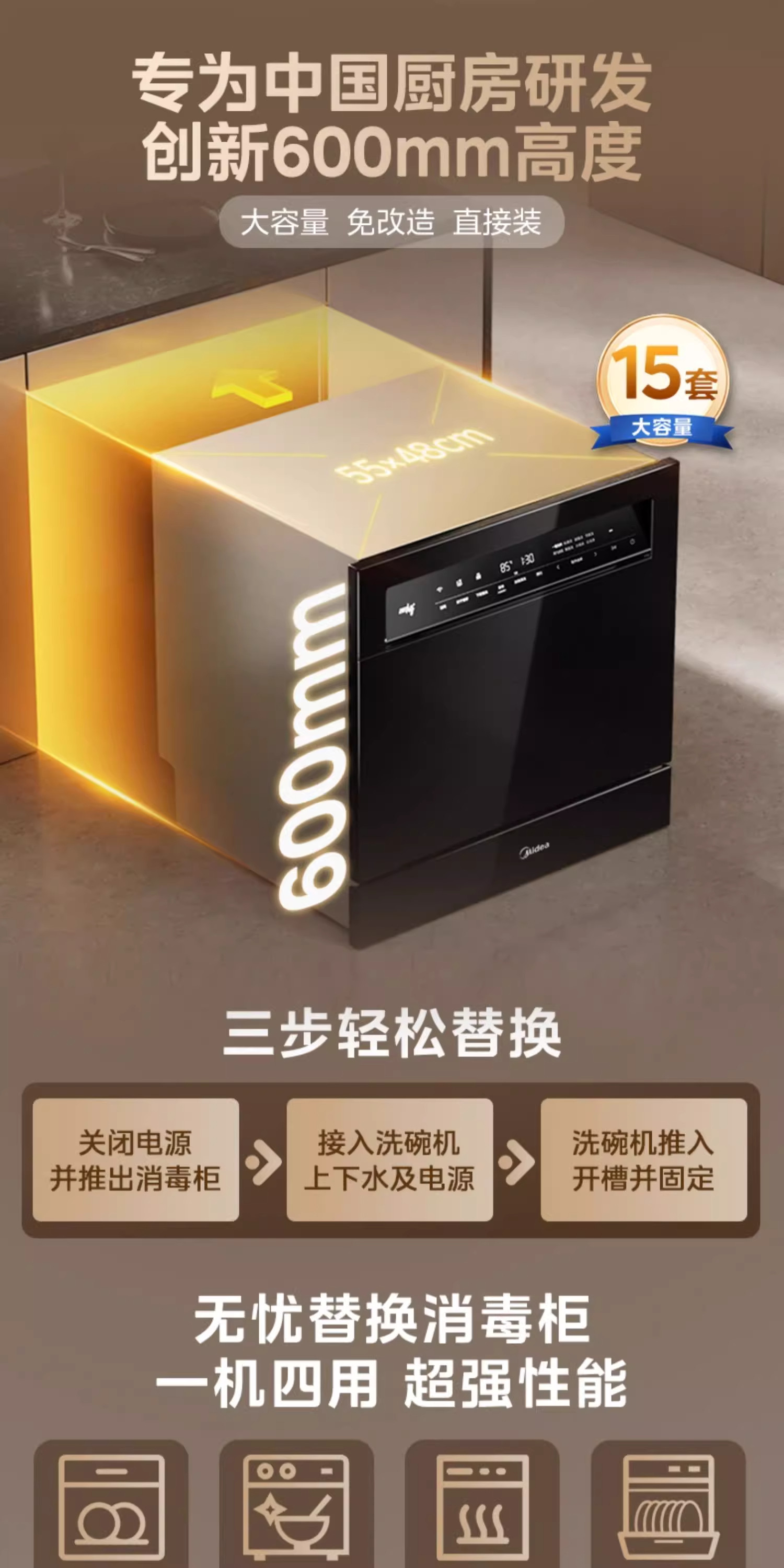 Midea Dishwasher V9Pro, Dual-Use for Freestanding or Built-In, Household Use, 15 Sets, Under-Counter, Hot Drying, Disinfection, Layered Washing, Intelligent Inverter