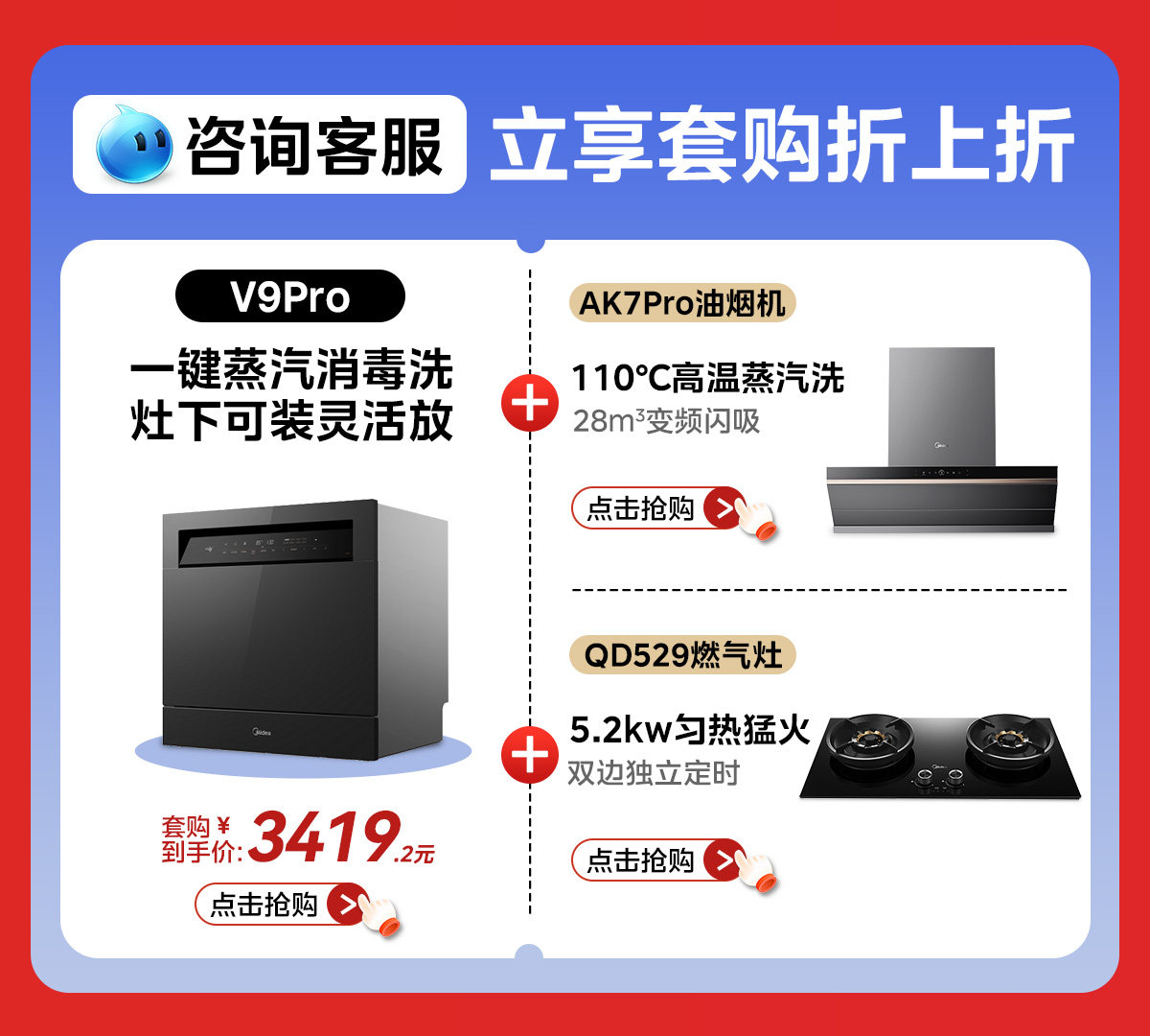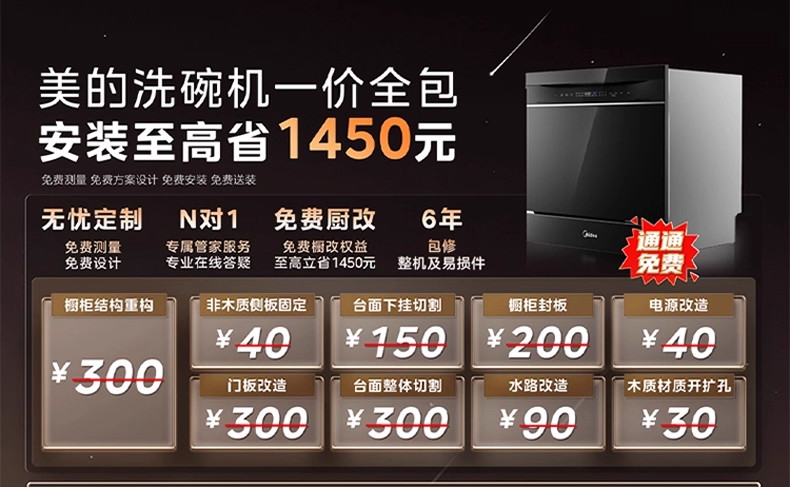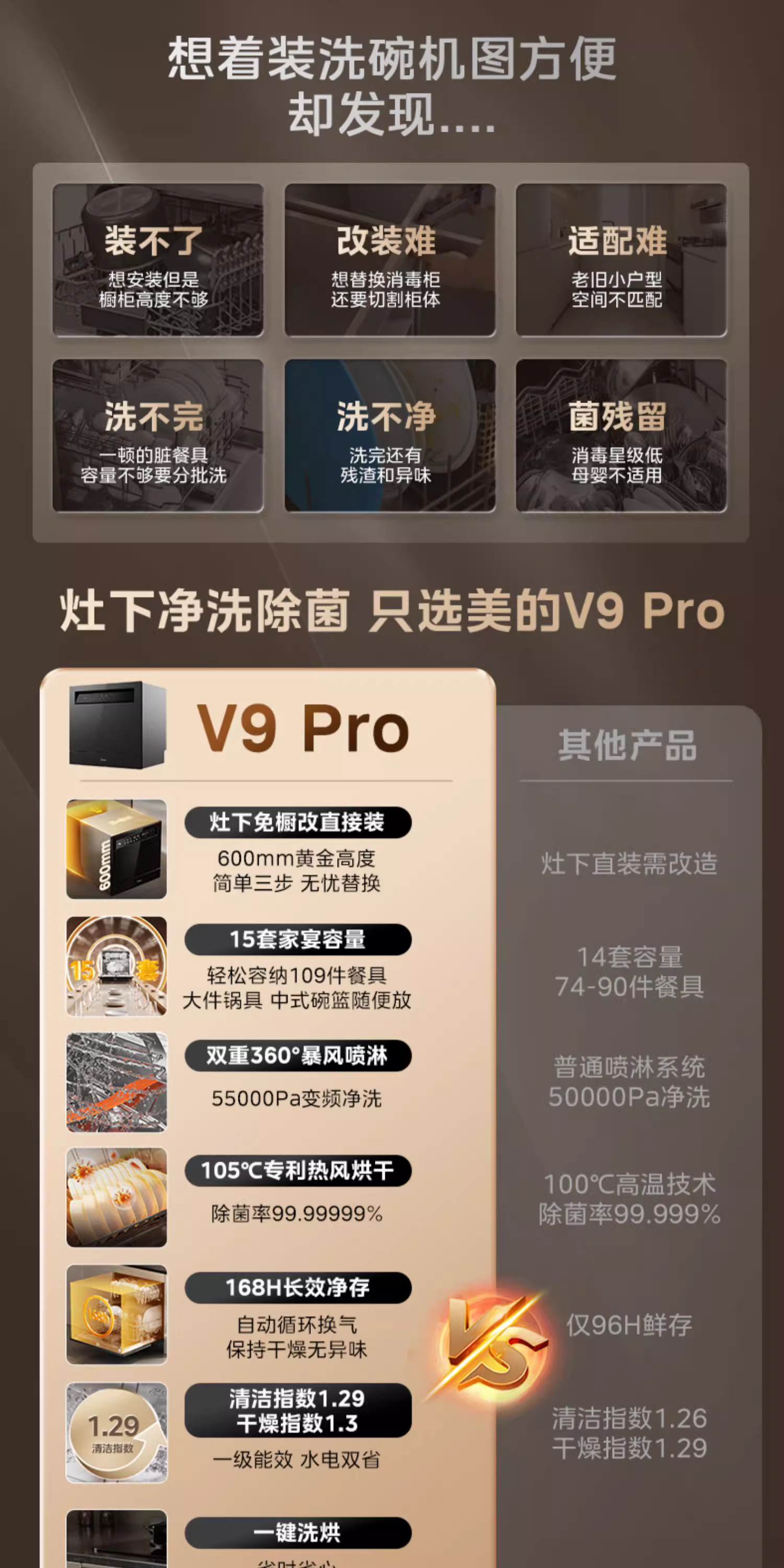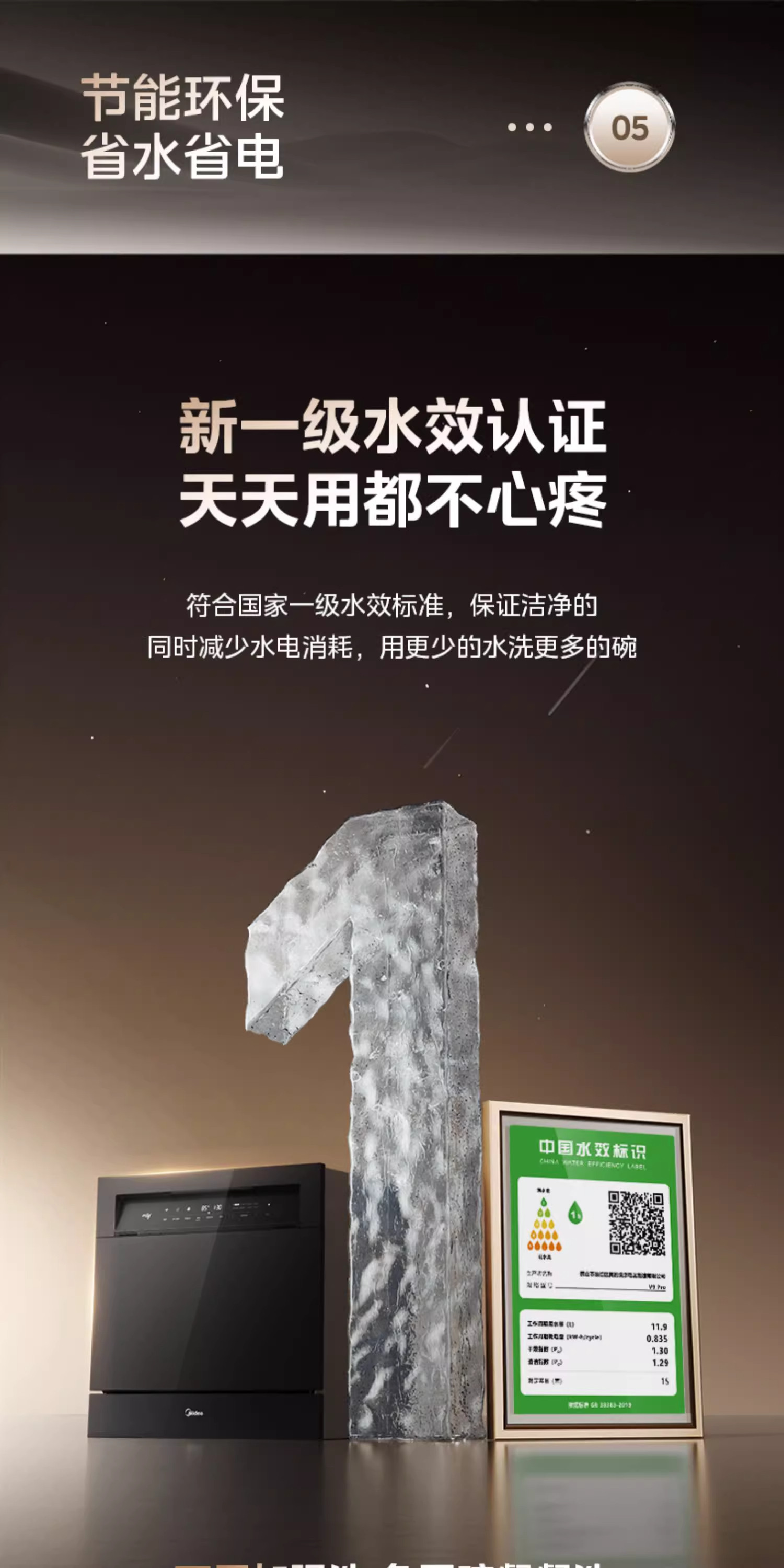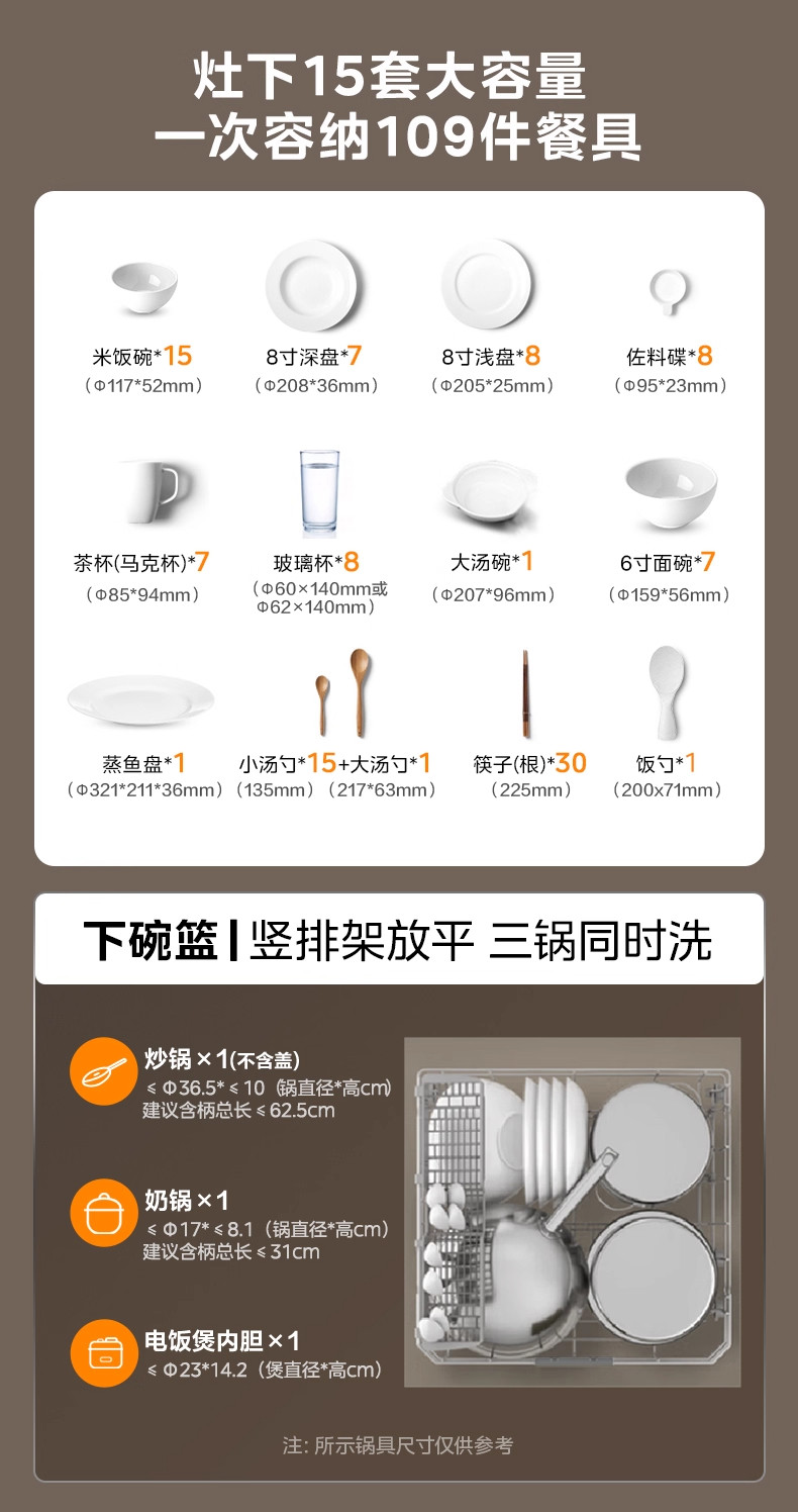 Midea Dishwasher V9Pro, Dual-Use for Freestanding or Built-In, Household Use, 15 Sets, Under-Counter, Hot Drying, Disinfection, Layered Washing, Intelligent Inverter