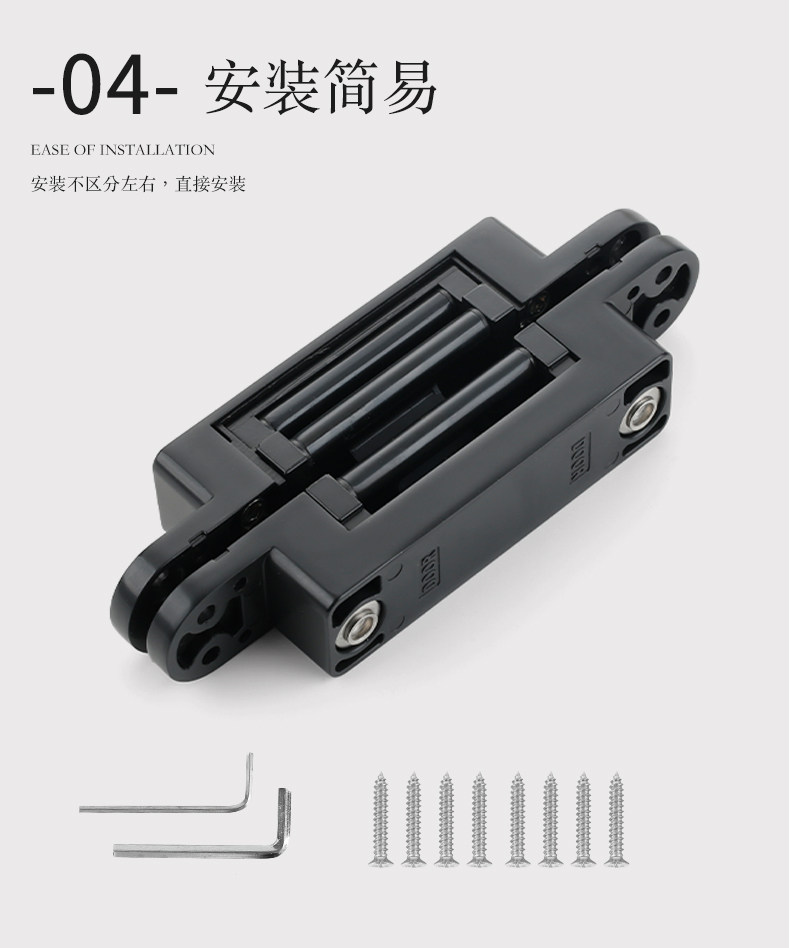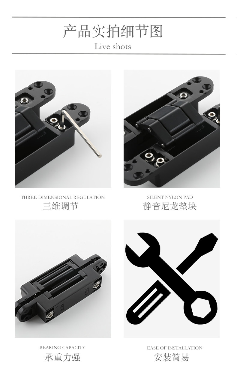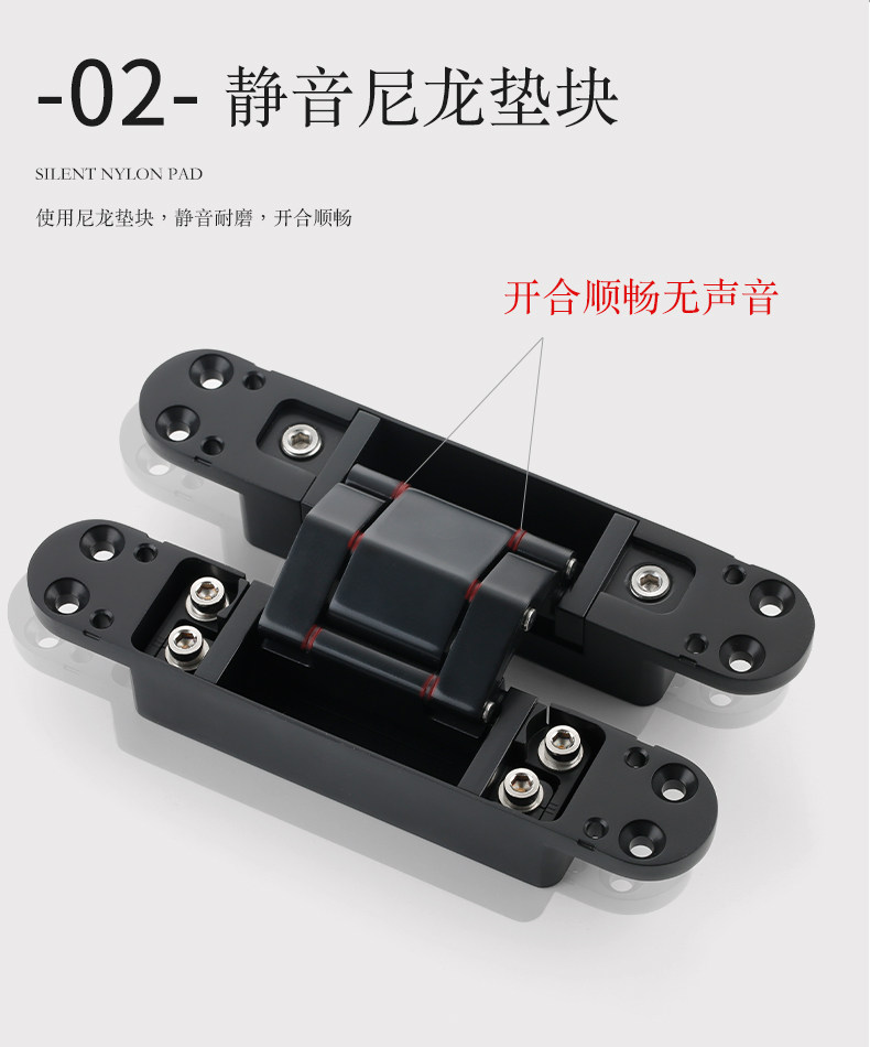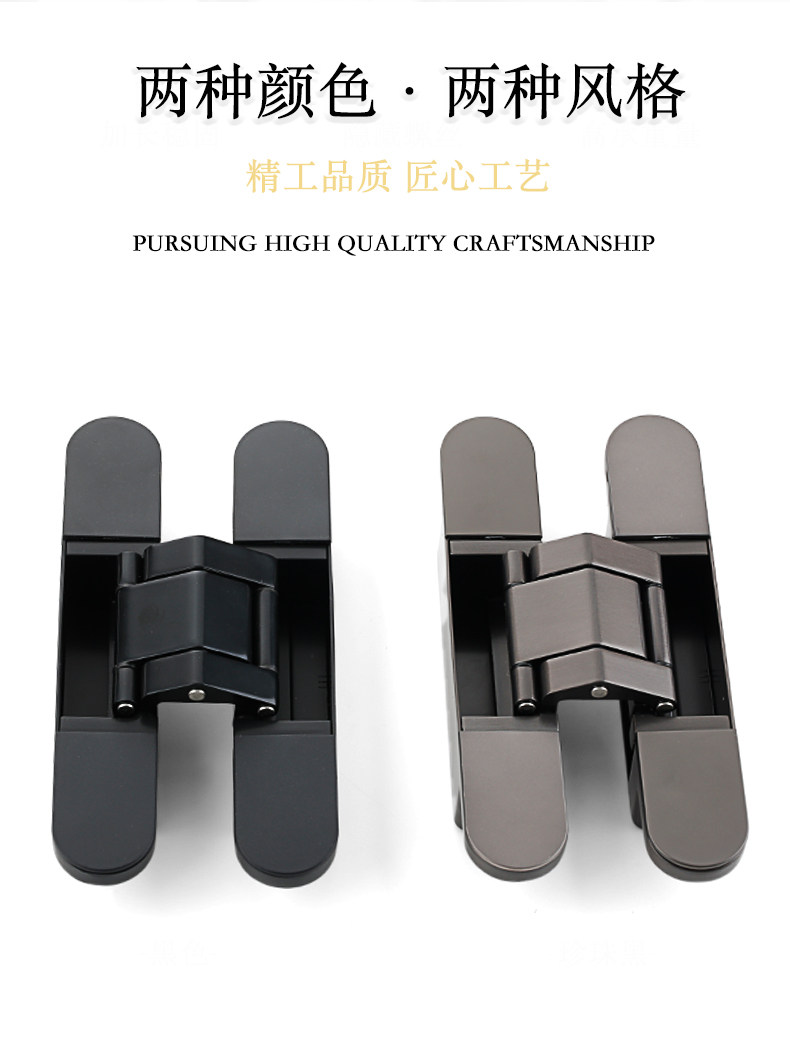 Black Invisible Door Hinge, Concealed Hinge, Hidden Door Hinge, Three-Dimensional Adjustable Cross Hinge for Wooden Doors, Installation of Hidden Door Hinge