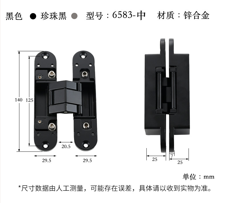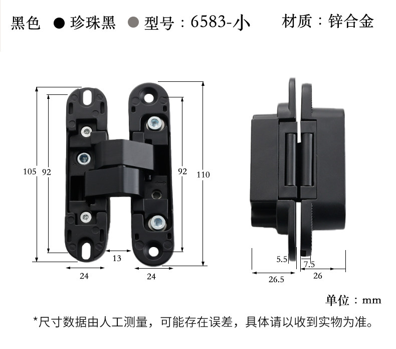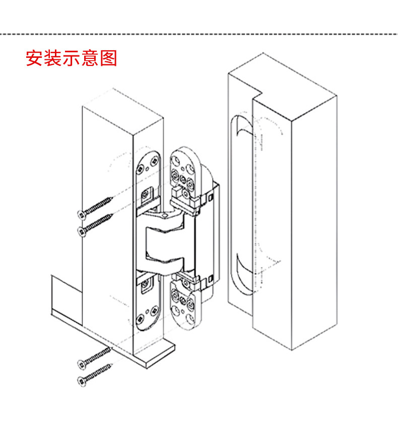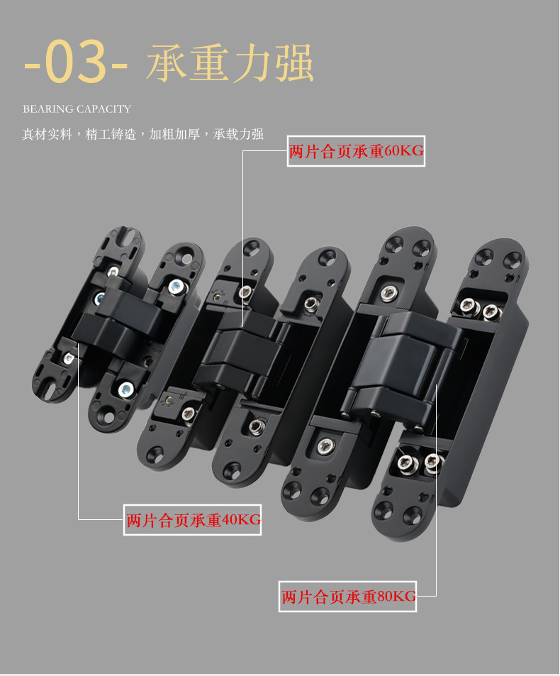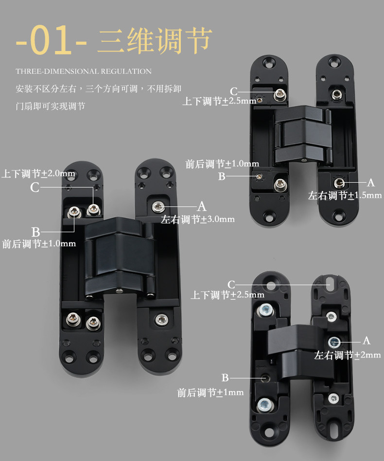 Black Invisible Door Hinge, Concealed Hinge, Hidden Door Hinge, Three-Dimensional Adjustable Cross Hinge for Wooden Doors, Installation of Hidden Door Hinge