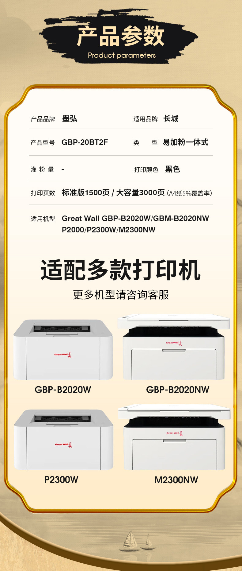 Compatible Toner Cartridge for Great Wall B2020W, Gbm-B2020Nw, Gbp-B2020W, M2300Dw, M2020, P2000, Gbp-20Bt2F Printer