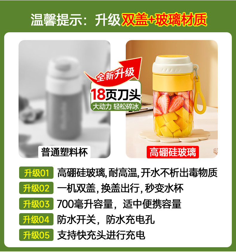 | Color Classification | Peach Powder - Glass Version 700ml [18-Page Blade.],Lemon Yellow-Glass Type 700ml [18-Page Blade.],Fruit Smoothie Green-Glass Type 700ml [18-Page Blade.],Simple Gray-Glass Model 700ml [18-Page Blade..] |