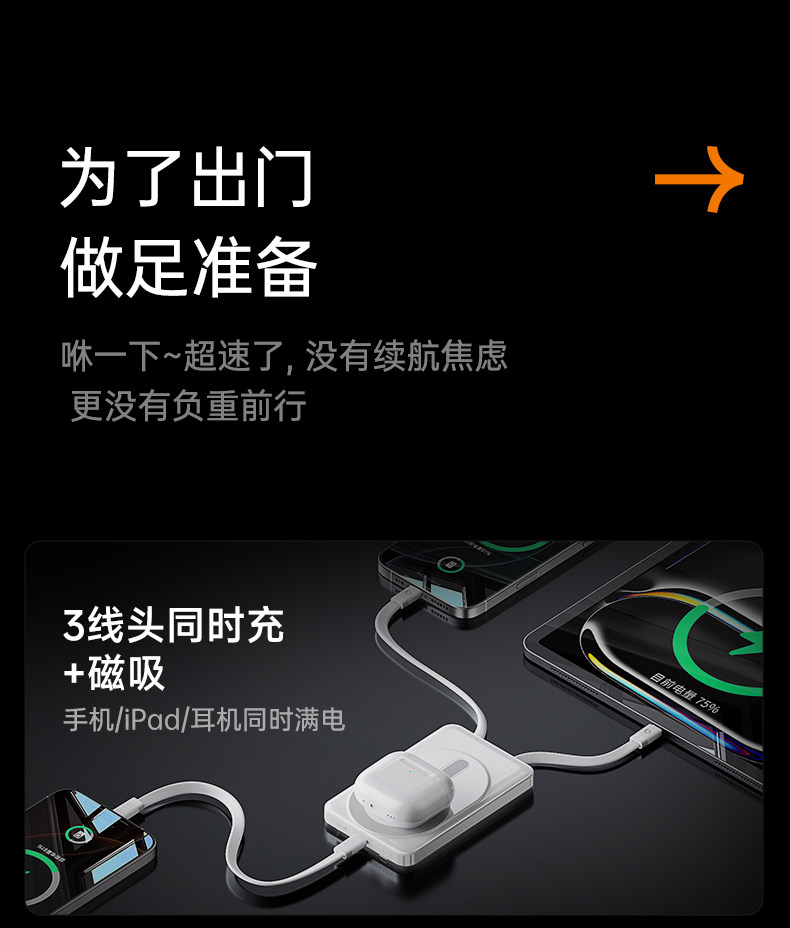 | Color Classification | [Multi-Certified All-In-One Charger]Ai Smart Flash Chargingâ Optimization of Trickle Charging,[Buy More and Get a Refund if the Price Is Higher during the Double 11 Sale]National Security Certificationâ Gift ,[Ivory White]Magsafe Magnetic Chargingâ Comes with Cableâ Rechargeable Watch/Headphonesâ Comes with Stand,[Enjoy Exclusive Deals When You Add to Your Favorites and Cart!]Express Deliveryâ 2 Years After-Sales Guaranteeâ Full Function Power Bank |
