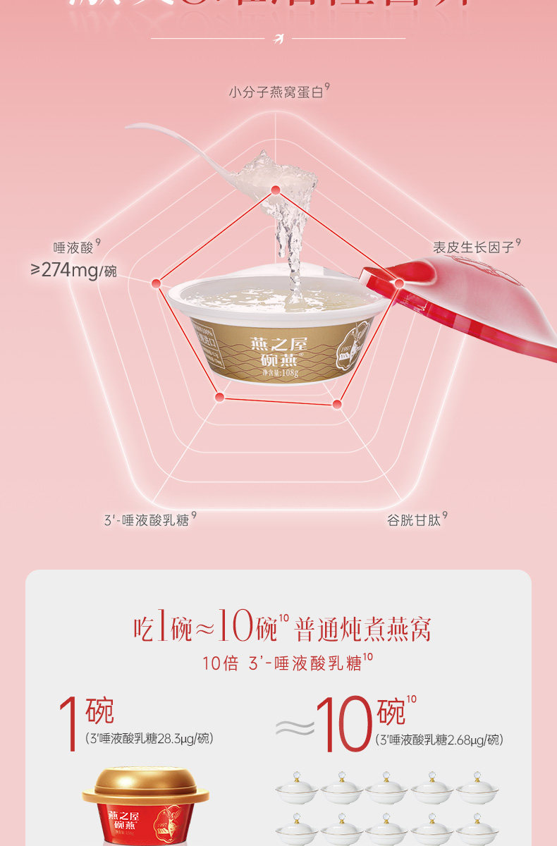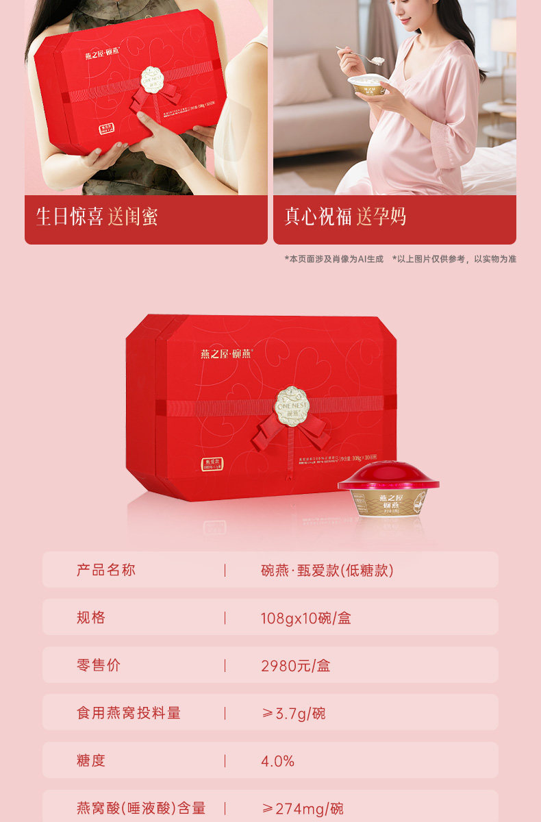 [Same as in Shopping Malls] Yanzhiwu Bowl Bird's Nest Zhenai Series 108g 10 Bowls Bird's Nest Gift Box Set for Business Gifts and Supplements