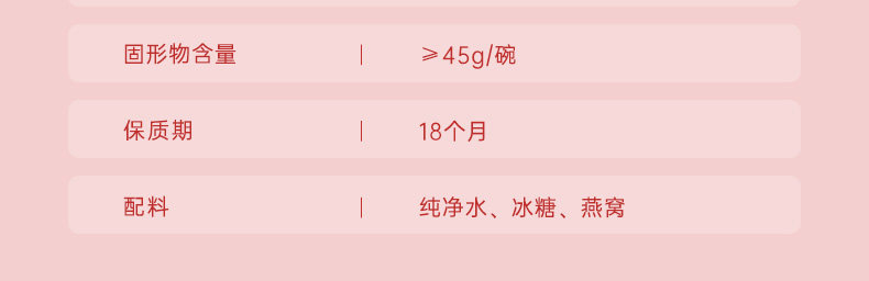 | Dried Bird's Nest Content | 2.5g (Inclusive)-5G (Exclusive) |