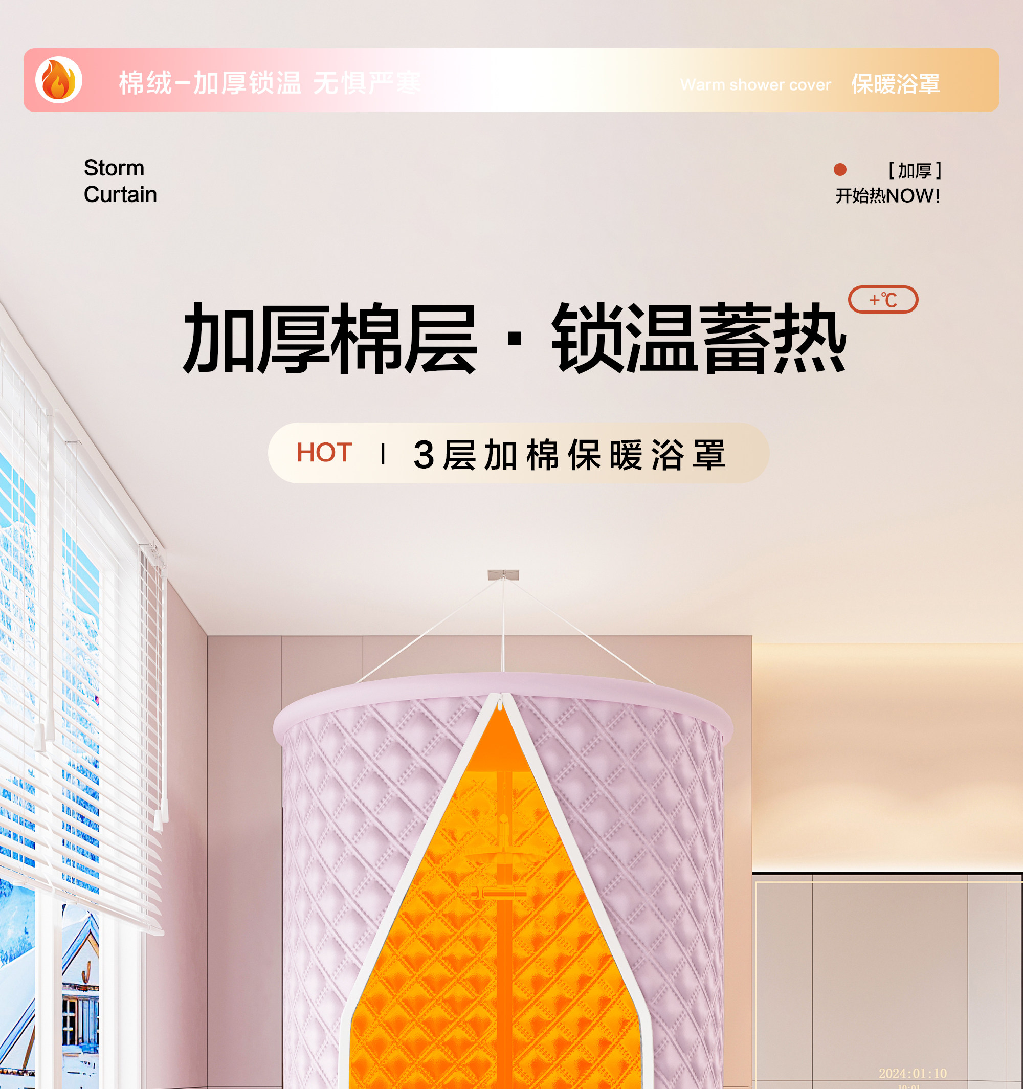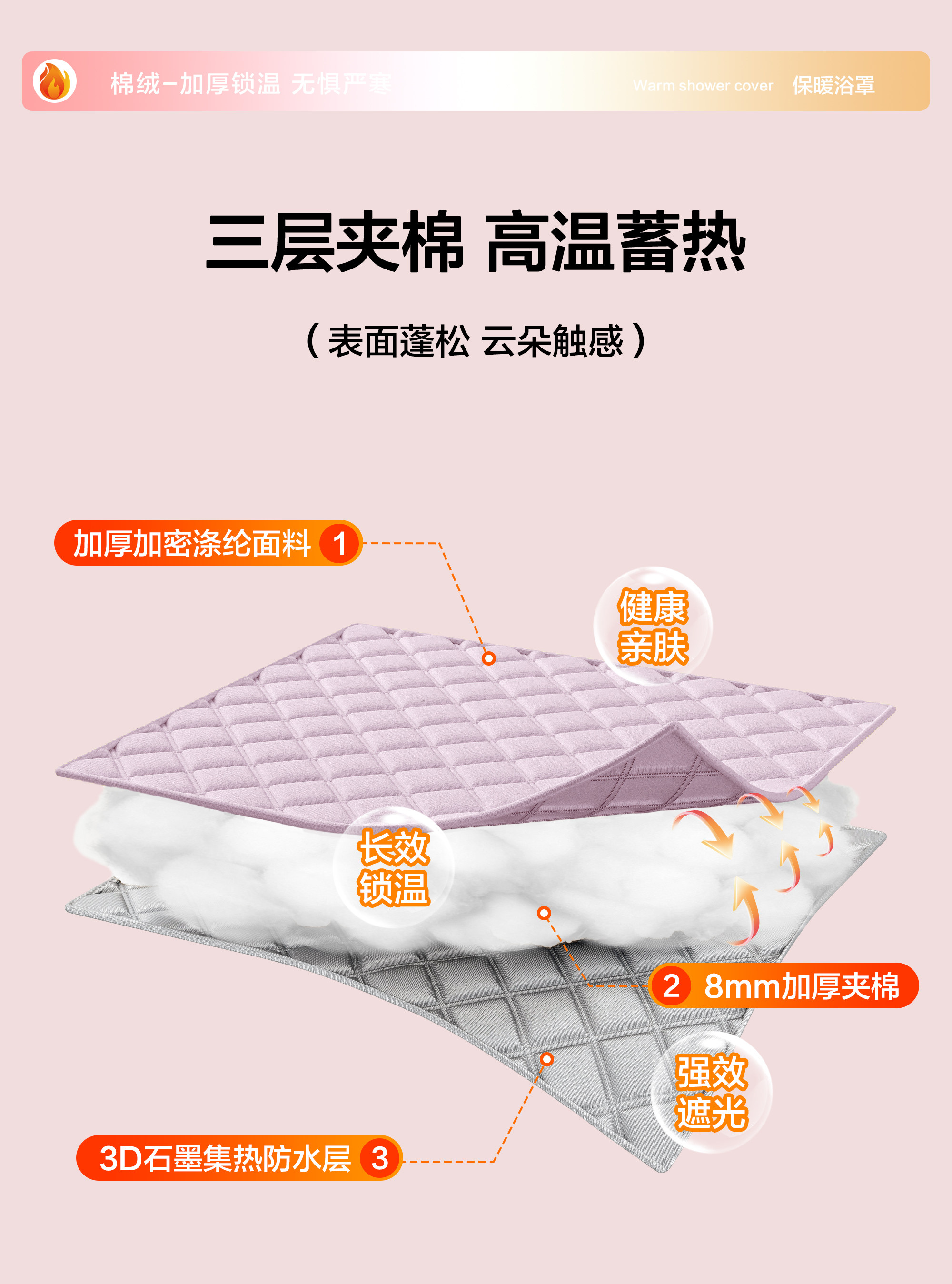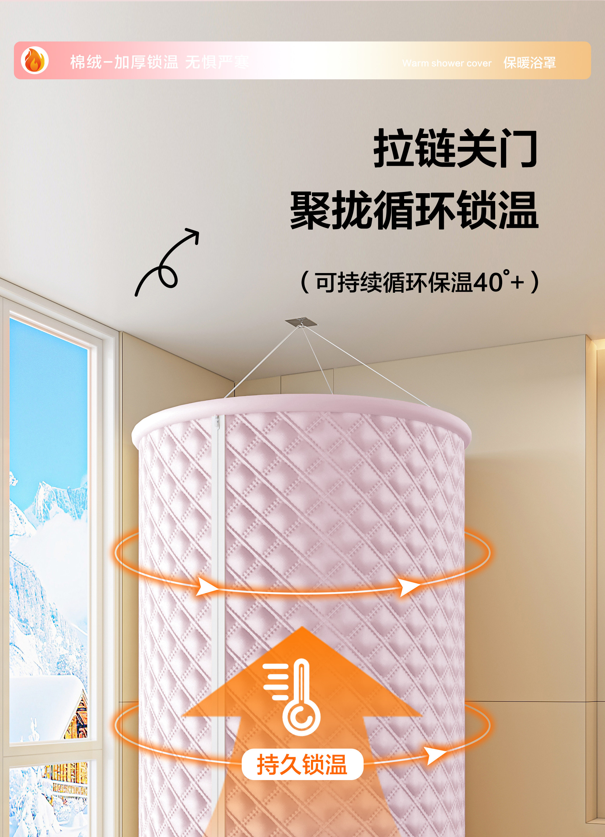 Thickened Bathroom Thermal Cotton Shower Curtain, Waterproof Round Bath Cover for Baby, Winter Bathing Warmth, Temporary Bathroom