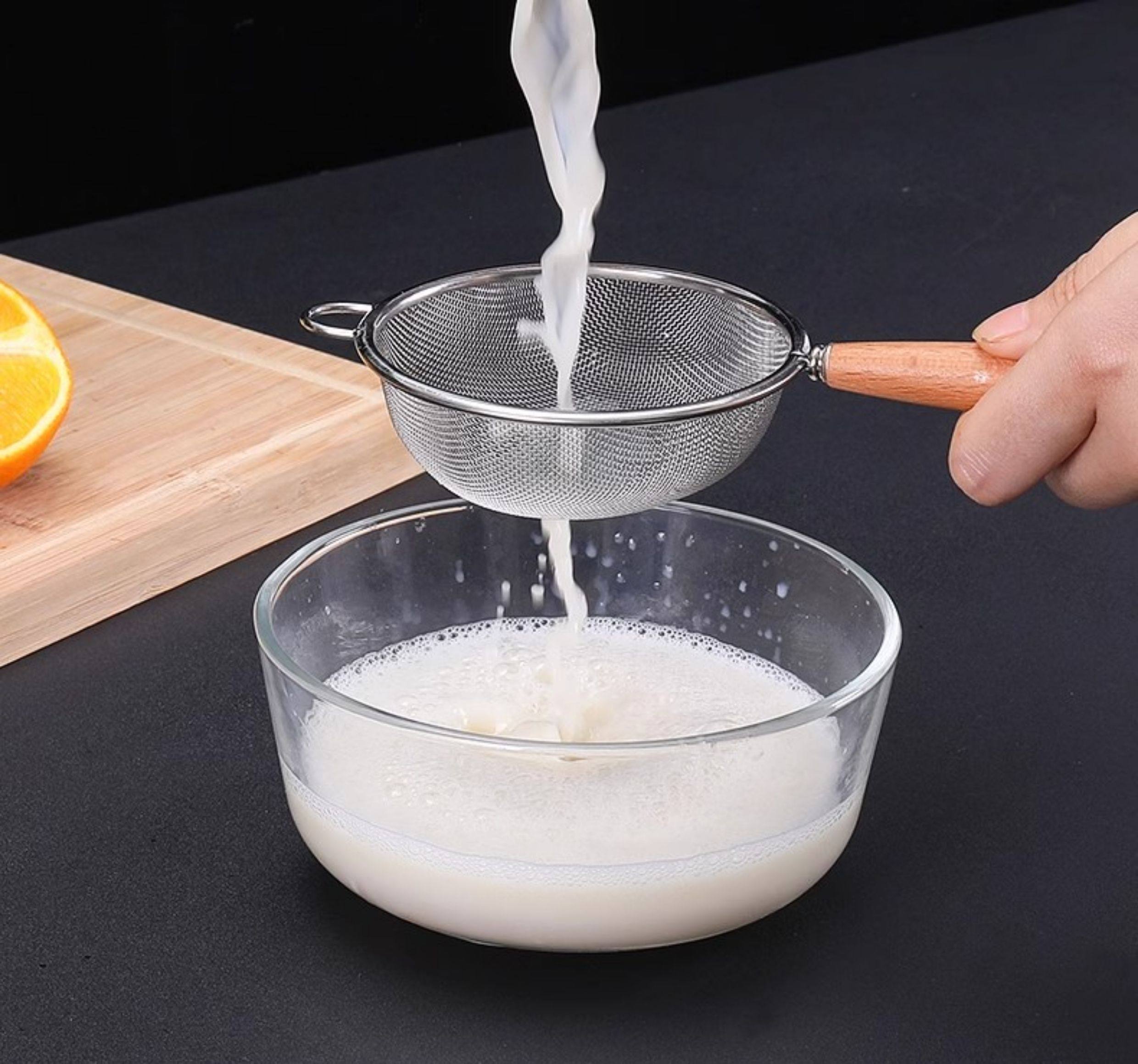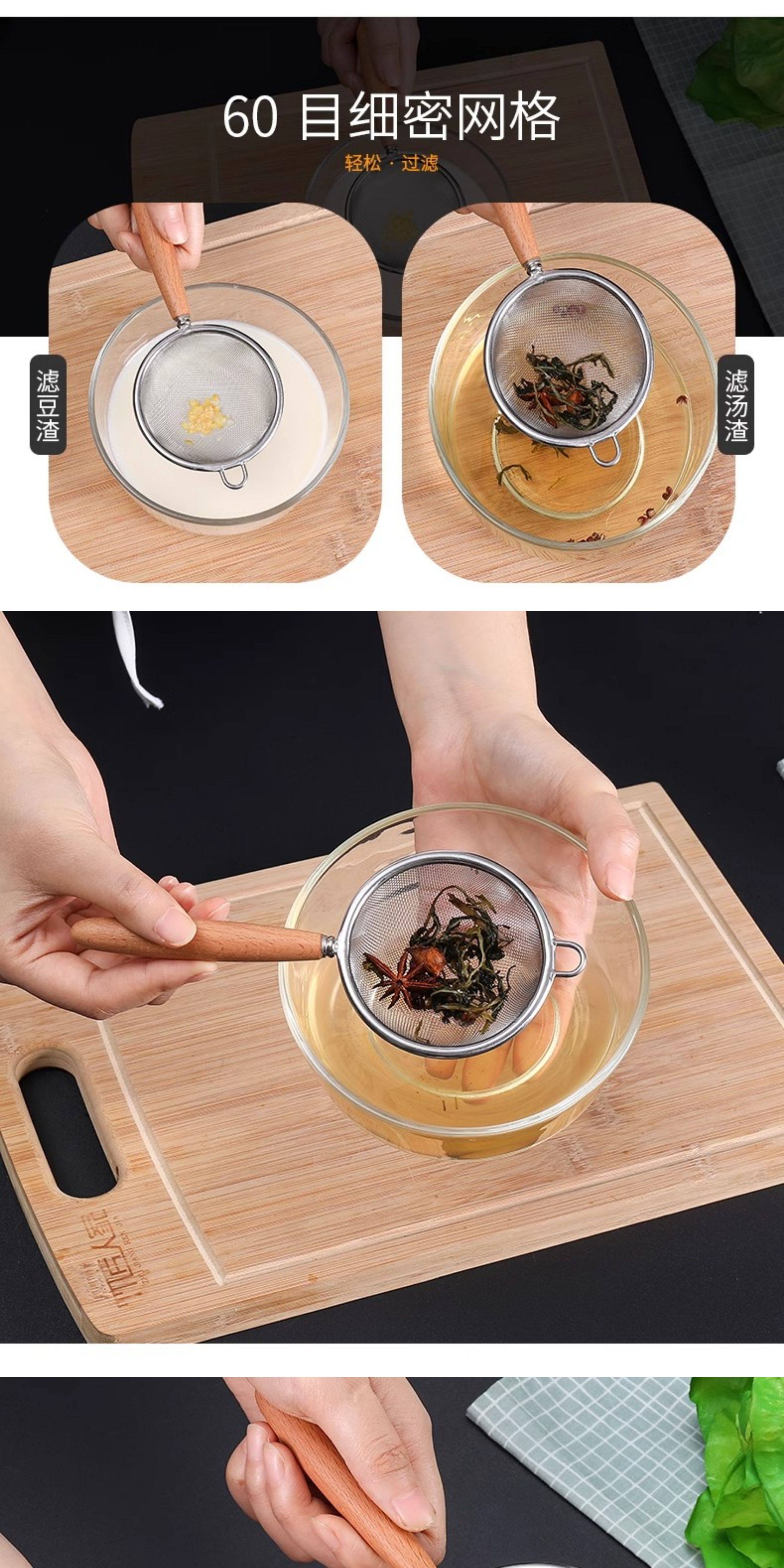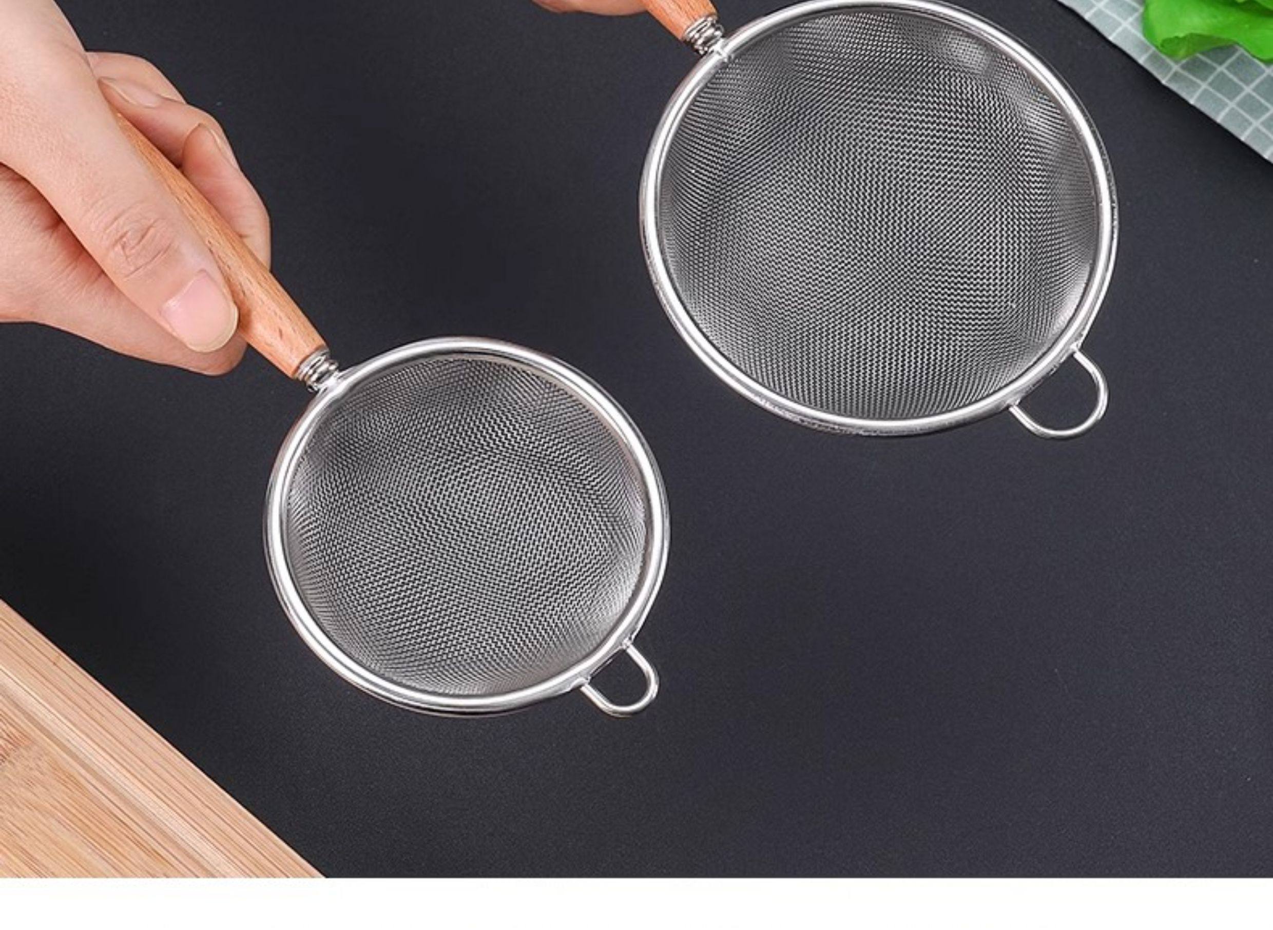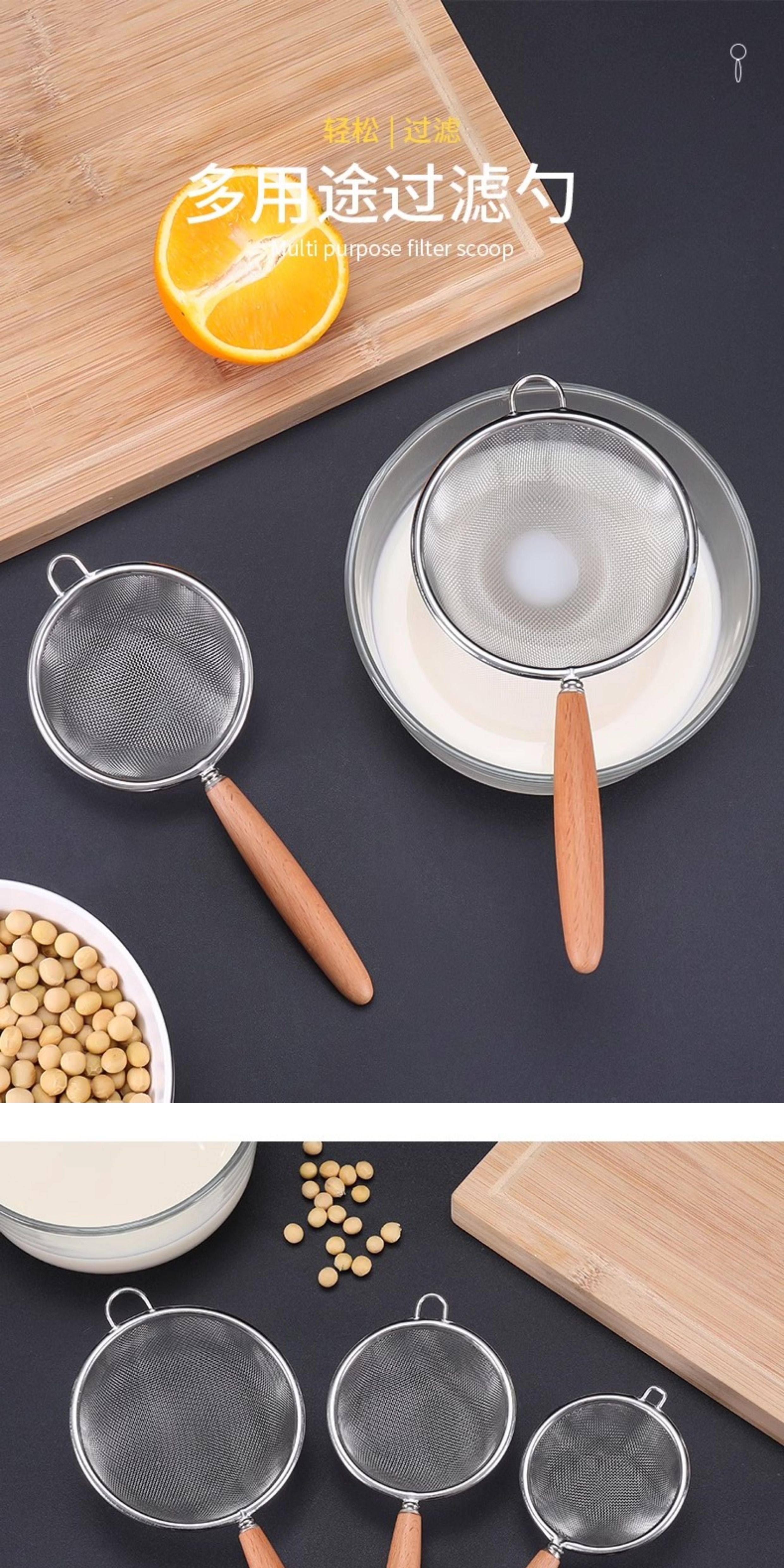 40-Mesh Fine Mesh Wooden Handle 304 Stainless Steel Colander Juice Strainer Sieve Water Draining Spoon Soup Residue Strainer Pepper Scooping Spoon