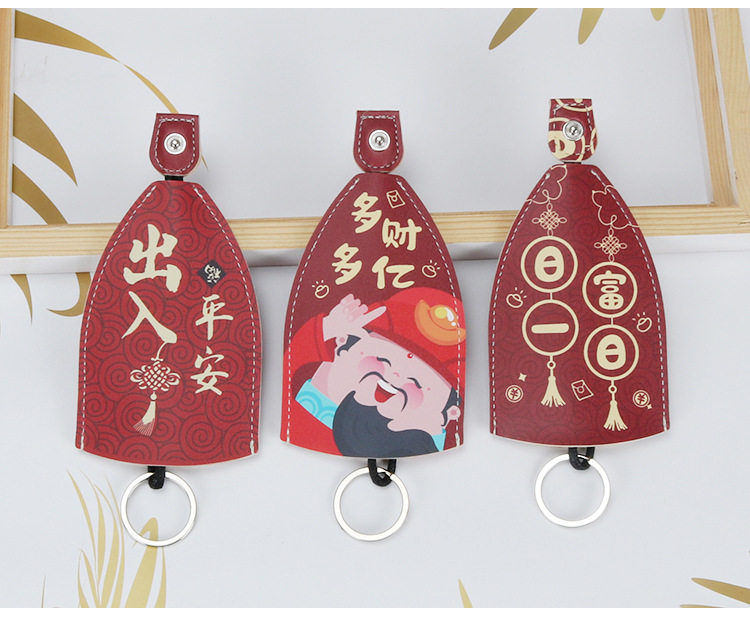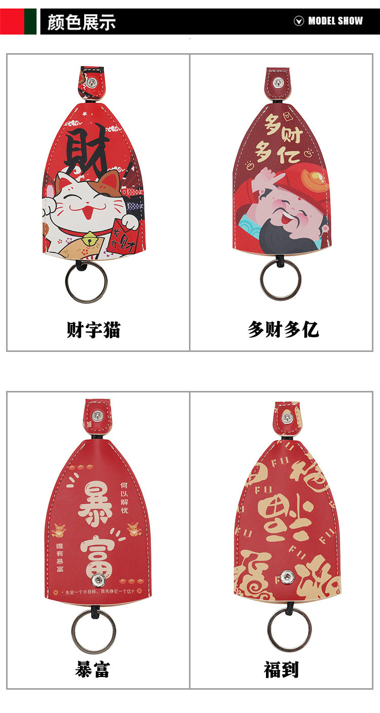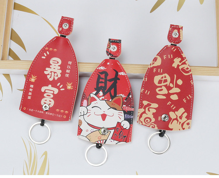 Pull-Out Key Case for Car and Electric Vehicle Keys, Leather Cover, Universal, Large Capacity, Cute, for Women, Storage, Festive, New Year