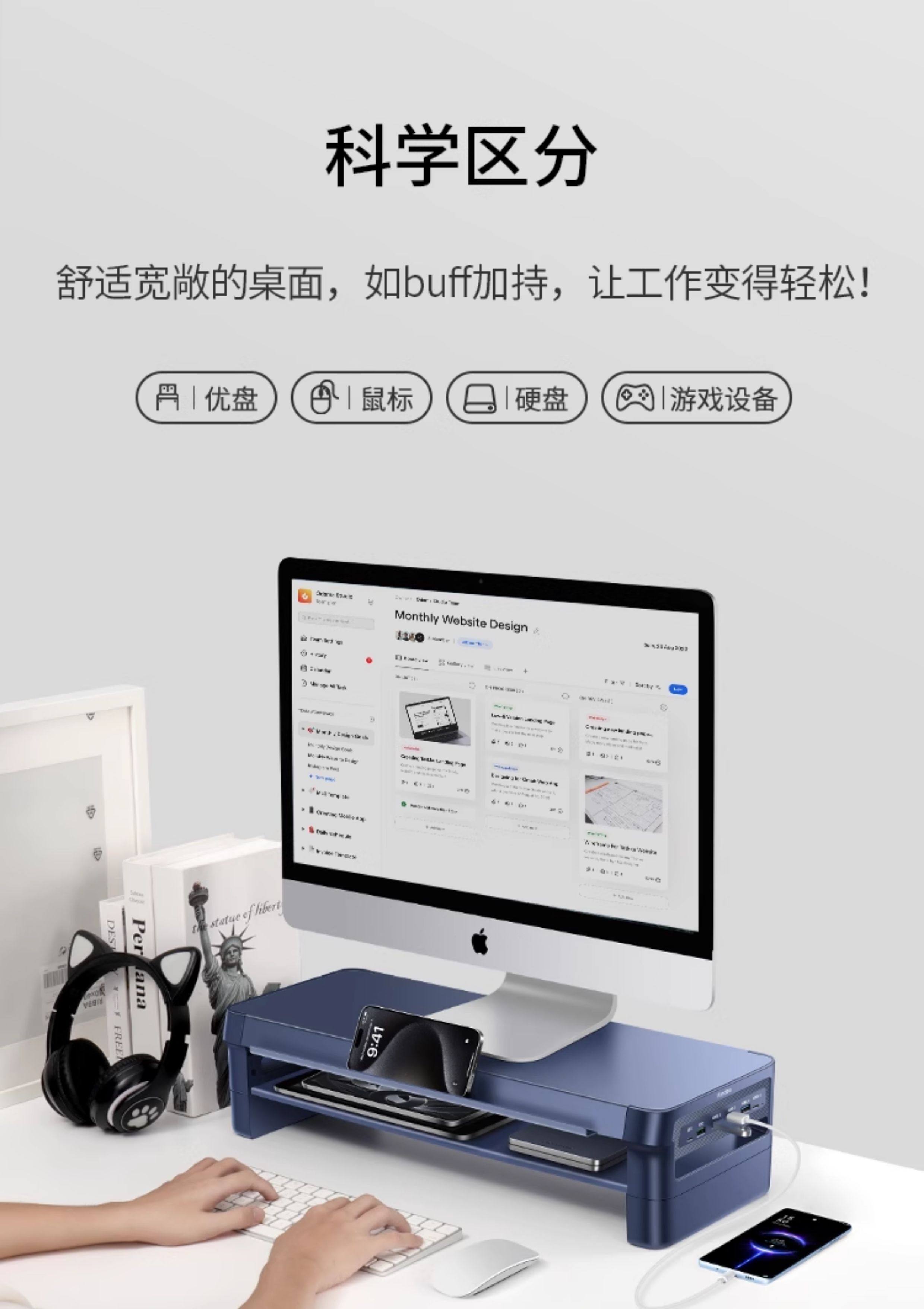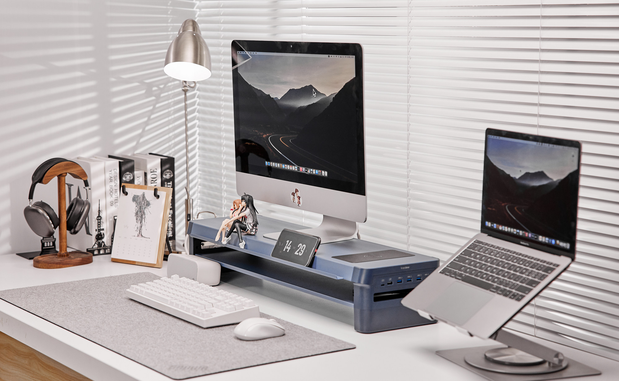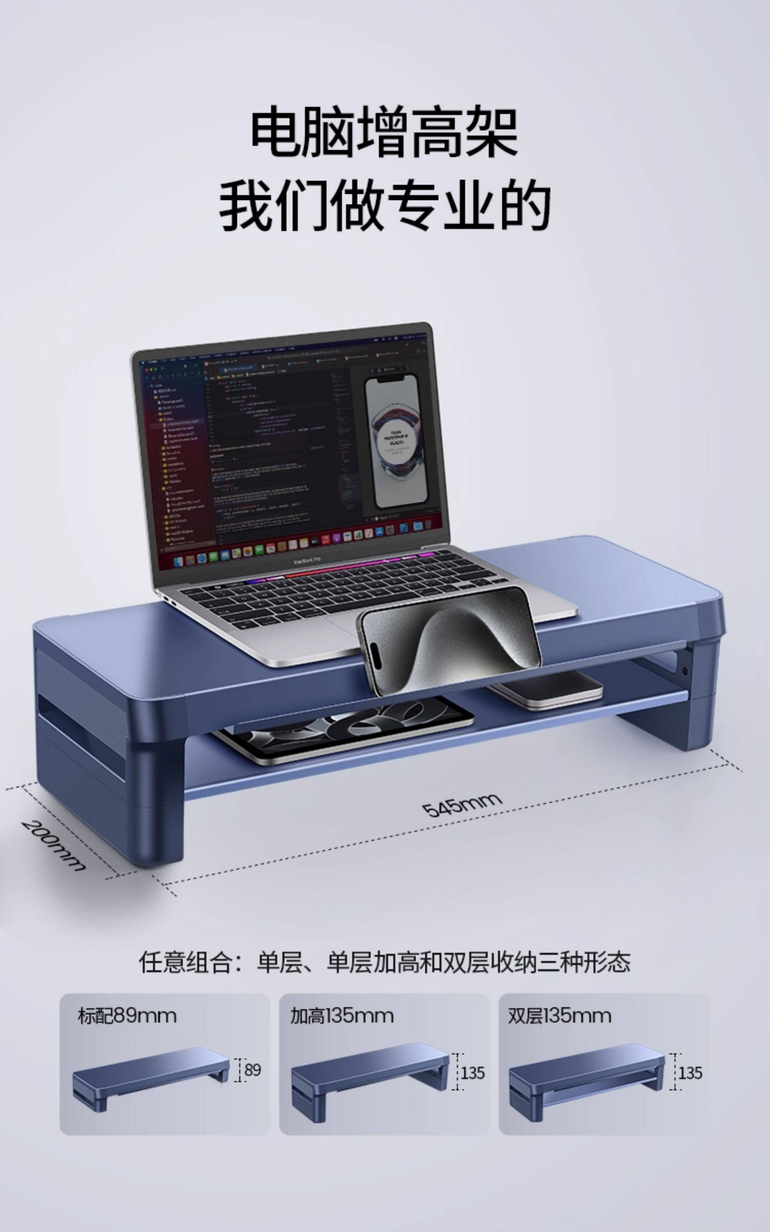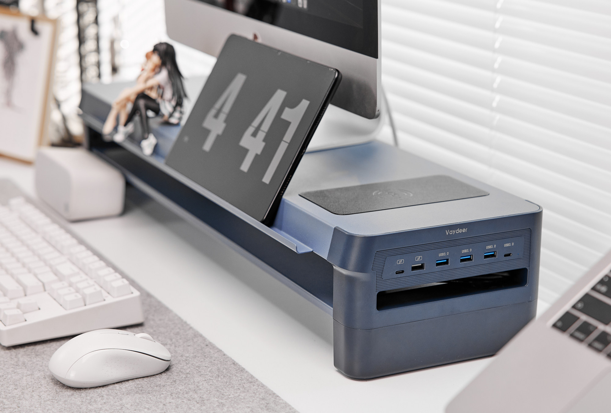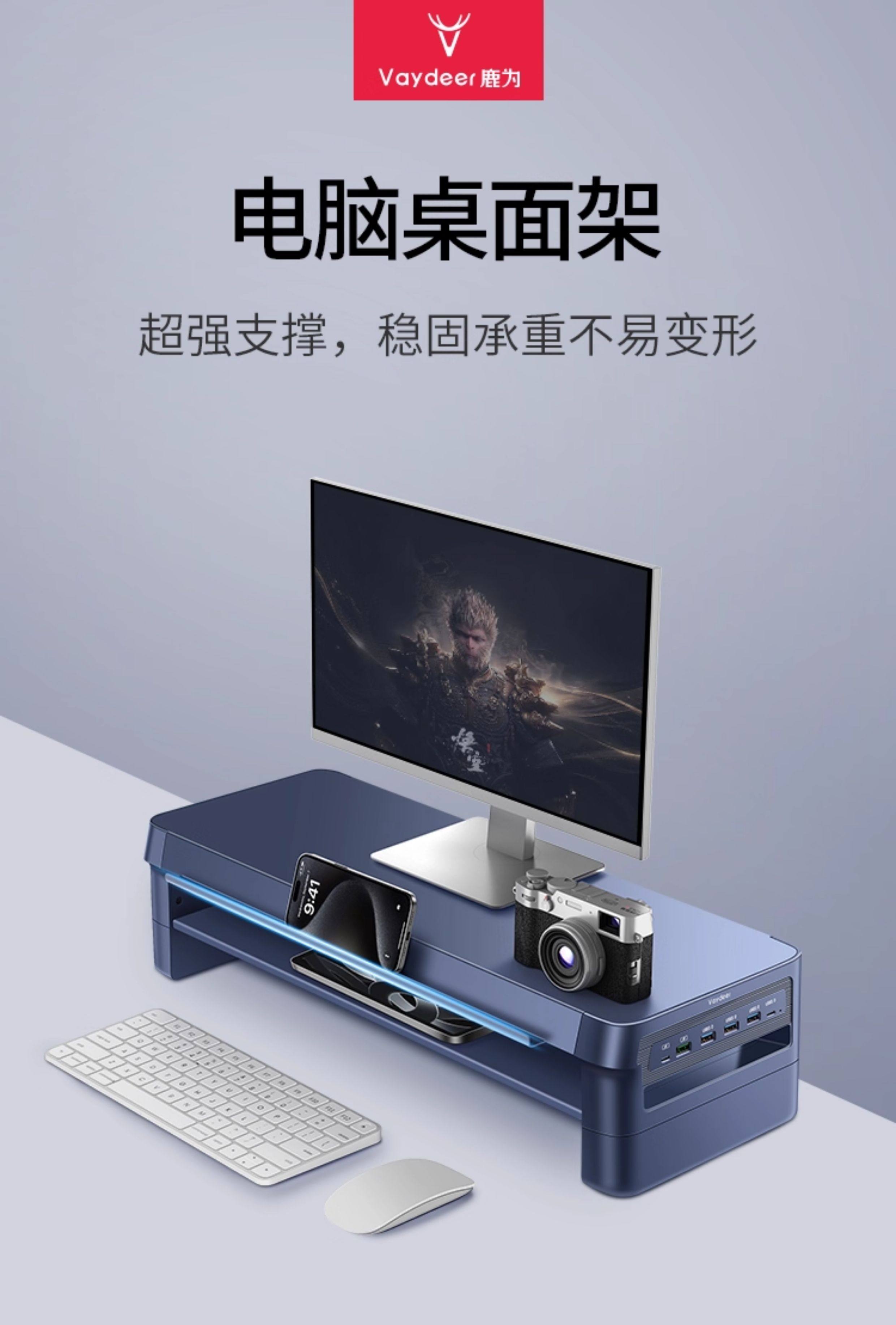 Luwei W Series Multifunctional Computer Monitor Riser, Fast Charging, Double-Layer Storage, Desktop Computer Screen, Laptop Tablet, Desktop Placement Elevated Base Stand