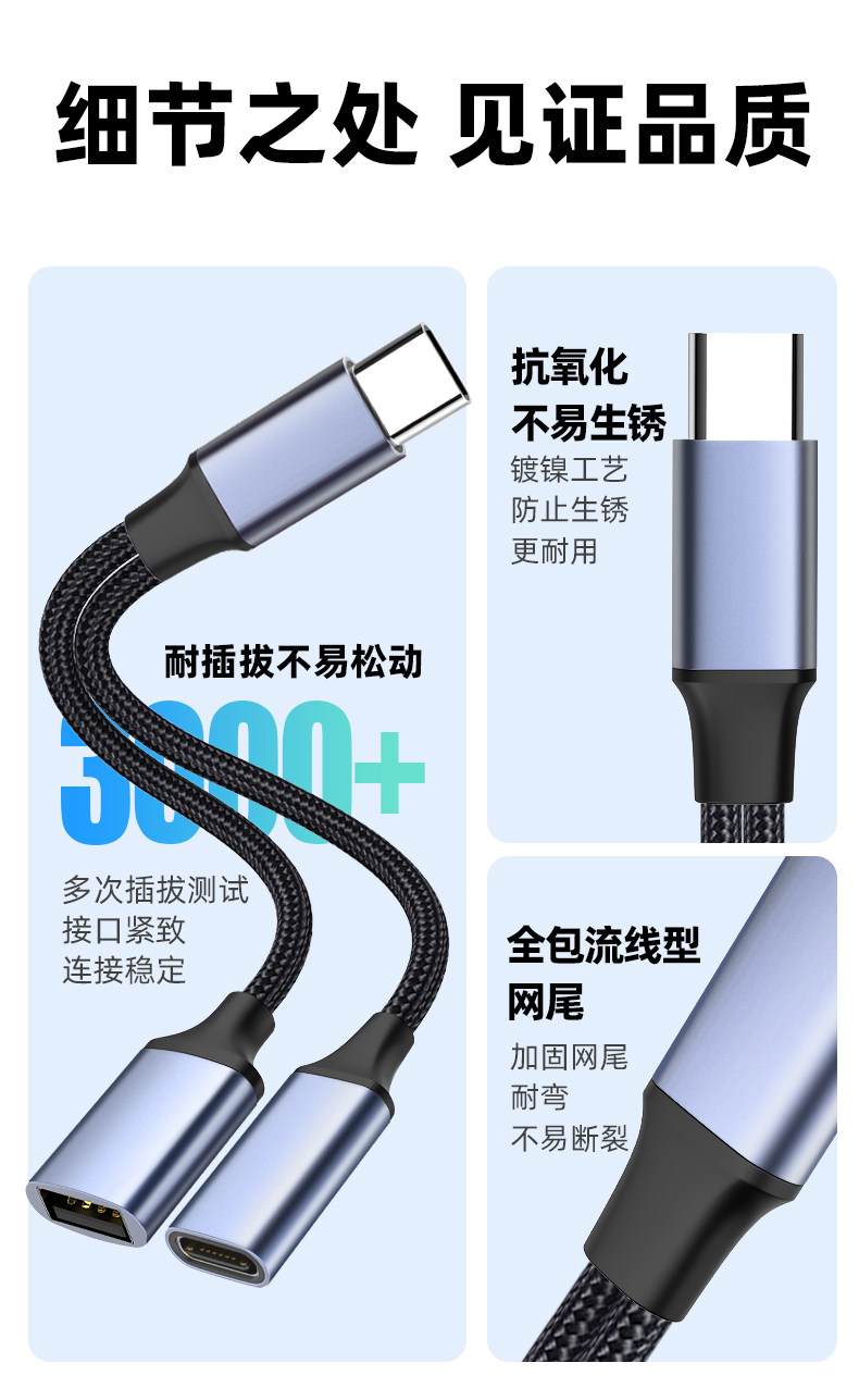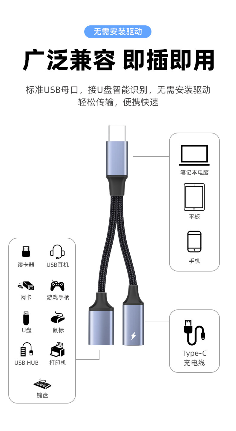 | Color Classification | Black[Otg 1-to-2 USB Female Data Port + Pd 60W Charging],Gray[Otg One Point Two 3.5mm Audio + Pd60W Charging],Gray[Otg One-To-Two Type-C Audio + Pd60W Charging] |
