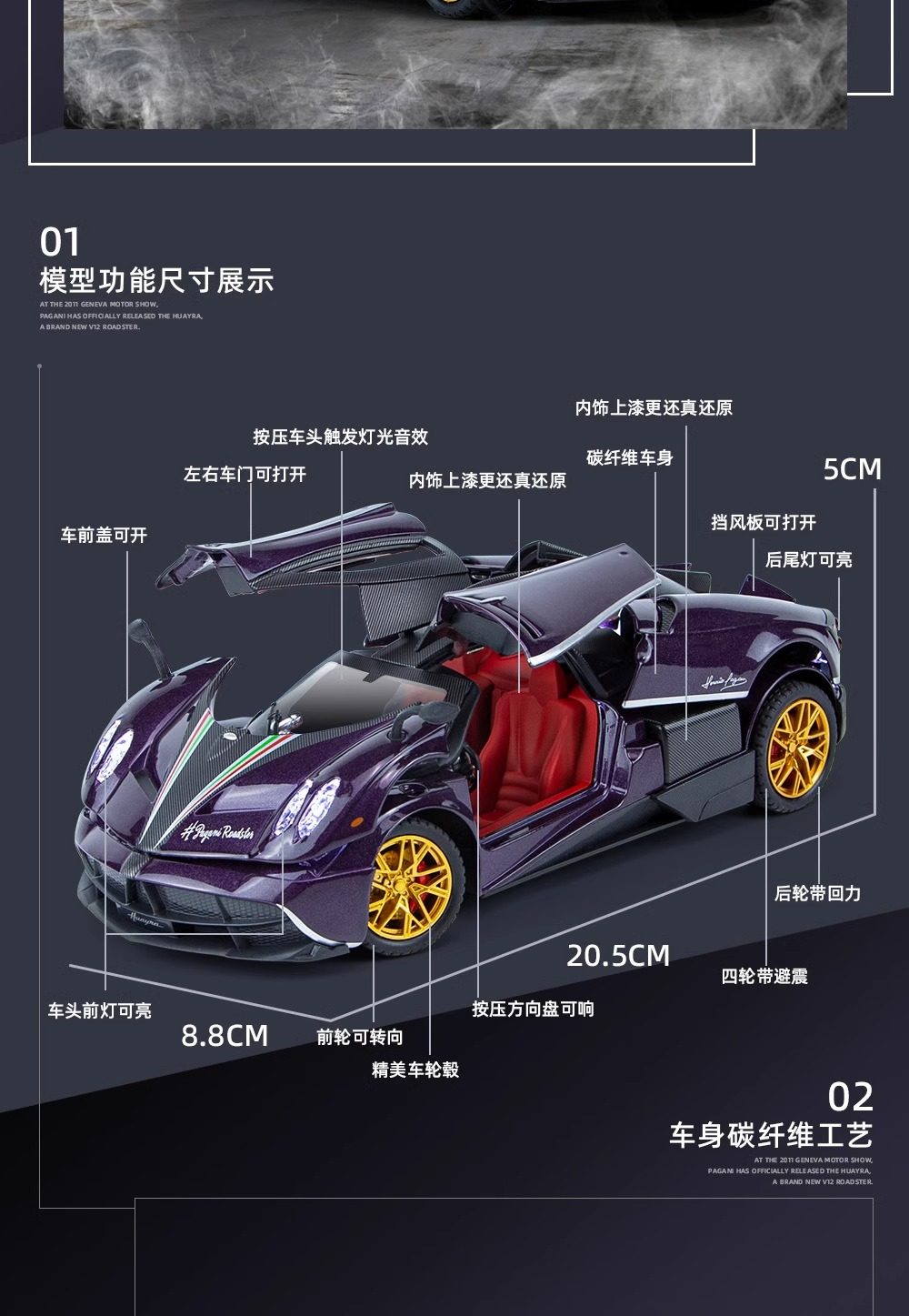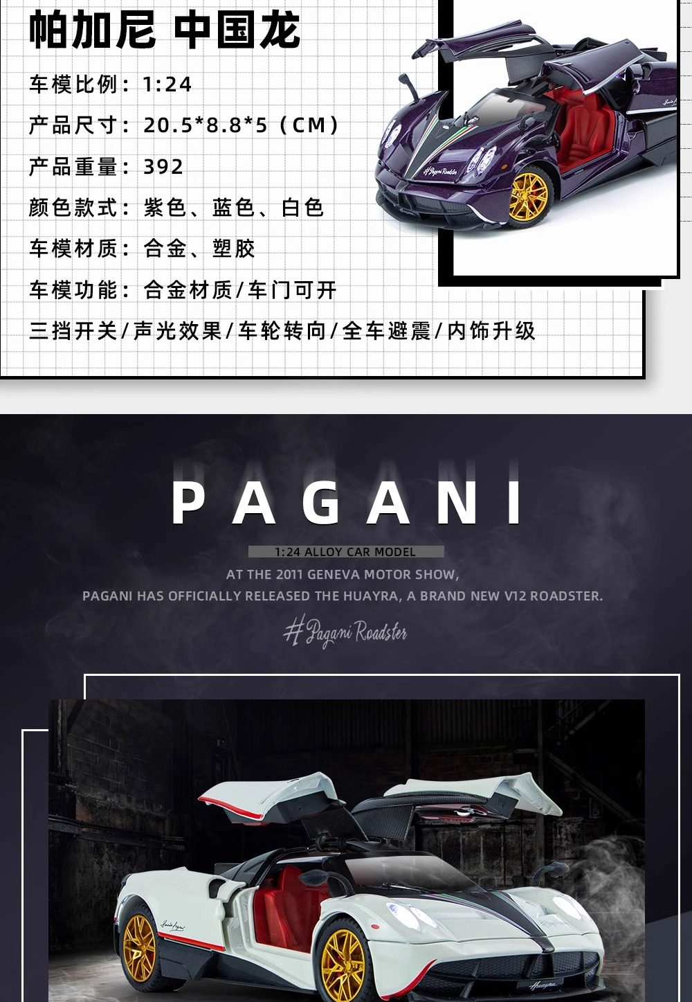 1:24 Pagani Huayra Car Model Alloy Simulation Chinese Dragon Wing Door Sports Car Toy Car Ornament Model Car