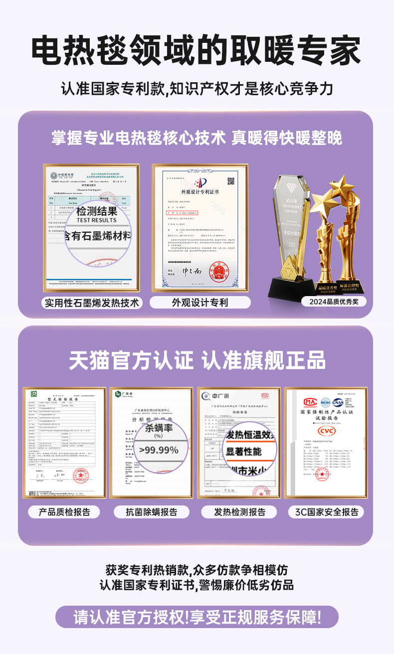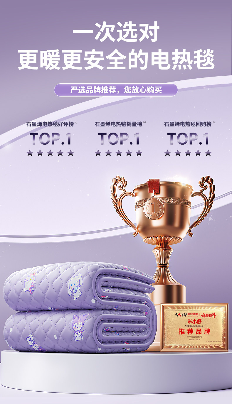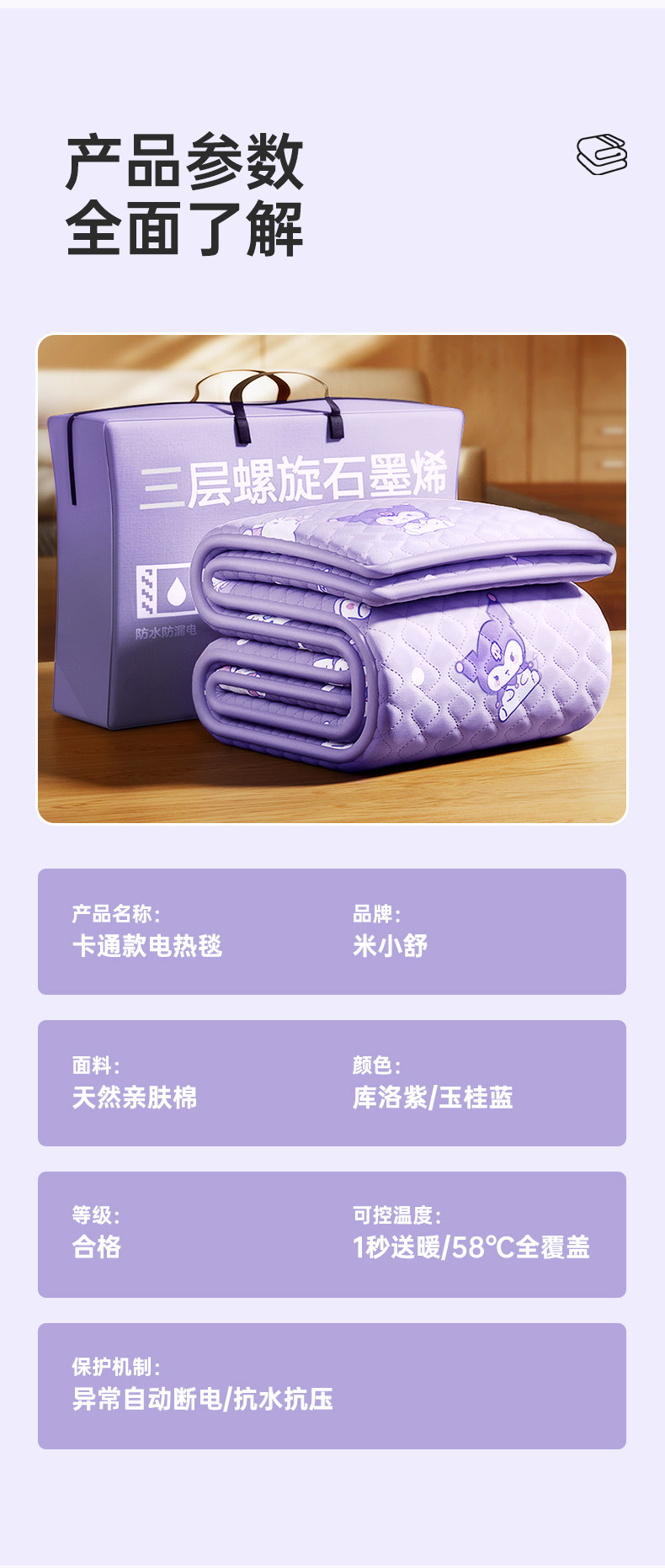 | Color Classification | [Hot Selling Top1] Tmall Certified◆Authentic Electric Blanket from the Top-Rated 1.0m Xiao Shu Flagship Store,【Six Certifications: Proven Safety and Reliability】 Insured by Ping an Insurance◆Beware of Cheap Models Without Certificates and Insurance False Propaganda,How Can Old Electric Blankets Compare to Mine?,↓The Following Is Thickened Class a Soy Fiber Electric Blanket◆Rapid Second Heating 63℃◆Fully Washable and Leak-Proof.◆Intelligent Temperature Control,700g Thickened Skin-Friendly Velvet [150*70cm]◆Antibacterial and Mite Removal◆Single Person Single Control◆Kuro Purple,700g Thickened Skin-Friendly Velvet [150*70cm]◆Antibacterial and Mite Removal◆Single Person Single Control◆Cinnamon Blue,700g Thickened Skin-Friendly Velvet [180*90cm]◆Antibacterial and Mite Removal◆Single Person Single Control◆Kuro Purple,700g Thickened Skin-Friendly Velvet [180*90cm]◆Antibacterial and Mite Removal◆Single Person Single Control◆Cinnamon Blue,700g Thickened Skin-Friendly Velvet [180*120cm]◆Antibacterial and Mite Removal◆Single Person Single Control◆Kuro Purple,700g Thickened Skin-Friendly Velvet [180*120cm]◆Antibacterial and Mite Removal◆Single Person Single Control◆Cinnamon Blue,↓The Following Is the 800Gthickened Class a Soy Fiber Electric Blanket◆Three Layers of Graphene Heat up in 2 Seconds◆Antibacterial and Mite Removal◆Intelligent Temperature Control,800g Thickened and Warm Skin-Friendly Velvet [150*70cm]◆Antibacterial and Mite Removal◆Single Person Single Control◆Kuro Purple,800g Thickened and Warm Skin-Friendly Velvet [150*70cm]◆Antibacterial and Mite Removal◆Single Person Single Control◆Cinnamon Blue,800g Thickened and Warm Skin-Friendly Velvet [180*90cm]◆Antibacterial and Mite Removal◆Single Person Single Control◆Kuro Purple,800g Thickened and Warm Skin-Friendly Velvet [180*90cm]◆Antibacterial and Mite Removal◆Single Person Single Control◆Cinnamon Blue,800g Thickened and Warm Skin-Friendly Velvet [180*120cm]◆Antibacterial and Mite Removal◆Single Person Single Control◆Kuro Purple,800g Thickened and Warm Skin-Friendly Velvet [180*120cm]◆Antibacterial and Mite Removal◆Single Person Single Control◆Cinnamon Blue,↓The Following Is the [Detachable and Washable] 700Gthickened Class a Soy Fiber Electric Blanket◆Three Layers of Graphene Heat up in 2 Seconds◆Antibacterial and Mite Removal◆Intelligent Temperature Control,700g Thickened Skin-Friendly Velvet [150*70cm] Removable and Washable◆Antibacterial and Mite Removal◆Single Person Single Control◆Kuro Purple,700g Thickened Skin-Friendly Velvet [150*70cm] Removable and Washable◆Antibacterial and Mite Removal◆Single Person Single Control◆Cinnamon Blue,700g Thickened Skin-Friendly Velvet [180*90cm] Removable and Washable◆Antibacterial and Mite Removal◆Single Person Single Control◆Kuro Purple,700g Thickened Skin-Friendly Velvet [180*90cm] Removable and Washable◆Antibacterial and Mite Removal◆Single Person Single Control◆Cinnamon Blue,700g Thickened Skin-Friendly Velvet [180*120cm] Removable and Washable◆Antibacterial and Mite Removal◆Single Person Single Control◆Kuro Purple,700g Thickened Skin-Friendly Velvet [180*120cm] Removable and Washable◆Antibacterial and Mite Removal◆Single Person Single Control◆Cinnamon Blue,↓The Following Is the [Detachable and Washable] 800Gthickened Class a Soy Fiber Electric Blanket◆Three Layers of Graphene Heat up in 2 Seconds◆Antibacterial and Mite Removal◆Intelligent Temperature Control,800g Thickened and Warm Skin-Friendly Velvet [150*70cm] Removable and Washable◆Antibacterial and Mite Removal◆Single Person Single Control◆Kuro Purple,800g Thickened and Warm Skin-Friendly Velvet [150*70cm] Removable and Washable◆Antibacterial and Mite Removal◆Single Person Single Control◆Cinnamon Blue,800g Thickened and Warm Skin-Friendly Velvet [180*90cm] Removable and Washable◆Antibacterial and Mite Removal◆Single Person Single Control◆Kuro Purple,800g Thickened and Warm Skin-Friendly Velvet [180*90cm] Removable and Washable◆Antibacterial and Mite Removal◆Single Person Single Control◆Cinnamon Blue,800g Thickened and Warm Skin-Friendly Velvet [180*120cm] Removable and Washable◆Antibacterial and Mite Removal◆Single Person Single Control◆Kuro Purple,800g Thickened and Warm Skin-Friendly Velvet [180*120cm] Removable and Washable ◆ Antibacterial and Mite Removal ◆ Single Person Single Control ◆ Cinnamon Blue |