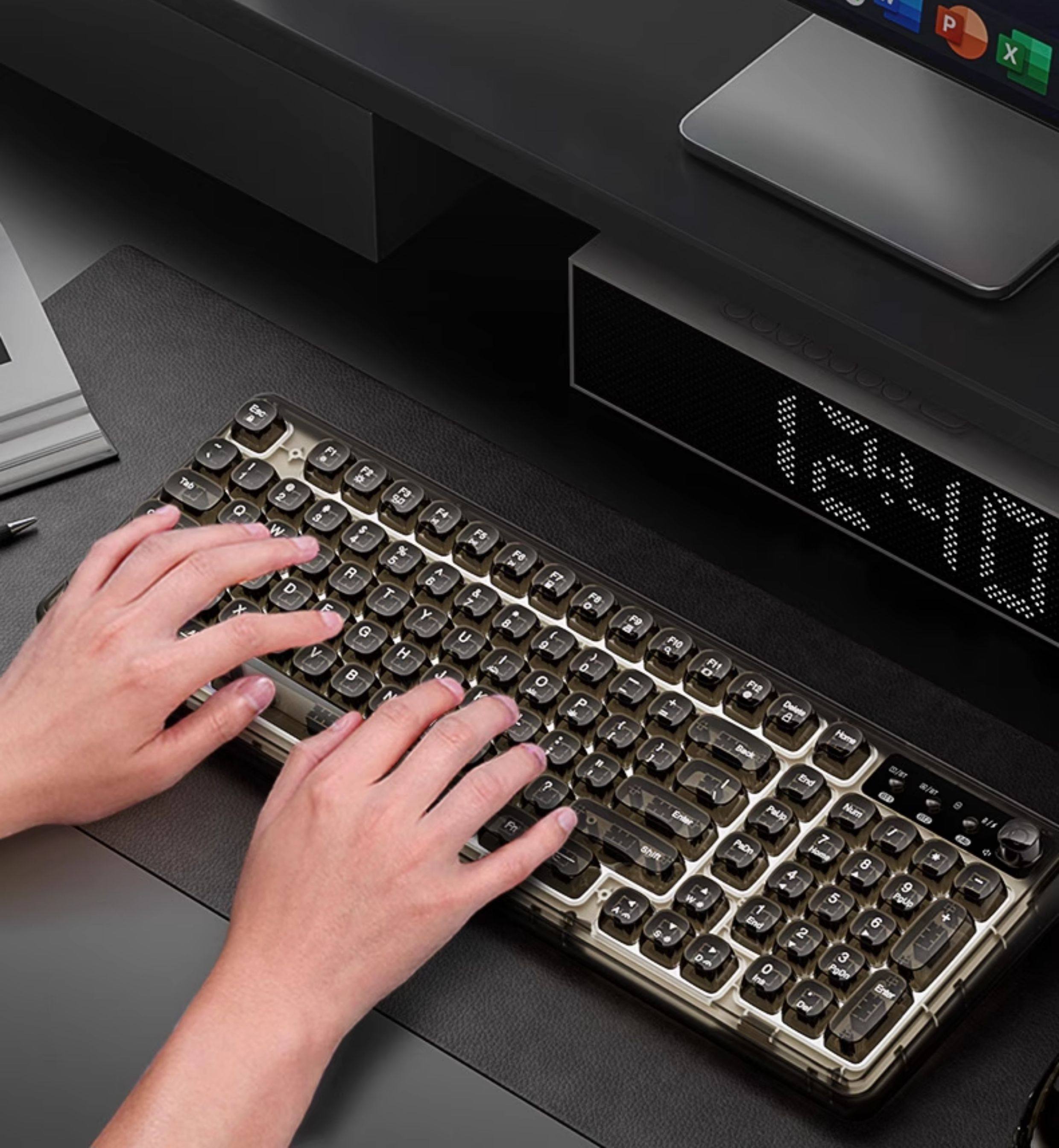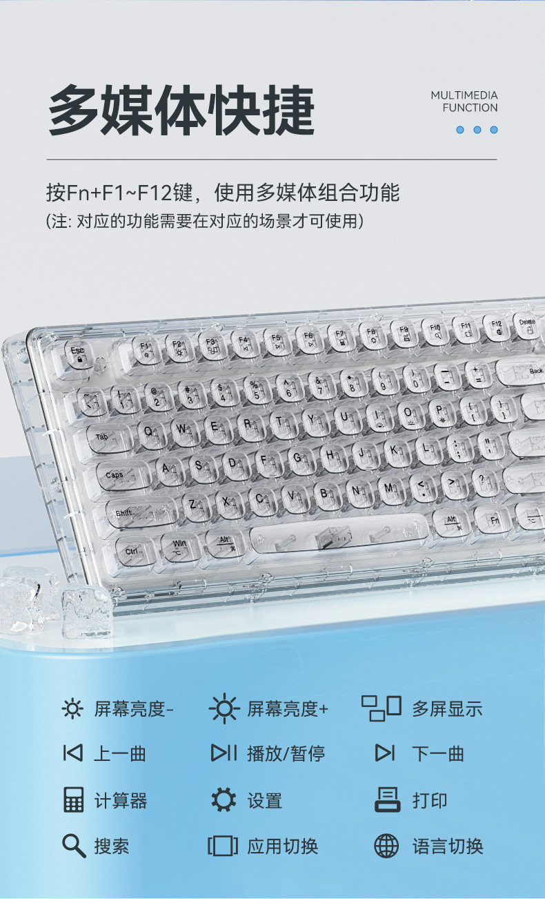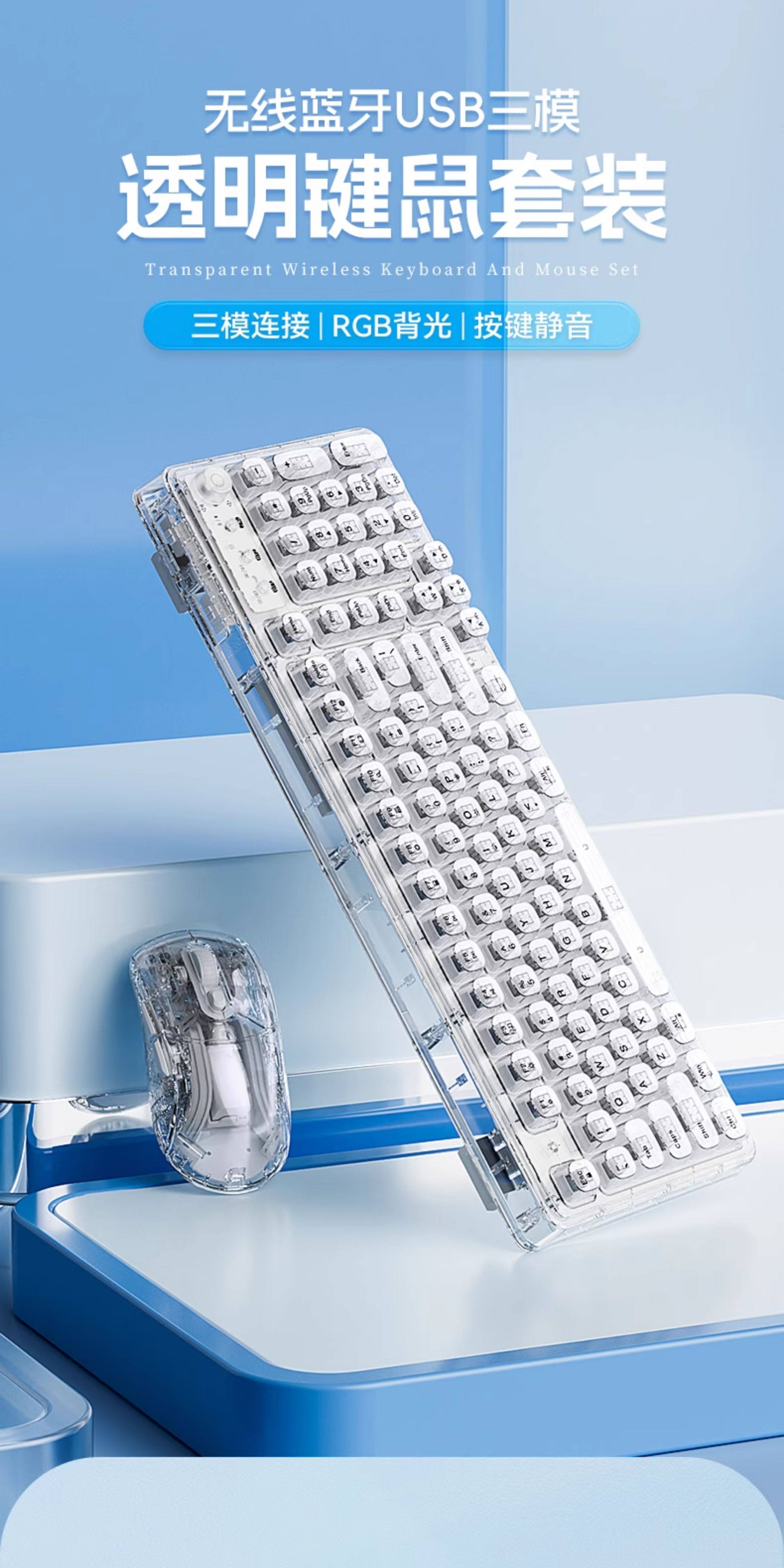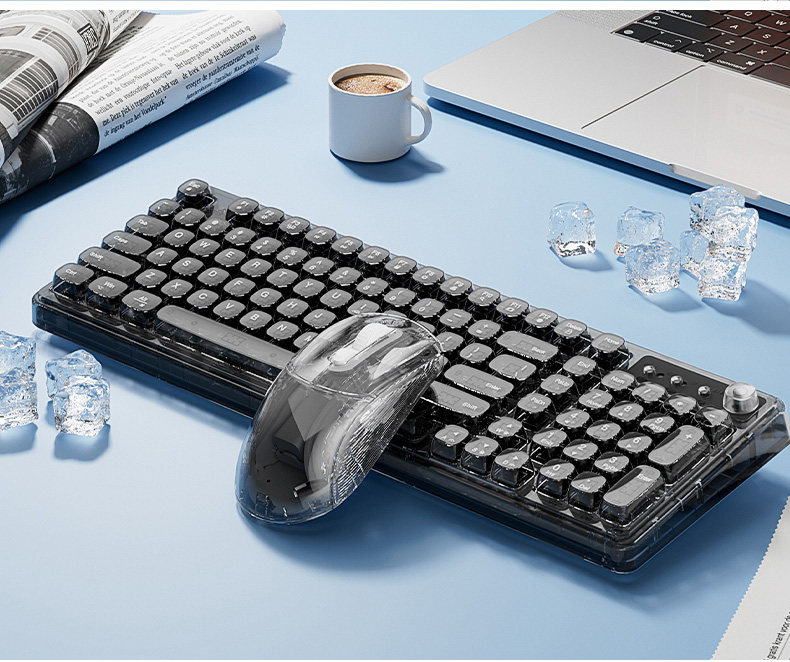 Mengzu Z99 Wireless Bluetooth Transparent Ice Cube Keyboard and Mouse Set Mechanical Computer Keyboard and Mouse for Girls Office Silent