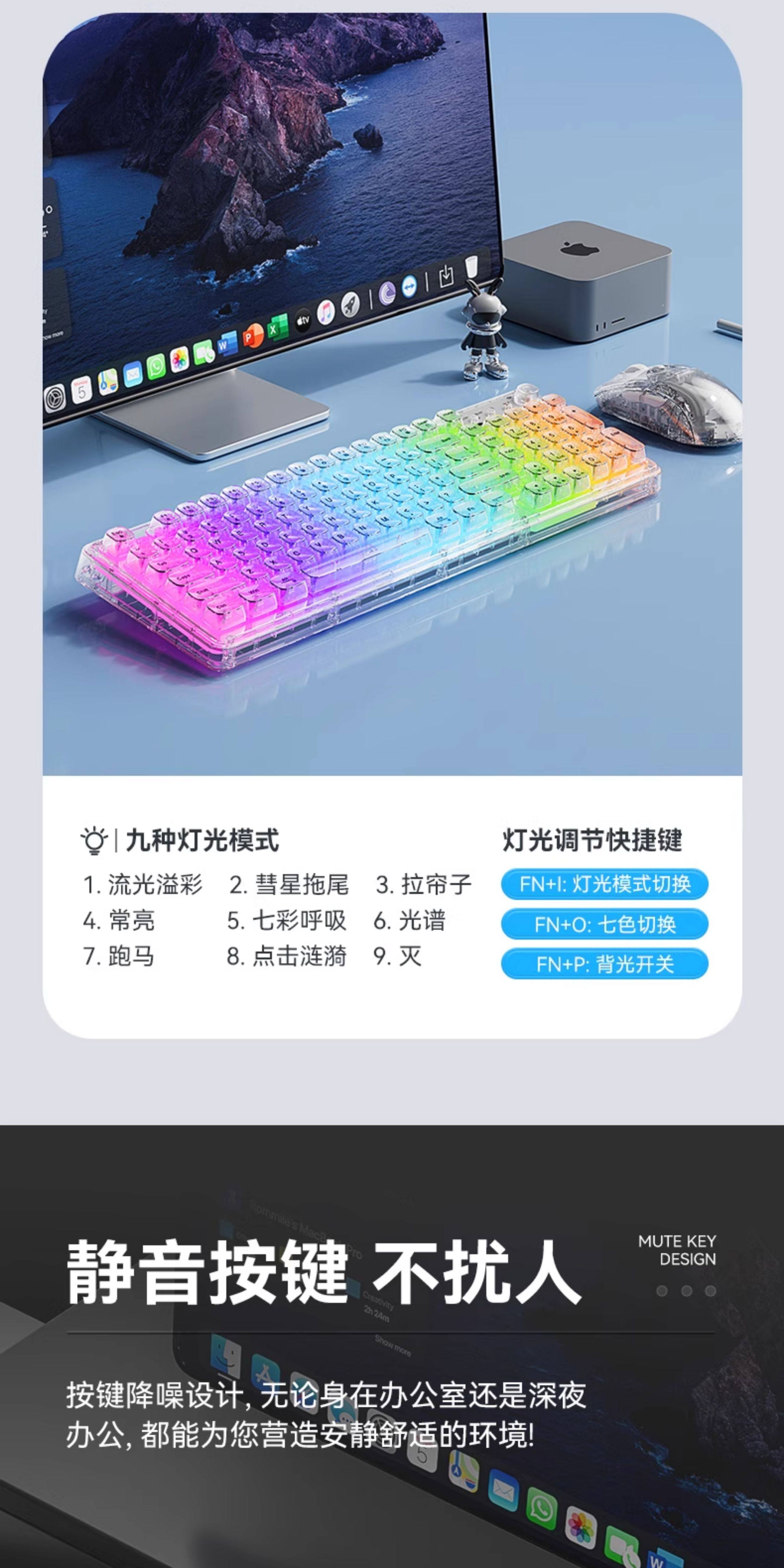 | Color Classification | Translucent White Wired[Single Keyboard]+Rgb Lighting Effects,Iced Black Wired[Single Keyboard]+Rgb Lighting Effects,Translucent White Wired[Single Keyboard + Wired Mouse]+Rgb Lighting Effects,Iced Black Wired[Single Keyboard + Wired Mouse]+Rgb Lighting Effects,----The Following Is the Wireless Three-Mode Model----,Translucent White Tri-Mode[Single Keyboard]Three-Mode Connection + Multi-Function Knob + Rgb Lighting Effect,Iced Black Tri-Mode[Single Keyboard]Three-Mode Connection + Multi-Function Knob + Rgb Lighting Effect,Translucent White Tri-Mode[Single Keyboard + Wireless Mouse]Three-Mode Connection + Multi-Function Knob + Rgb Lighting Effect,Iced Black Tri-Mode[Single Keyboard + Wireless Mouse]Three-Mode Connection + Multi-Function Knob + Rgb Lighting Effect |