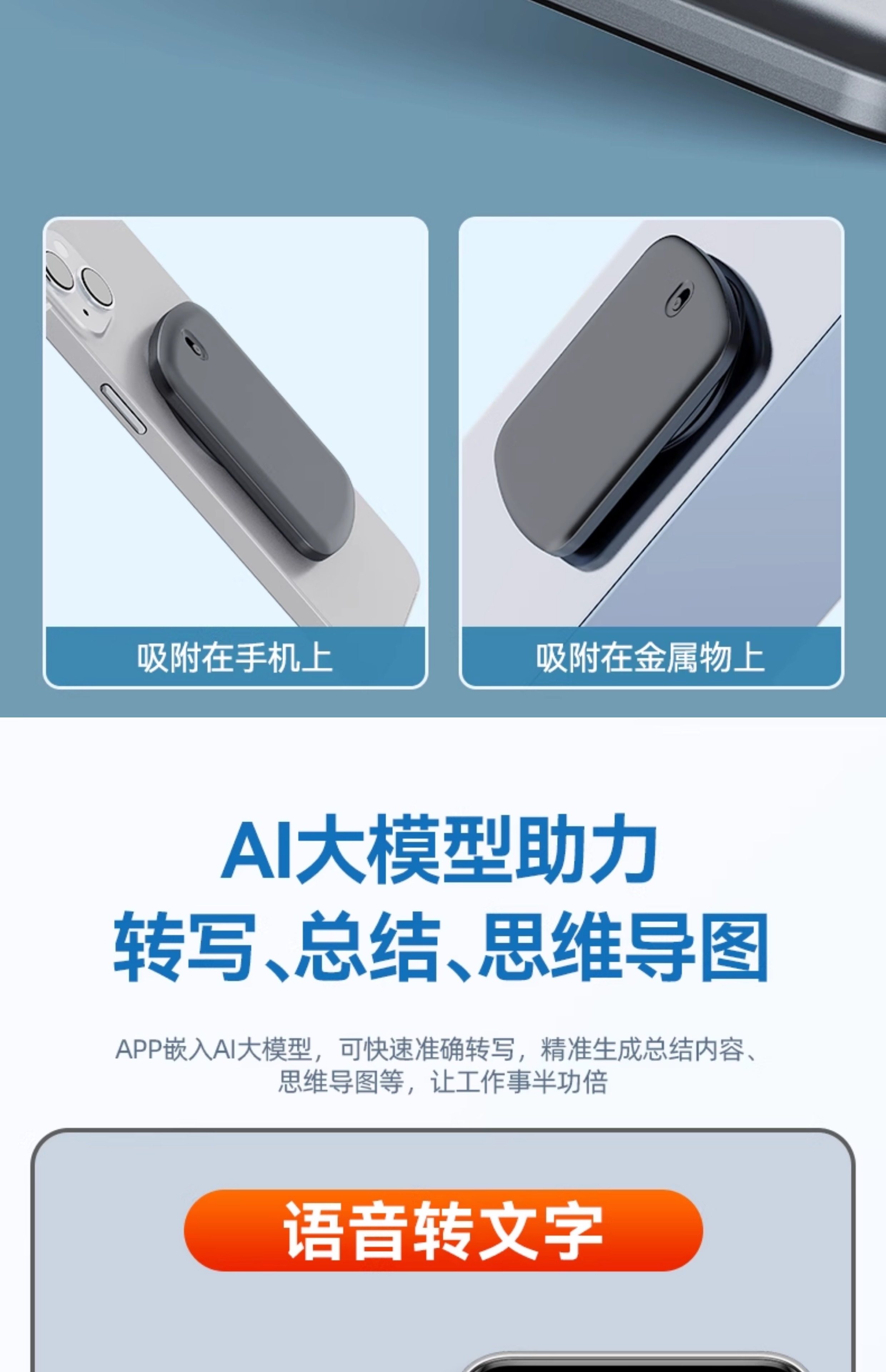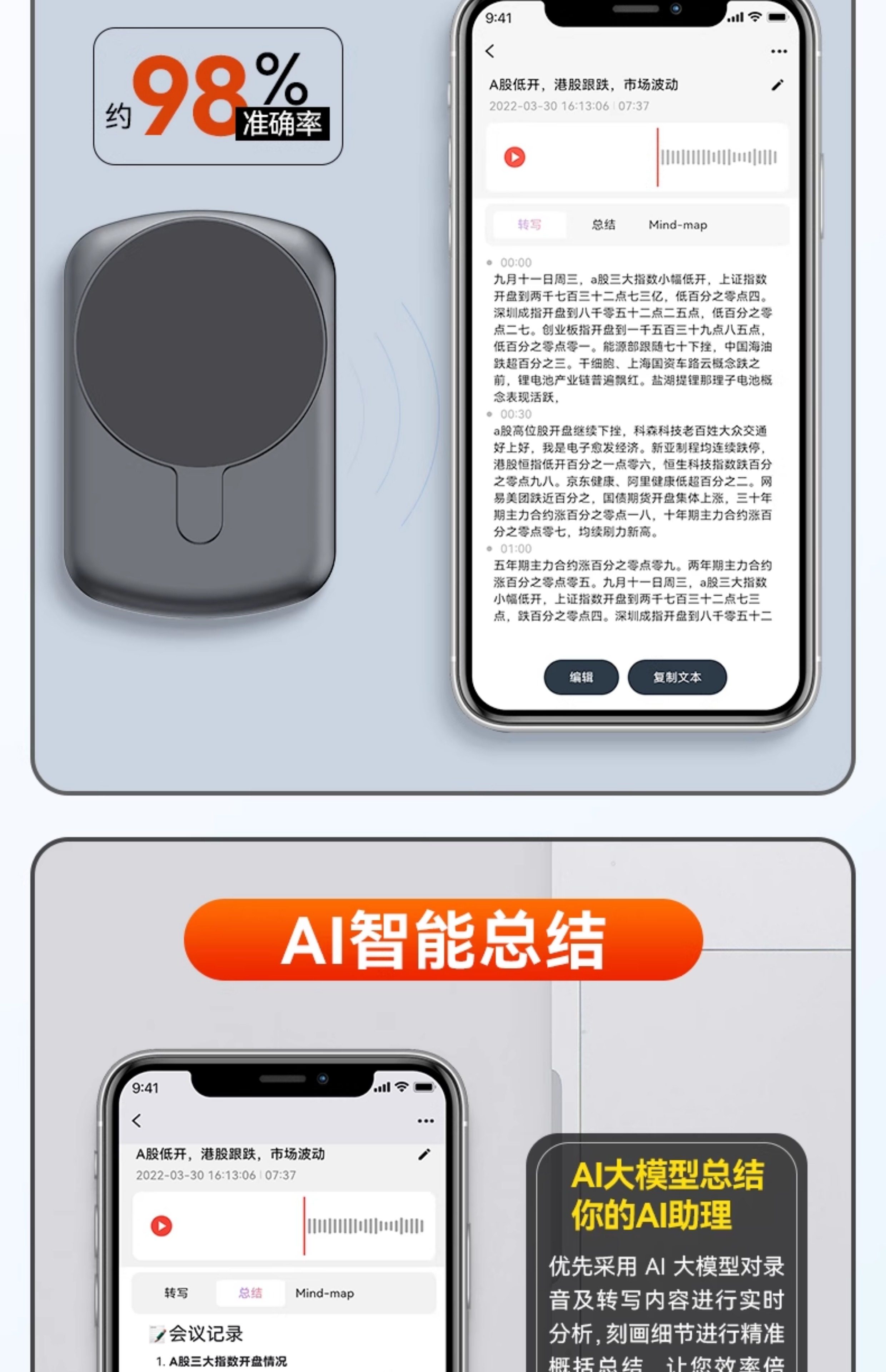 Ai Smart Voice Recorder Professional Voice-To-Text Office Meeting Translation Device Transcription Summary Mind Map