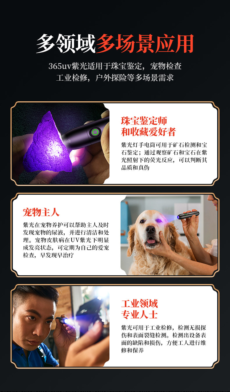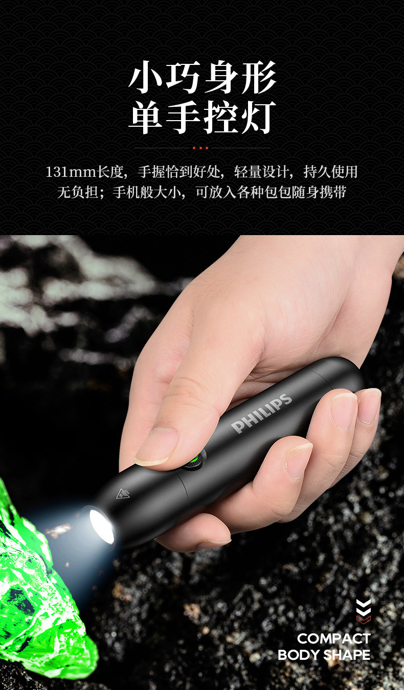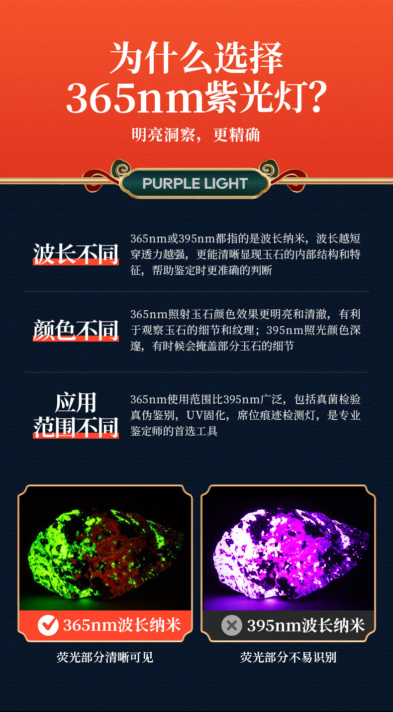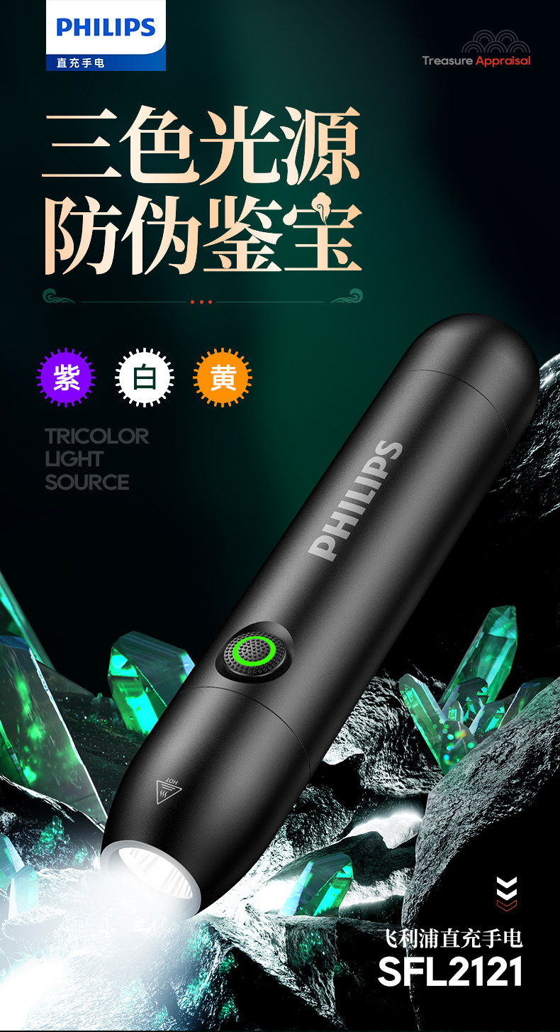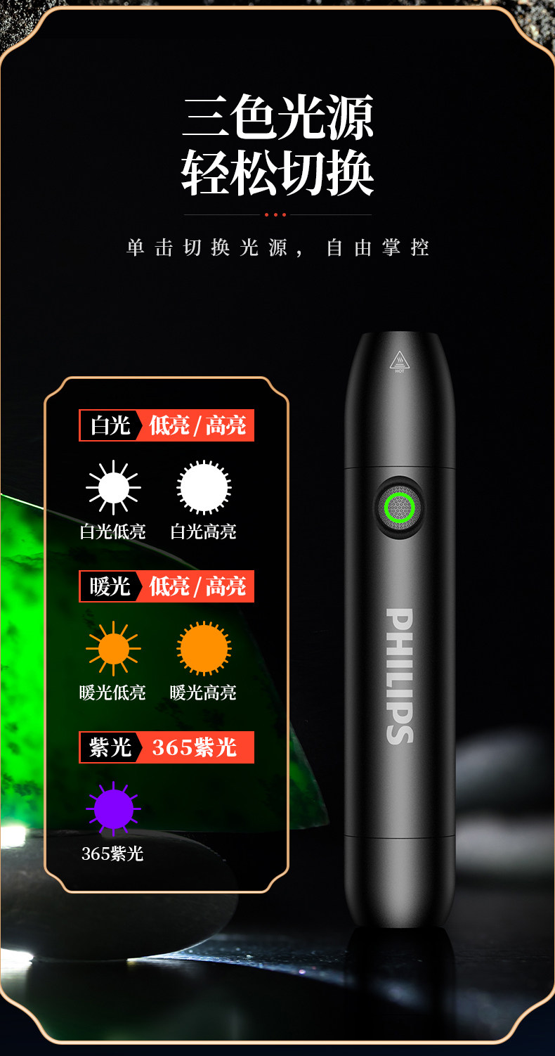 Philips Jade Identification Flashlight 365Nm Strong Purple Light Lamp for Professional Identification of Jewelry, Jade, and Cultural Artifacts, and Money Verification
