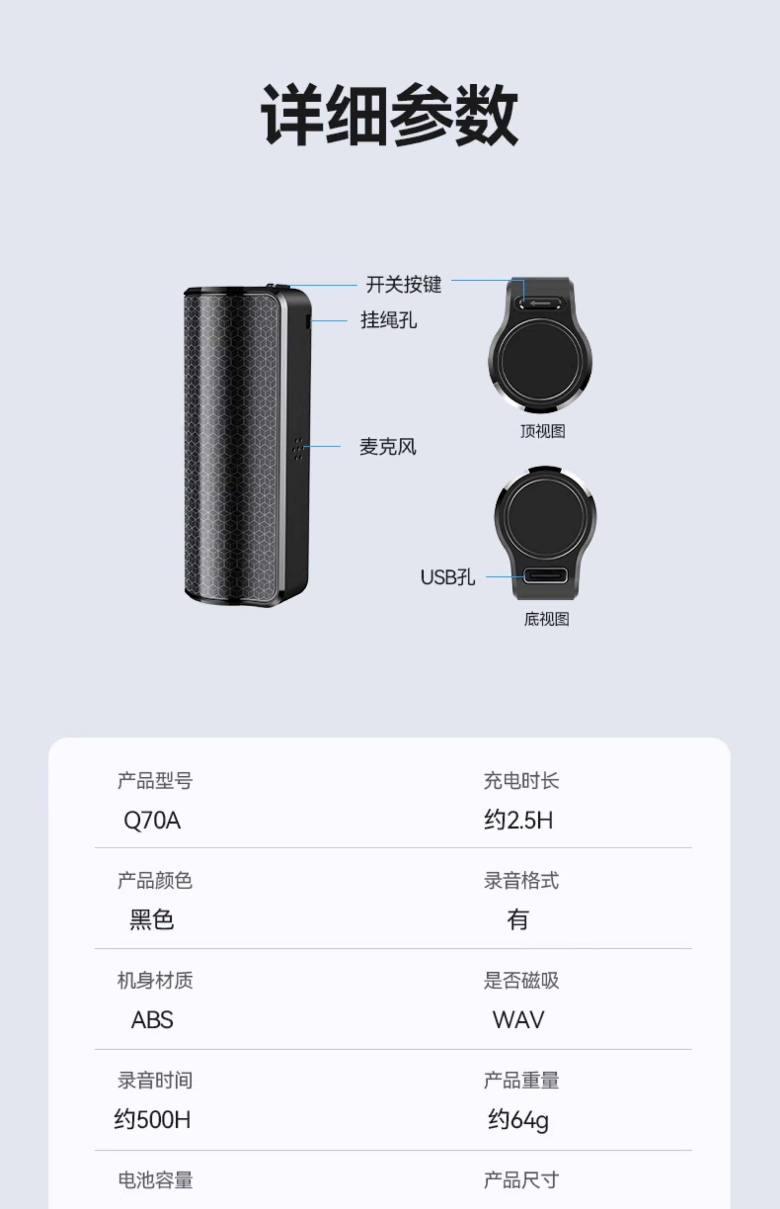 Recording Pen, Professional High-Definition Noise Reduction, Portable Student and Lawyer-Specific Equipment, Converts Text, Ultra-Long Standby Recording Device