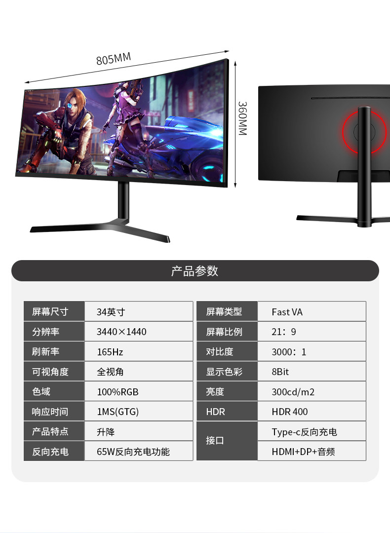 | Color Classification | Double Black [34inch Curved Surface Quasi-4Kmva Ribbon Screen 165Hz],Pure White [34inch Curved Surface Quasi-4Kmva Hairtail Screen 165Hz],Single Black [34inch Curved Surface Quasi-4Kmva Ribbon Screen 180Hz],Dark Black [34inch Curved Surface Quasi-4Kmva Hairtail Screen 165Hz],Black [34inch Curved Surface Quasifourkmva Ribbon Screen 180Hz],Black and Gray [34inch Curved Surface Quasi-4Kmva Ribbon Screen 165Hz],All Black [34inch Curved Surface Quasi-4Kmva Hairtail Screen 180Hz],White [34inch Curved Surface Quasi-4Kmva Ribbon Screen 180Hz],Dark Black [34inch Curved Surface Quasi-4K Lg Ips Panel with Fish Screen 144Hz],Double Black [34inch Curved Surface Quasi-4Khva1000R Panel with Fish Screen 240Hz],Gray and Black [38inch Curved Surface Quasi-4K Lg Panel with Fish Screen 144Hz],Pure Black [49inch Curved Surface Quasi-5Kmva Ribbon Screen 165Hz] |