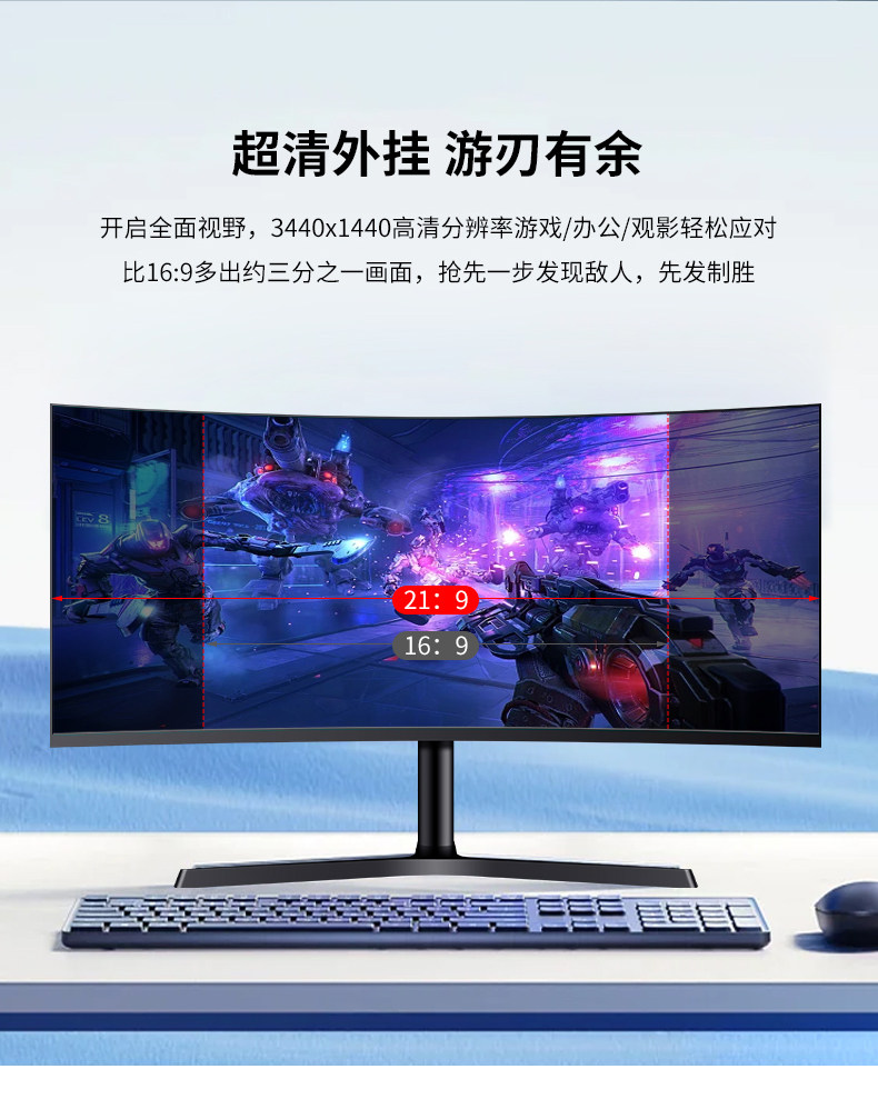 34inch Curved 165Hz Fish Screen 4K Desktop Computer 144 Gaming 38 Monitor Gaming Internet Cafe Screen 32