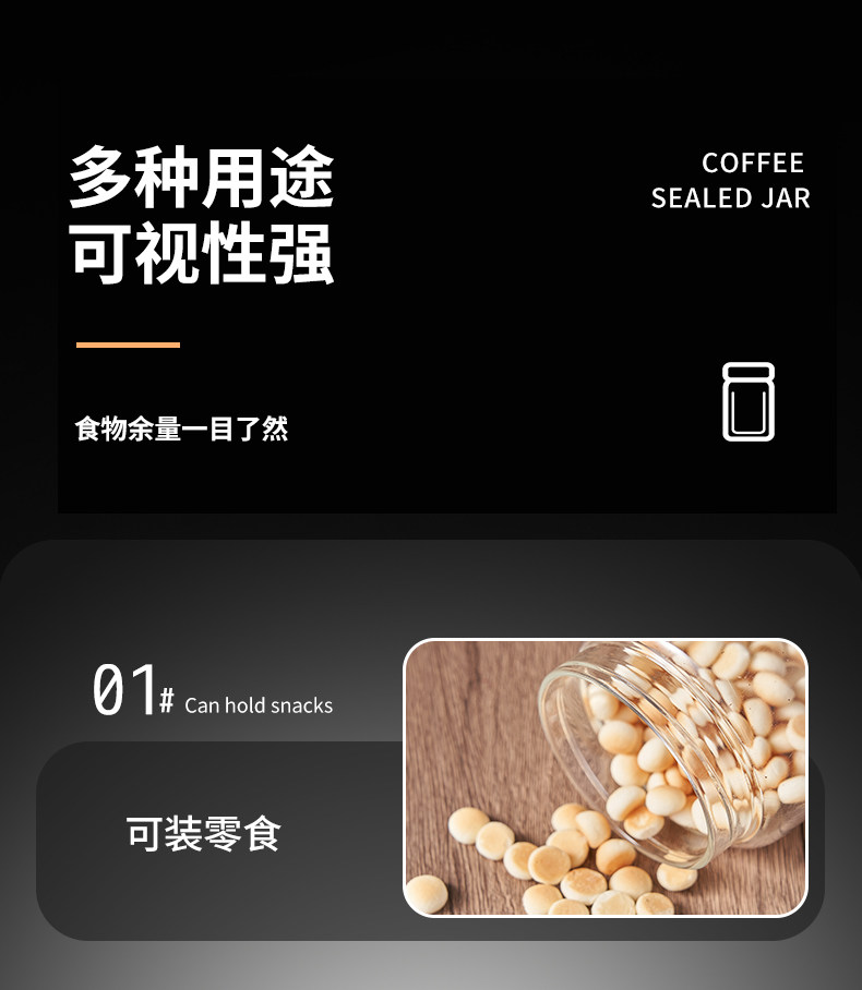 Food-Grade Coffee Bean Storage Jar, Glass Sealed Jar, Special Storage Jar for Coffee Powder, Tea and Tangerine Peel Storage Jar