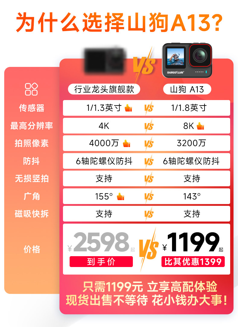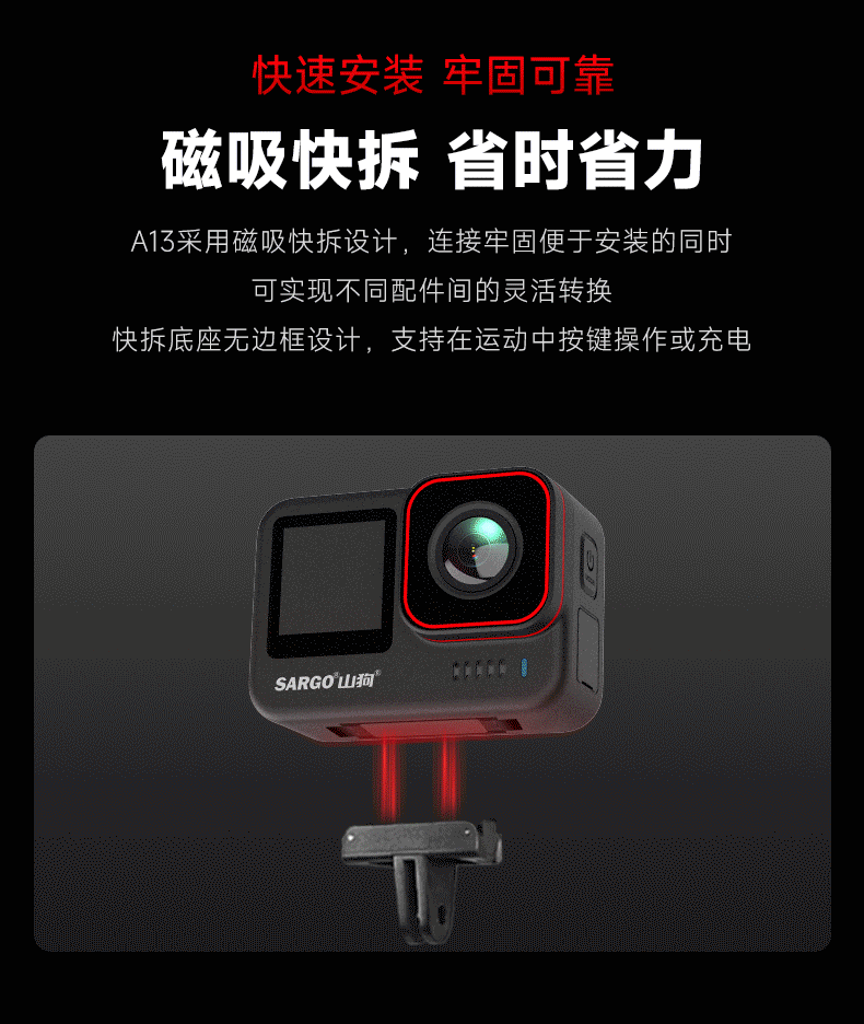 Shandog A13 Action Camera 8K Magnetic Quick-Release Motorcycle Driving Recorder Non-360 Panoramic Riding Camera