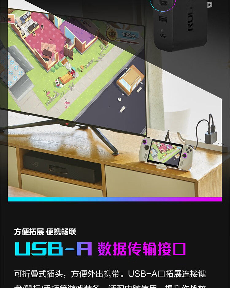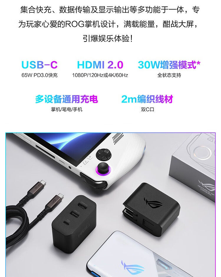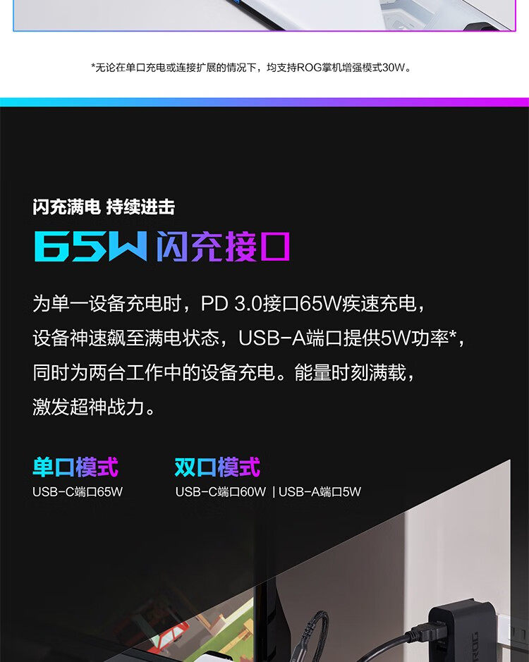 Asus Rog 65W Charging Docking Station Is Suitable for Rog Handheld Game Consoles, Mobile Phones, and Computers as a Multi-Functional Charger