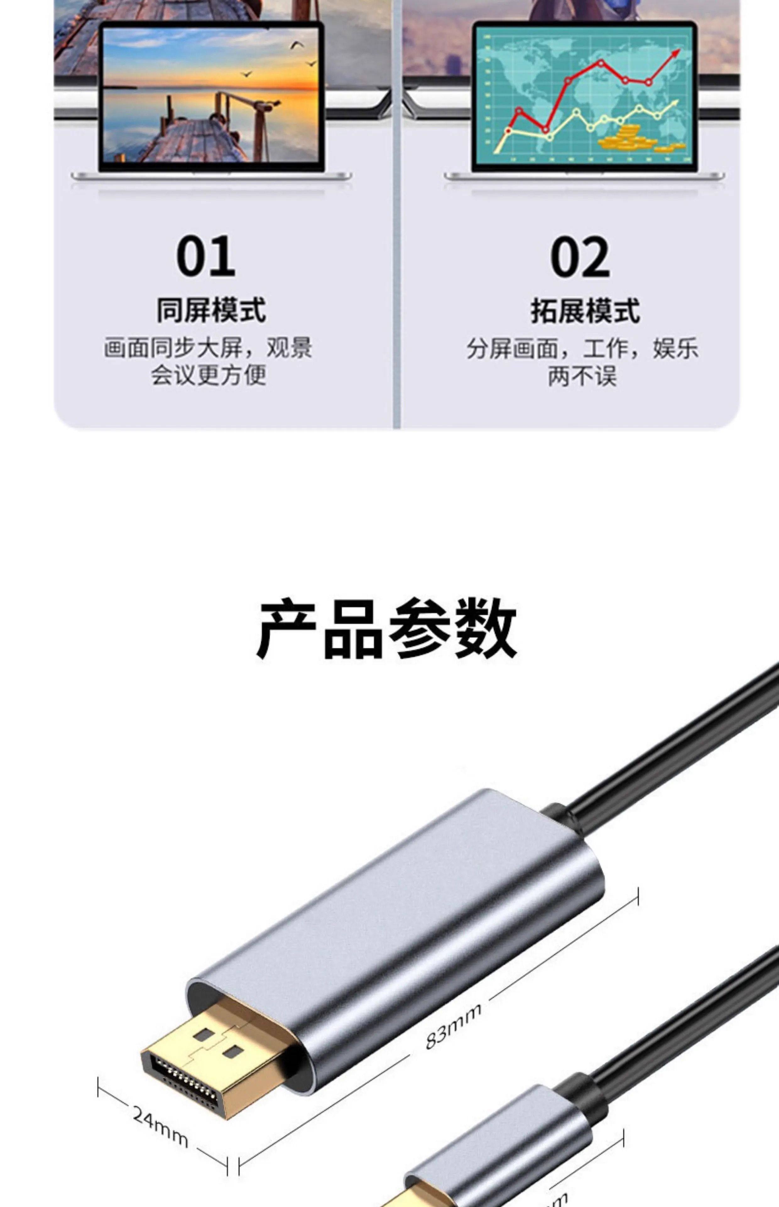 King Kong Leopard Typec to Dp1.4 Cable 8K60 High-Definition Conversion Mobile Screen Projection Monitor Thunderbolt 4/3 Adapter Laptop External Usbc Interface Expansion 2K240/4K144Hz