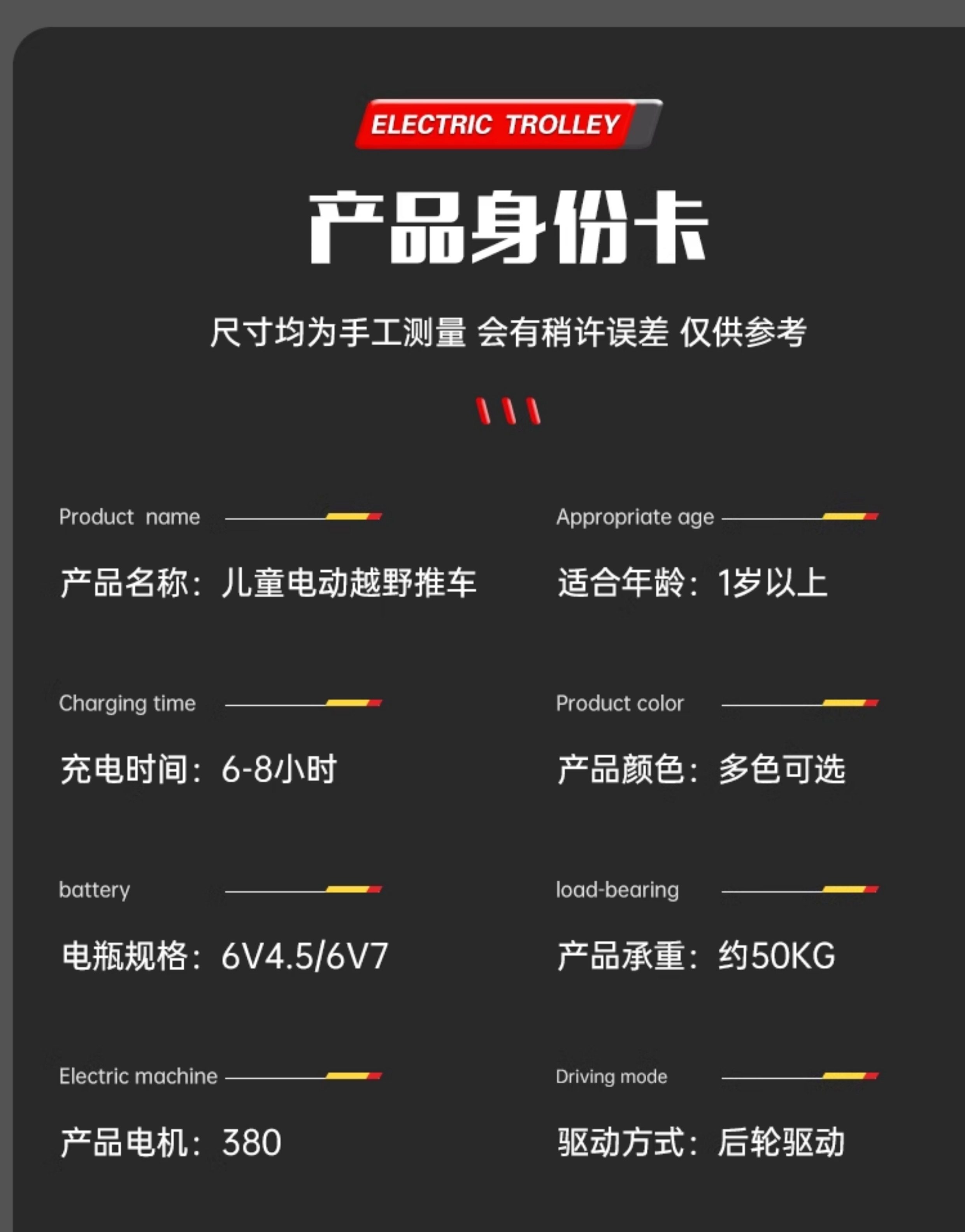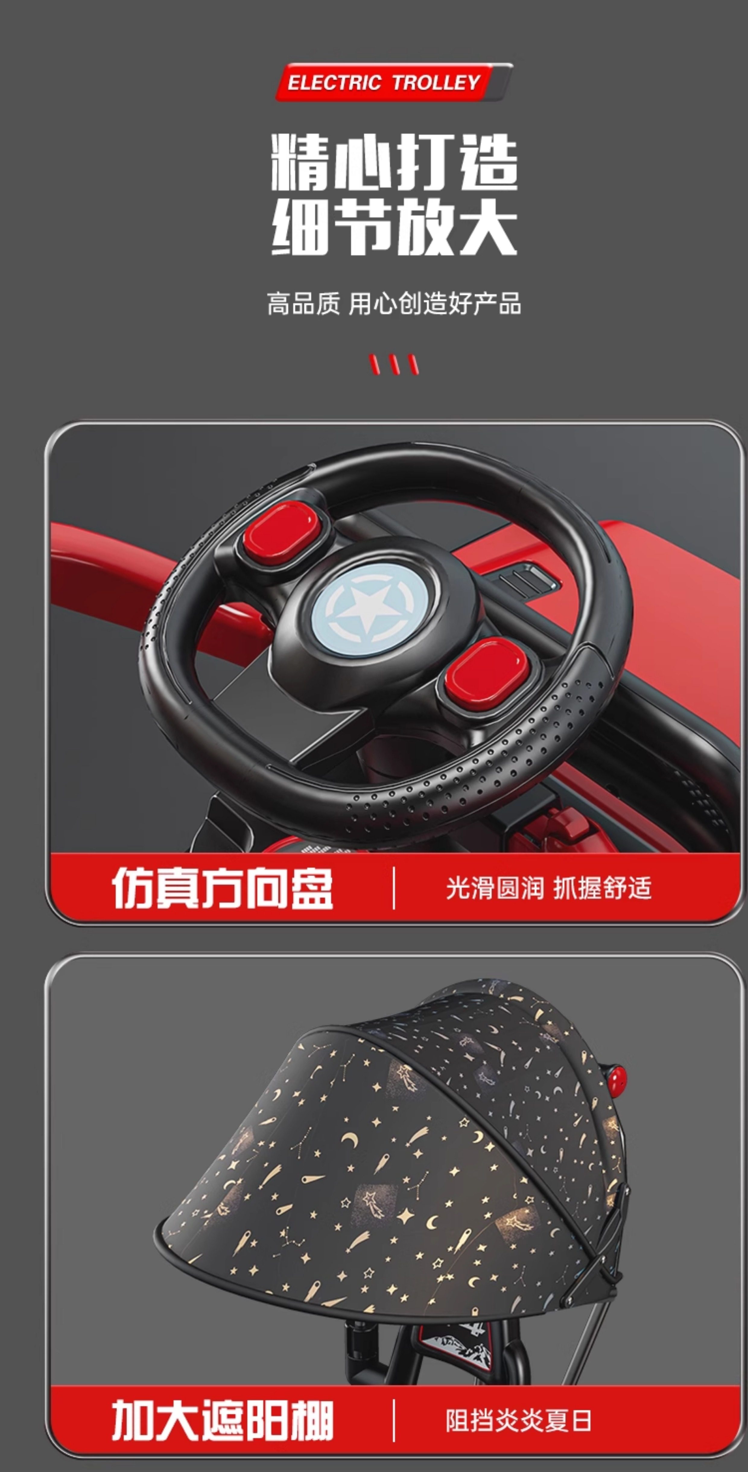 | Color Classification | New Flame Red [Sliding Style] Early Education Music,New Flame Red [Electric Push Handle Model] Single Drive + 6V4A Small Battery + Early Education Music + Push Handle Steering,New Flame Red [Electric Remote Control Model] - Remote Control + Dual Drive + 6V7A High-Capacity Battery + Bluetooth Music + Steering Handle.,New Flame Red [Electric Sunshade Model] Remote Control + Dual Drive + 6V7A Large Battery + Bluetooth Music + Push Handle Can Be Turned + Sunshade,New Space Gray [Sliding Style] Early Education Music,New Space Gray [Electric Push Handle Model] Single Drive + 6V4A Small Battery + Early Education Music + Push Handle Steering,New Space Gray [Electric Remote Control Model] - Remote Control + Dual Drive + 6V7A High-Capacity Battery + Bluetooth Music + Steering Handle.,New Space Gray [Electric Sunshade Model] Remote Control + Dual Drive + 6V7A Large Battery + Bluetooth Music + Push Handle Can Be Turned + Sunshade.,New Sakura Pink [Gliding Style] Early Education Music,New Sakura Pink [Electric Push Handle Model] Single Drive + 6V4A Small Battery + Early Education Music + Push Handle Steering.,New Sakura Pink [Electric Remote Control Model] - Remote Control + Dual Drive + 6V7A High-Capacity Battery + Bluetooth Music + Steering Handle,New Sakura Pink [Electric Sunshade Model] Remote Control + Dual Drive + 6V7A Large Battery + Bluetooth Music + Push Handle Can Be Turned + Sunshade,New Khaki [Sliding Style] Early Education Music,New Khaki [Electric Push Handle Model] Single Drive + 6V4A Small Battery + Early Education Music + Push Handle Steering,New Khaki [Electric Remote Control Model] - Remote Control + Dual Drive + 6V7A High-Capacity Battery + Bluetooth Music + Steering Handle.,New Khaki [Electric Sunshade Model] Remote Control + Dual Drive + 6V7A Large Battery + Bluetooth Music + Push Handle Can Be Turned + Sunshade. |
