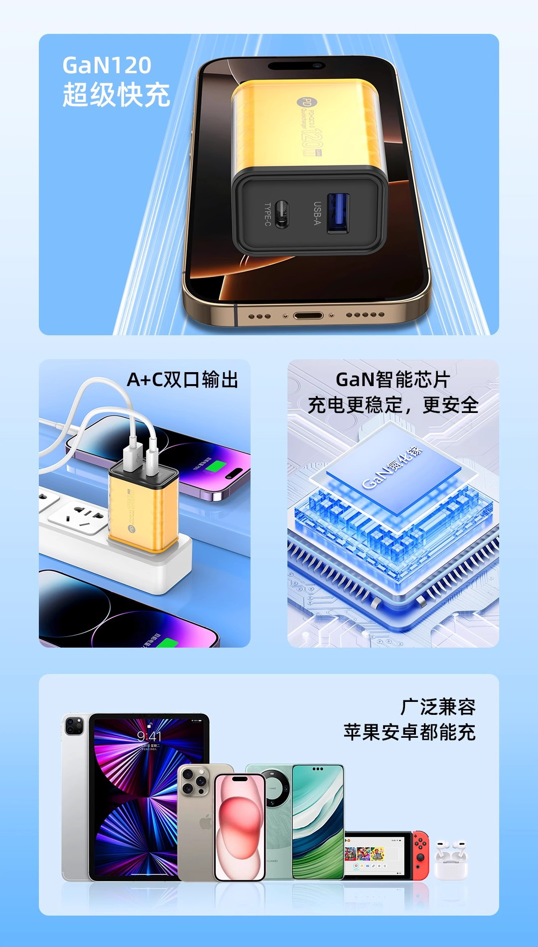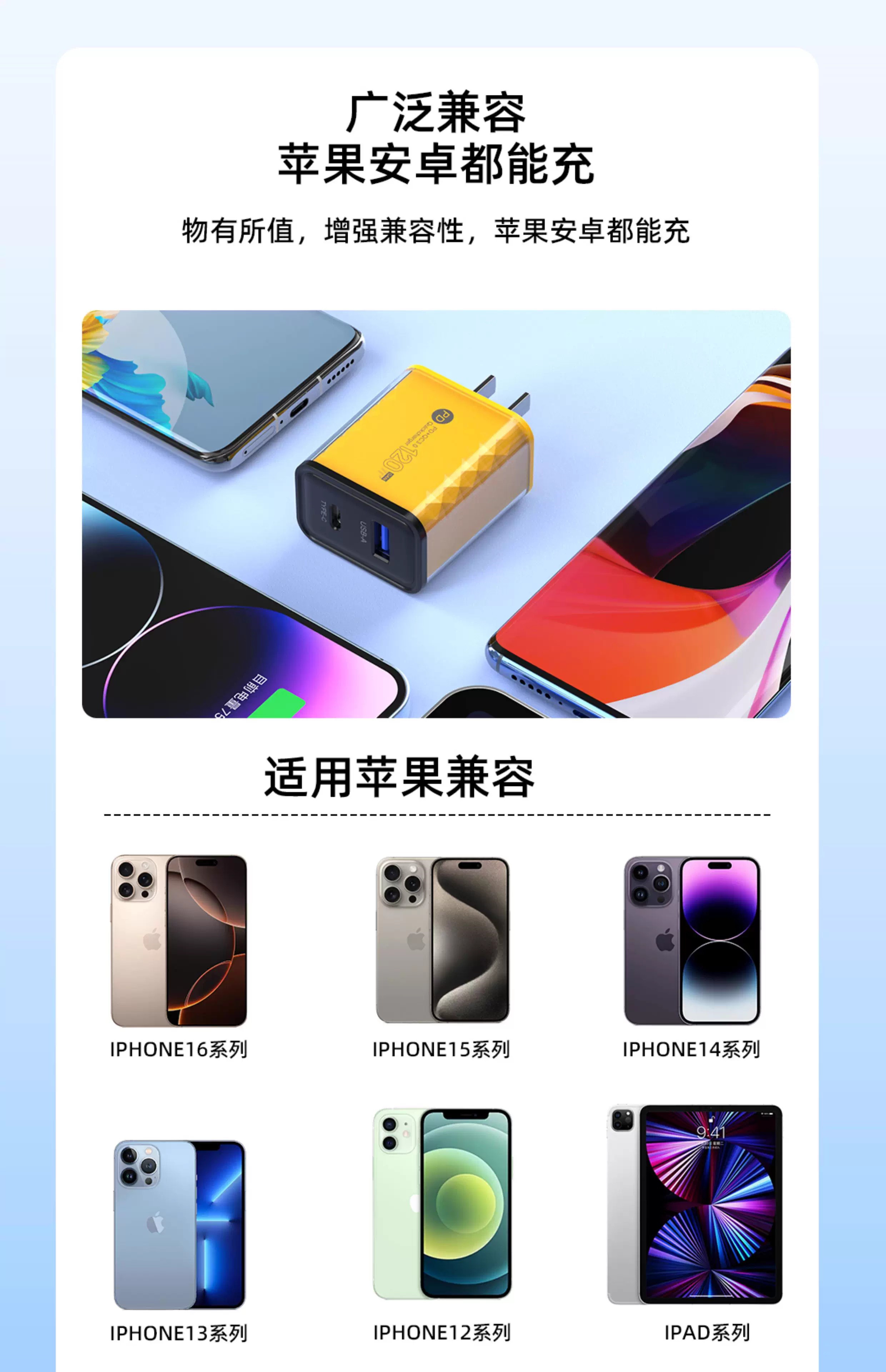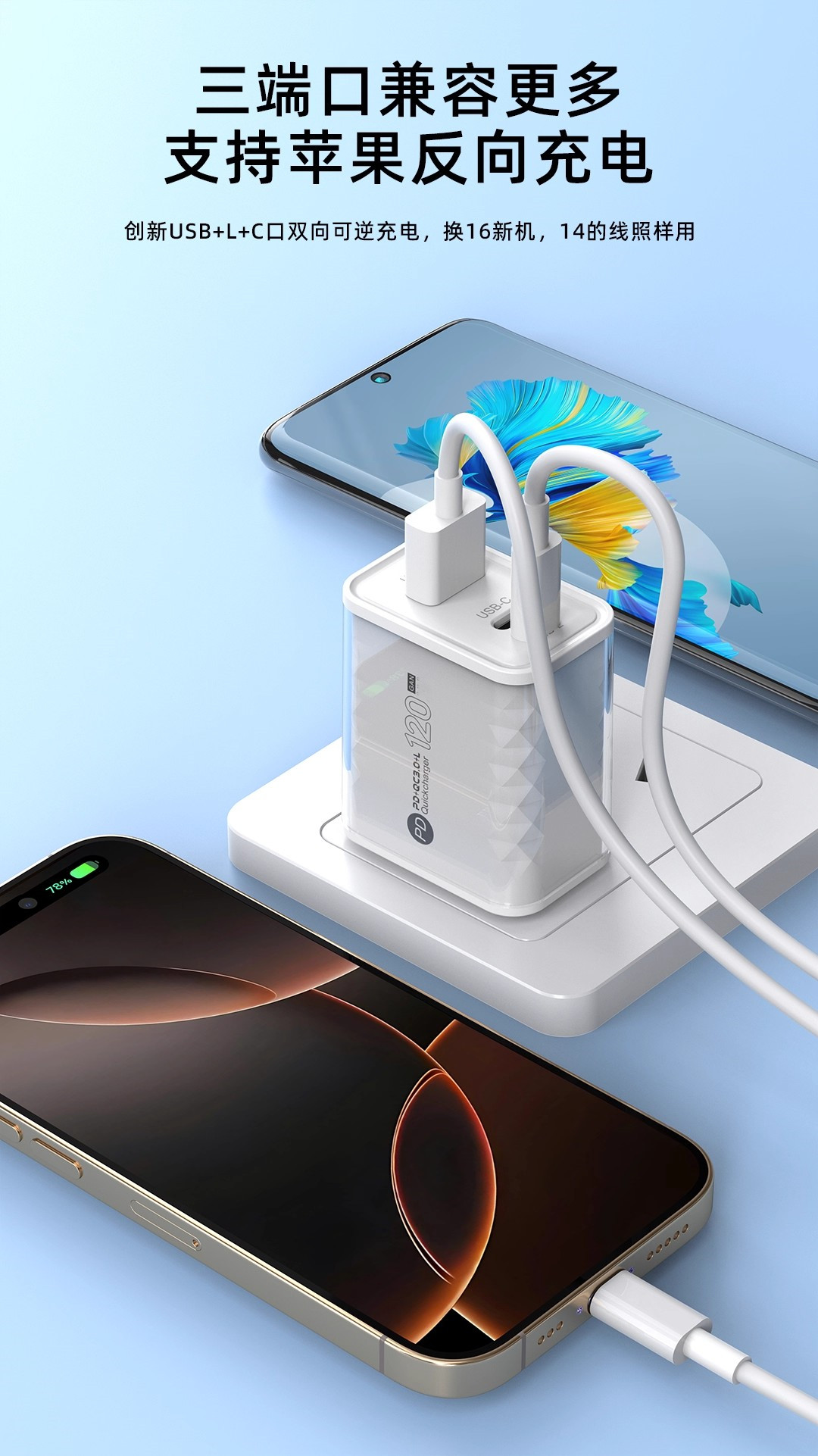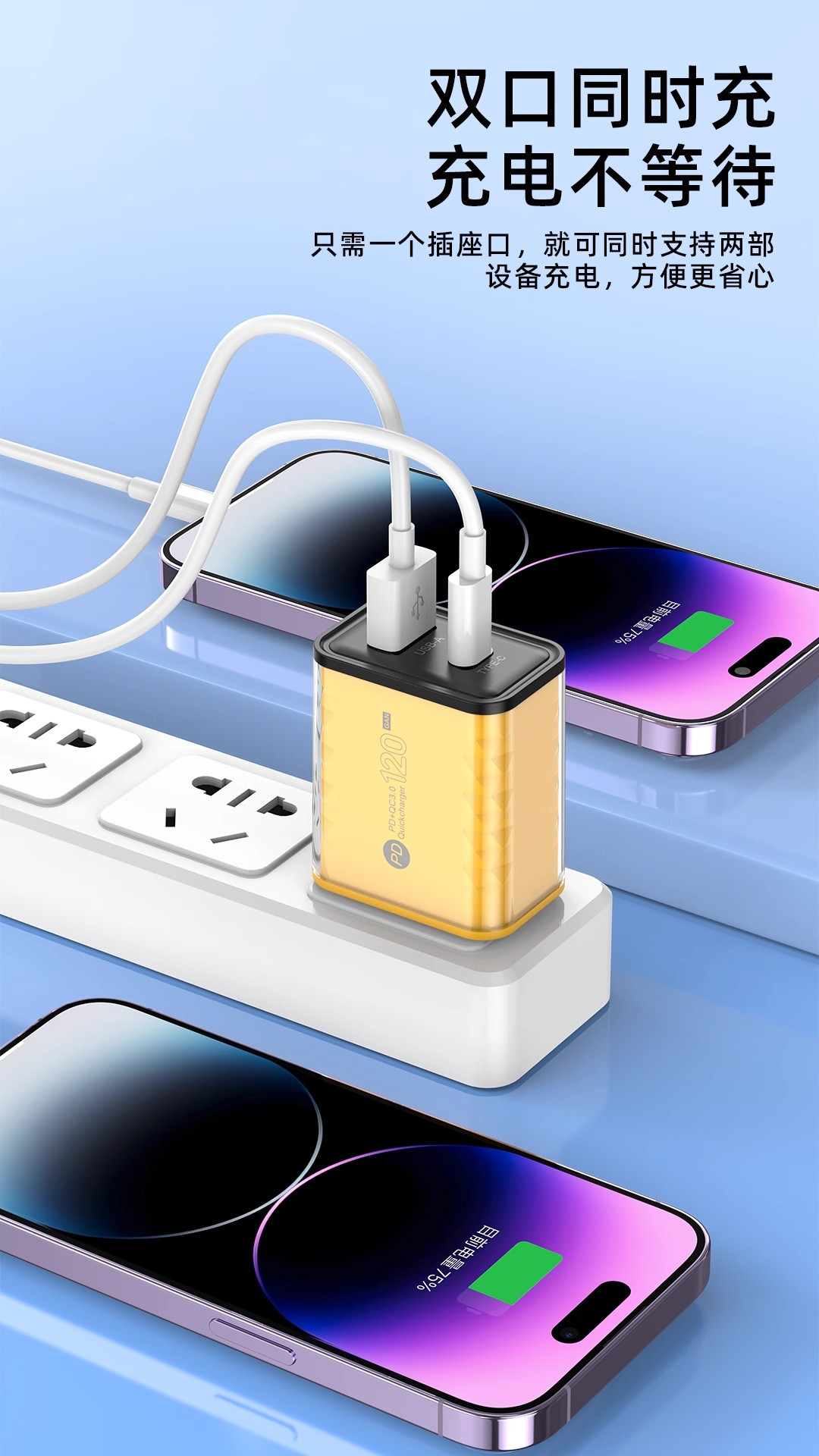 120W Charging Head Suitable for Huawei Honor Xiaomi Oppo Fast Charging Android 15 Suitable for Apple 16 Mobile Phone Charger Dual Port Multi-Port USB Plug Universal Charger 100W66W Super Flash Charging
