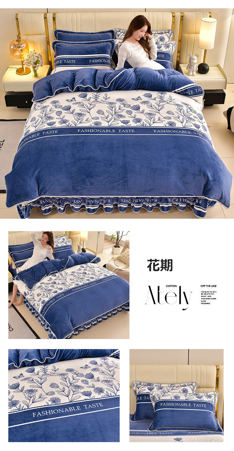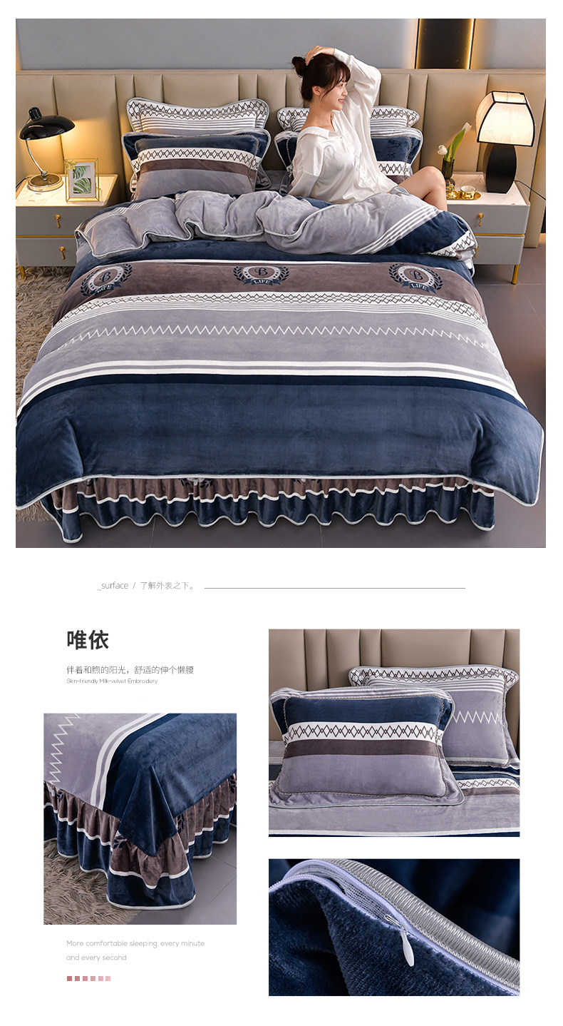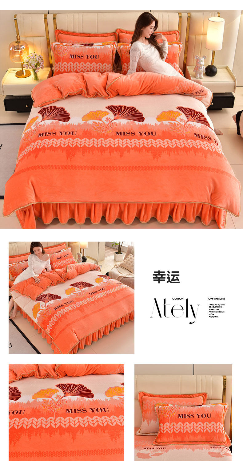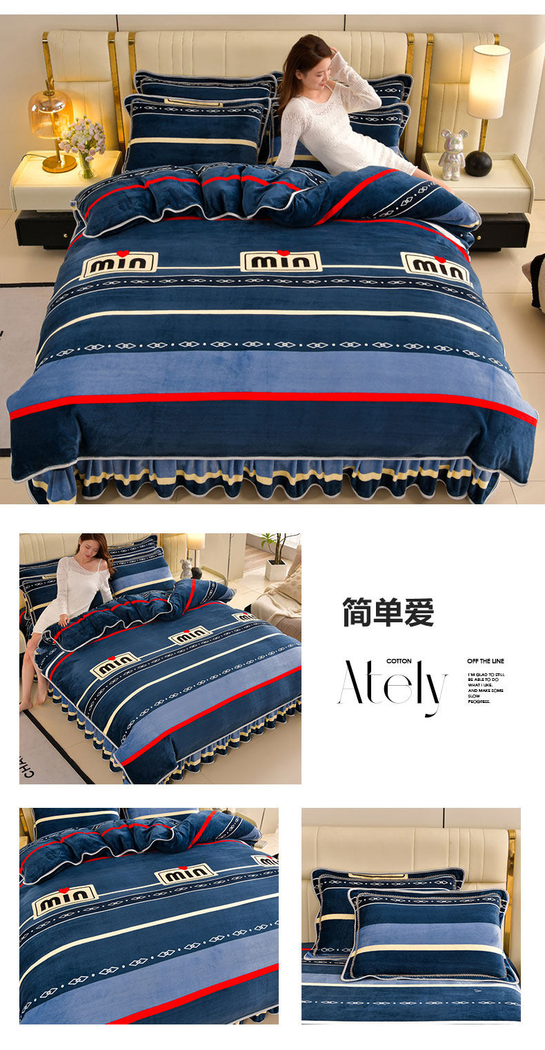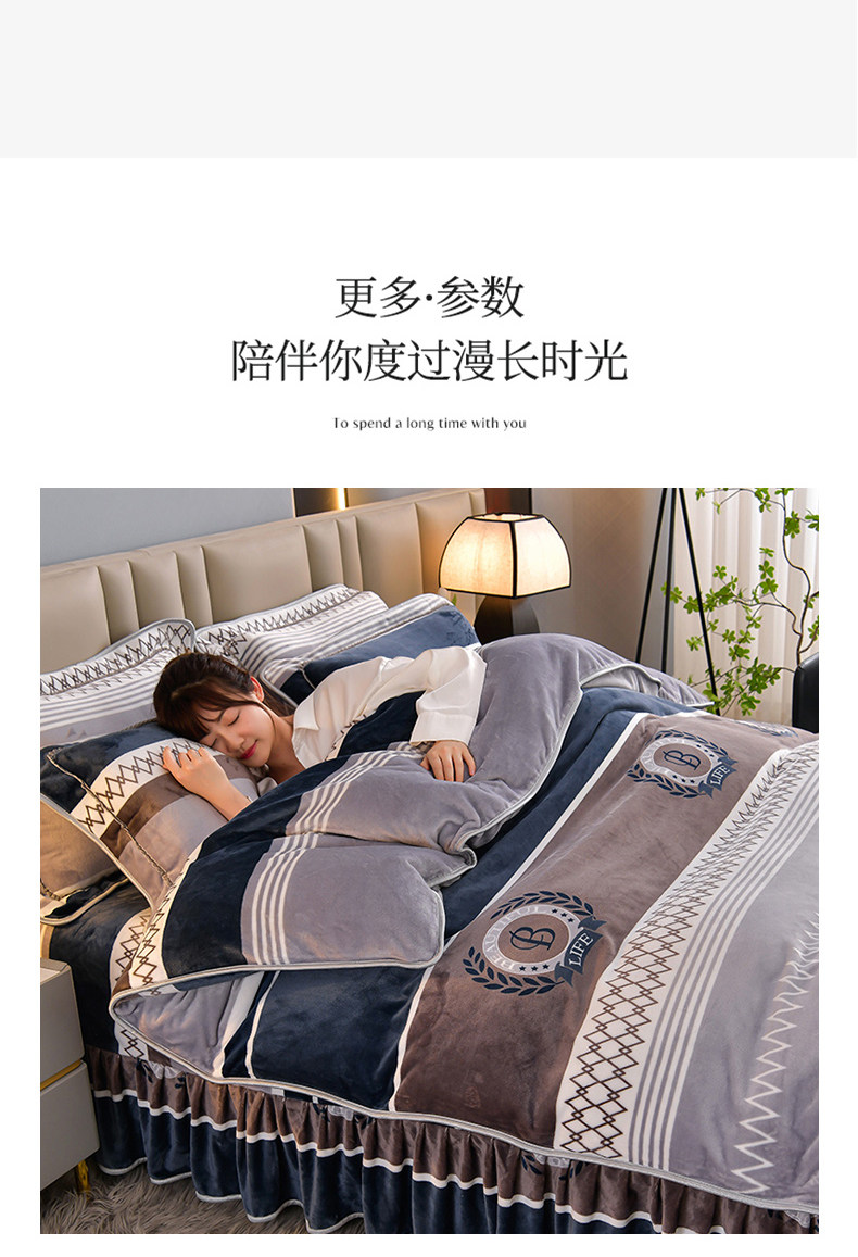 Thickened Milk Velvet Four-Piece Set, Winter Warm Double-Sided Coral Velvet Duvet Cover, Flannel Bed Sheet, Bed Skirt, Bedding