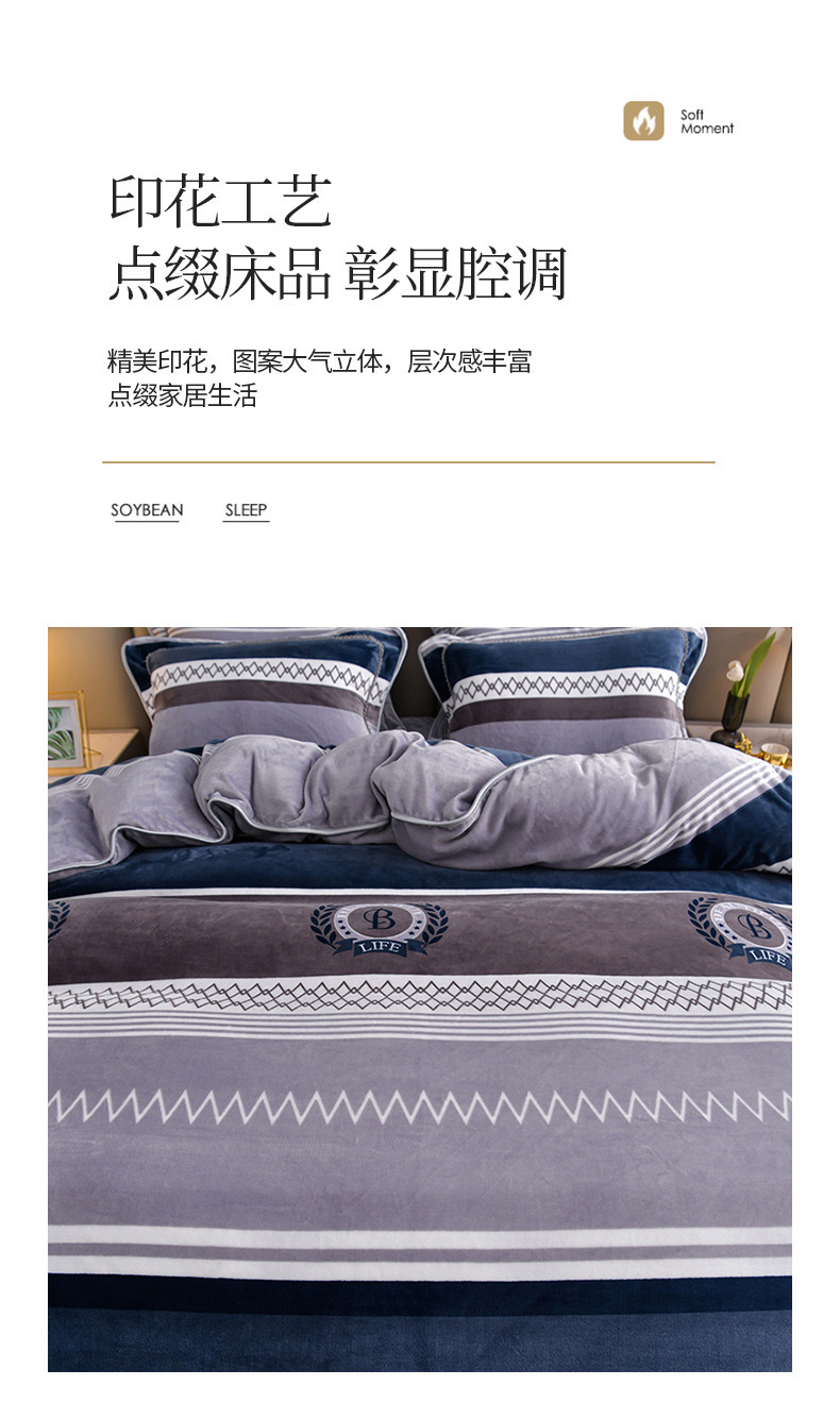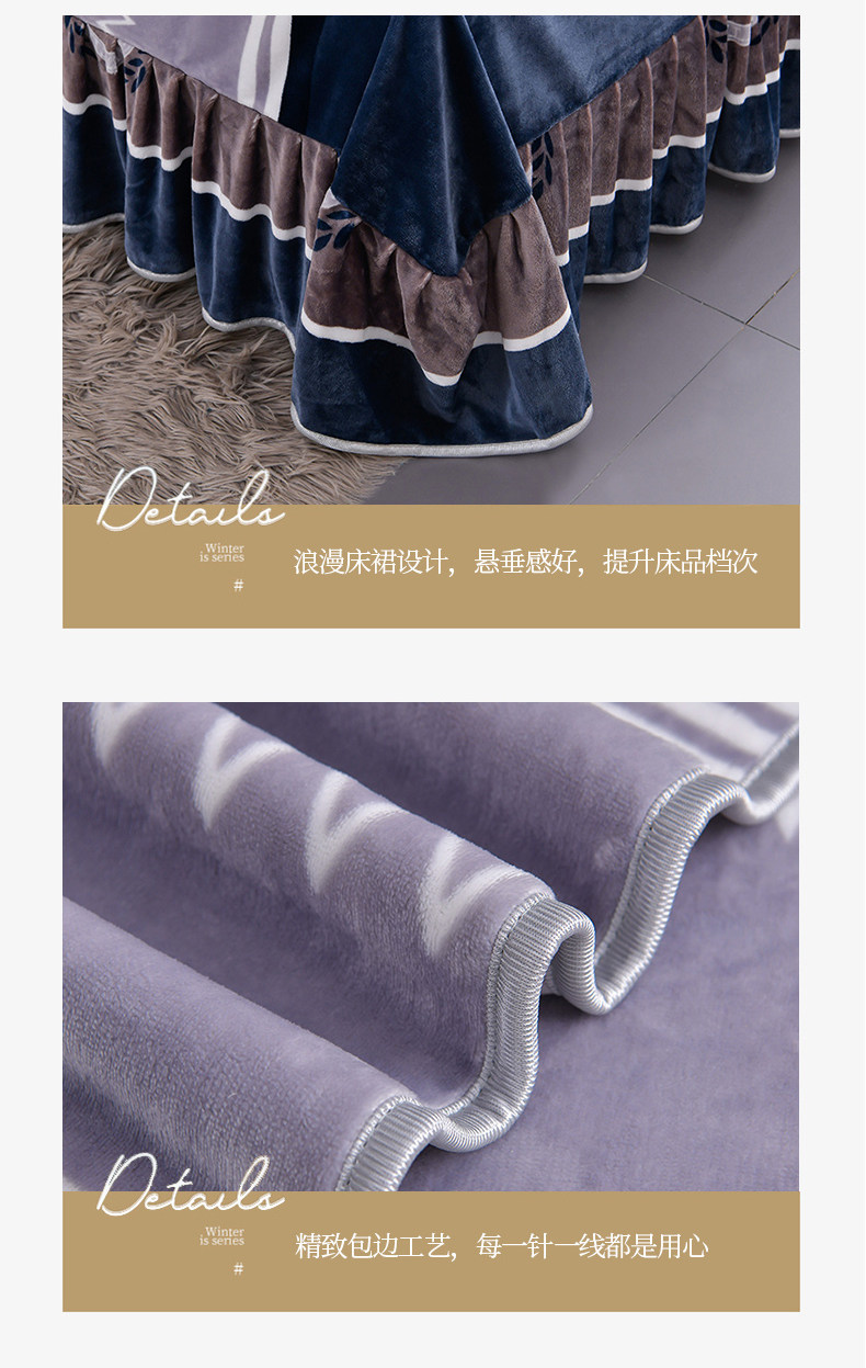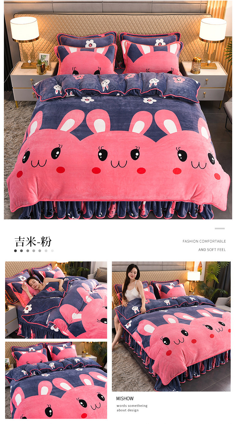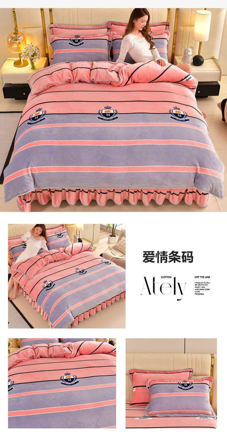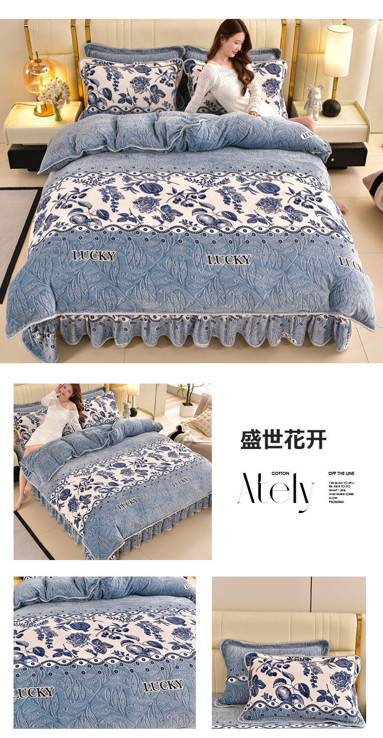 Thickened Milk Velvet Four-Piece Set, Winter Warm Double-Sided Coral Velvet Duvet Cover, Flannel Bed Sheet, Bed Skirt, Bedding