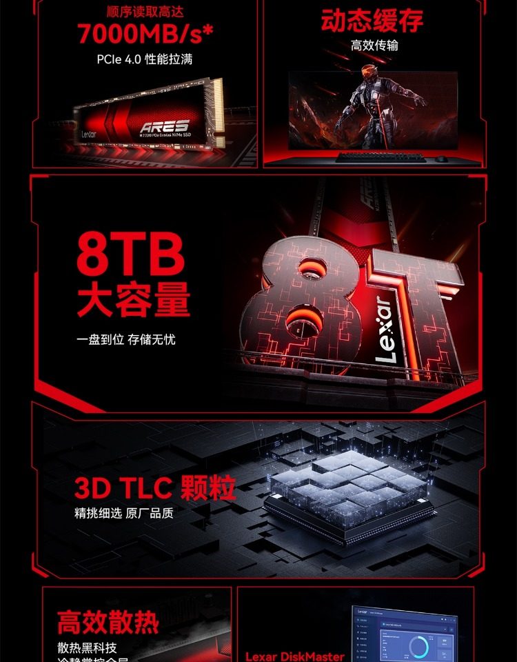 Lexar Ares 8t Solid State Drive M.2 Nvme Large Capacity Laptop Desktop Computer Ssd