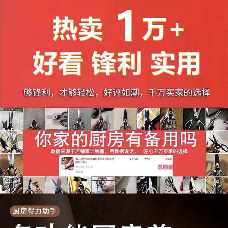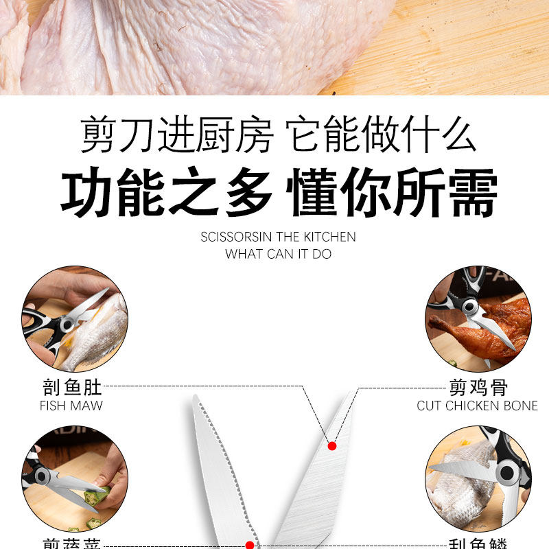 Kitchen Scissors for Home Use, Sharp and Powerful, Suitable for Cutting Chicken, Duck, Goose, Fish Bones, Stainless Steel Multifunctional Scissors, Special Scissors for Baby Food