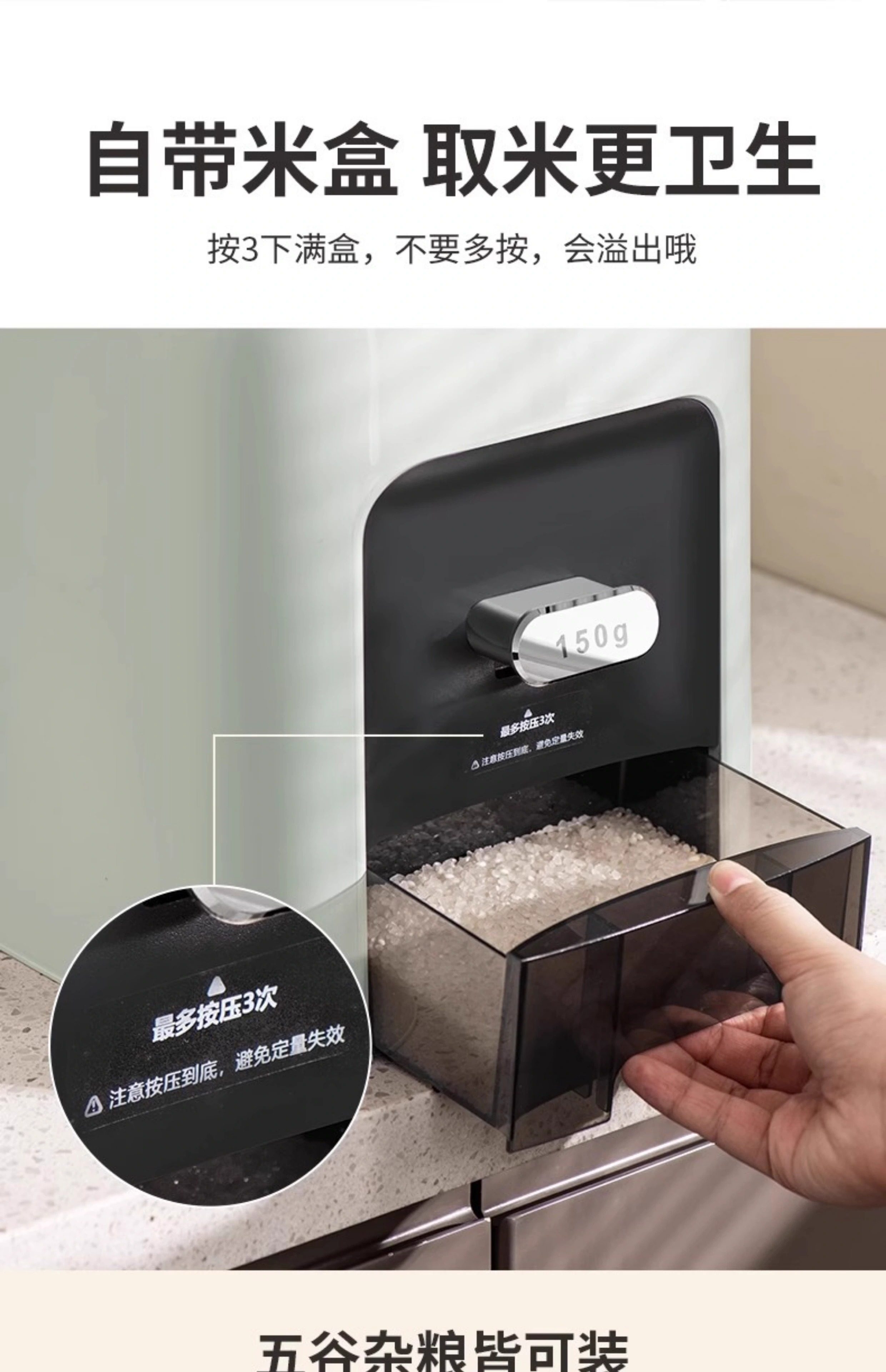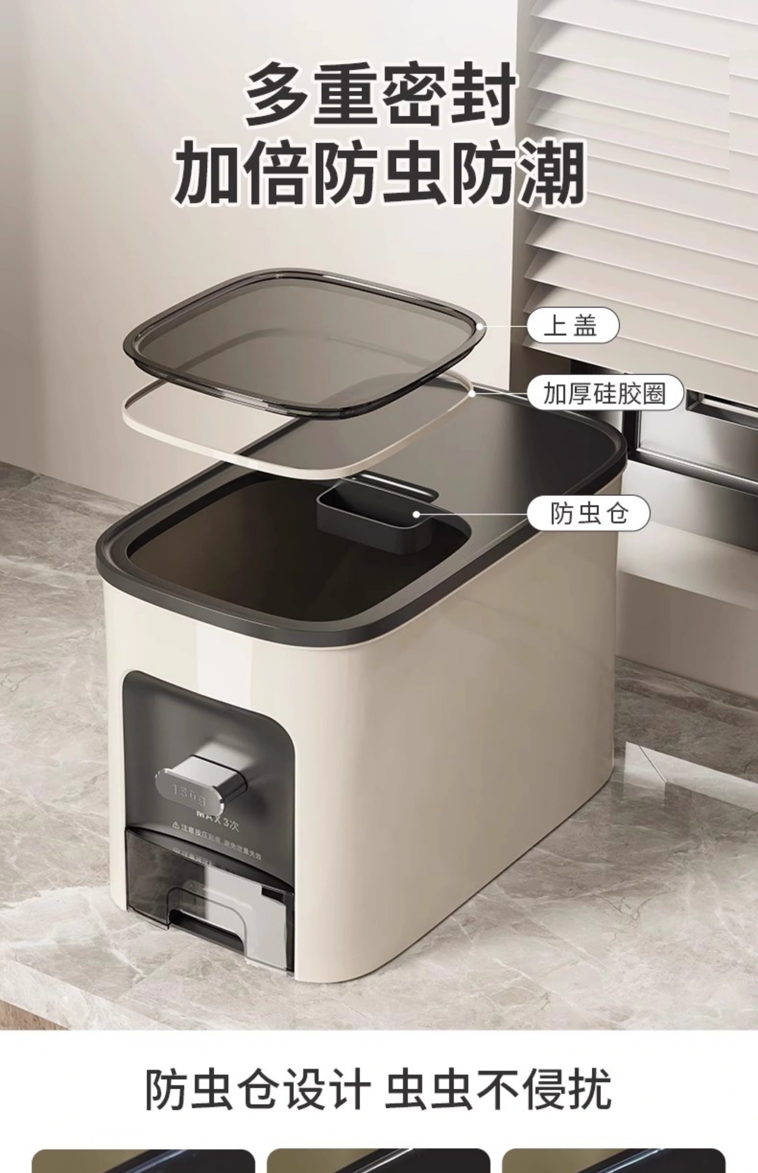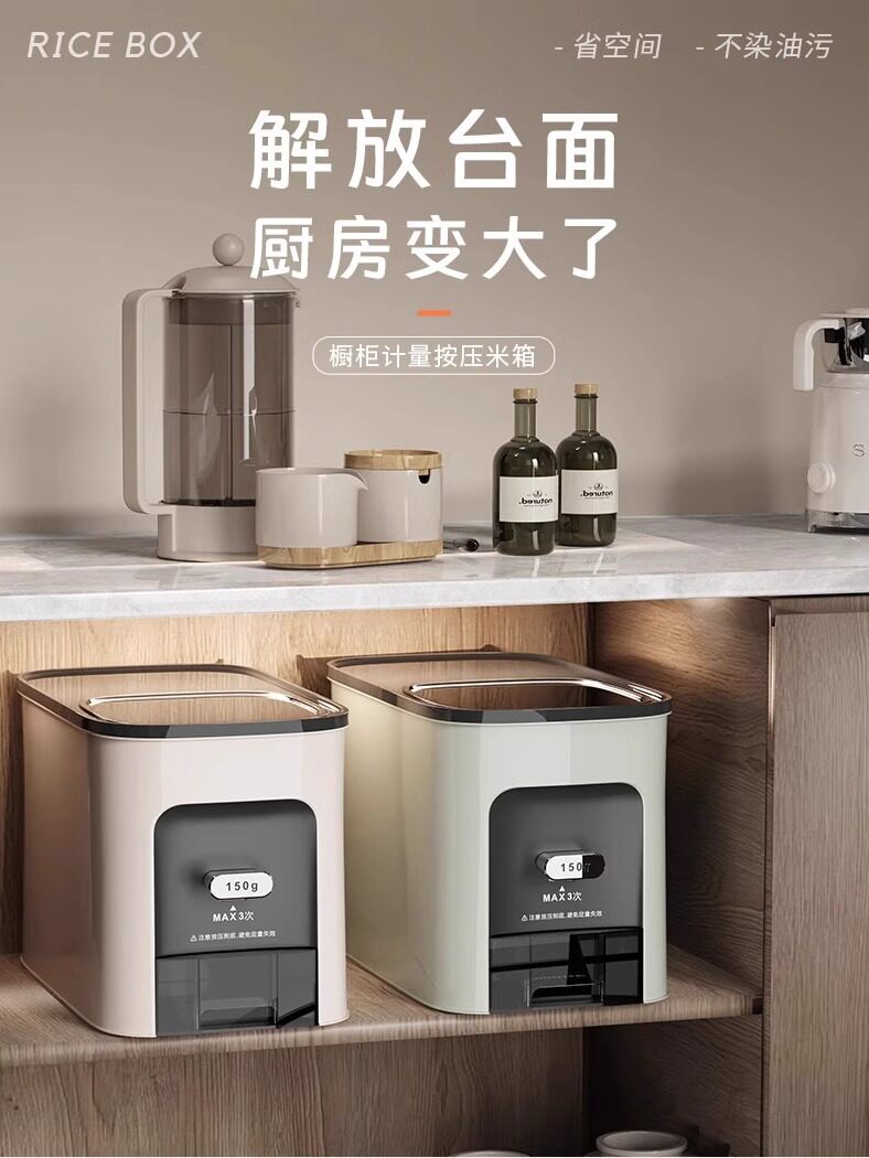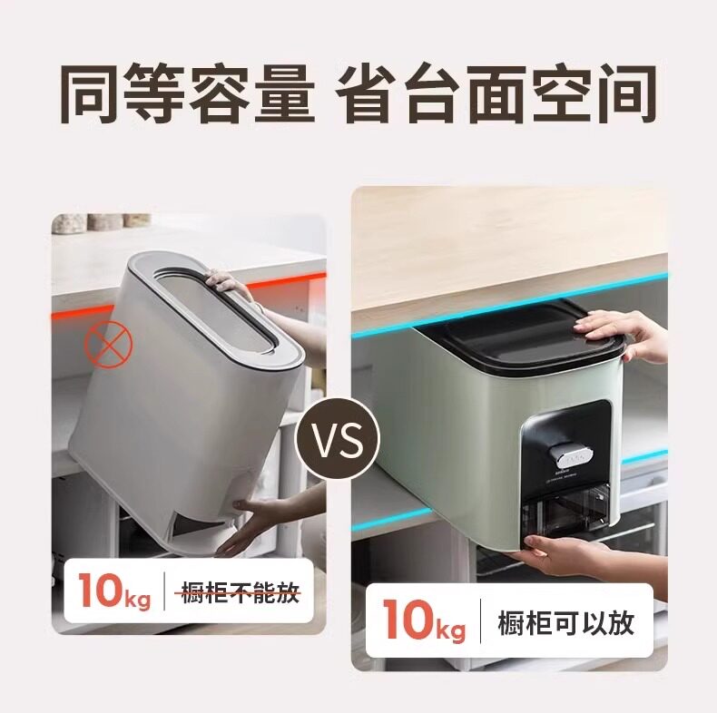 German Fae High-End Cabinet-Mounted Rice Container for Home Use 10kg Insect-Proof, Moisture-Proof, Sealed Food-Grade Rice Box, Built-In Rice Tank