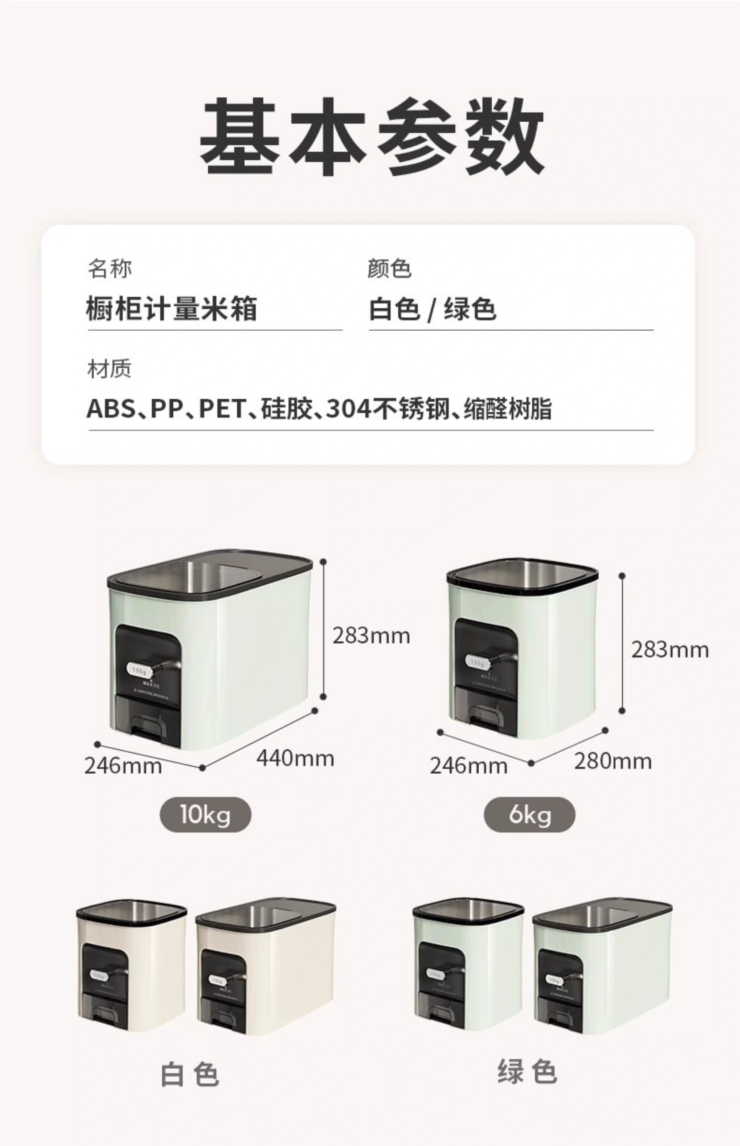 | Color Classification | 【No Stuck Rice, Precise Measuring】 6kg Mint Green Rice Dispenser for Kitchen Cabinets,【No Stuck Rice, Measured Rice Dispensing】 6kg Cream White Rice Dispenser for Kitchen Cabinets,【No Stuck Rice, Precise Measuring】 10kg Mint Green Rice Dispenser for Kitchen Cabinets,【No Stuck Rice, Measured Rice Dispensing】 10kg Cream White Rice Dispenser for Kitchen Cabinets |
