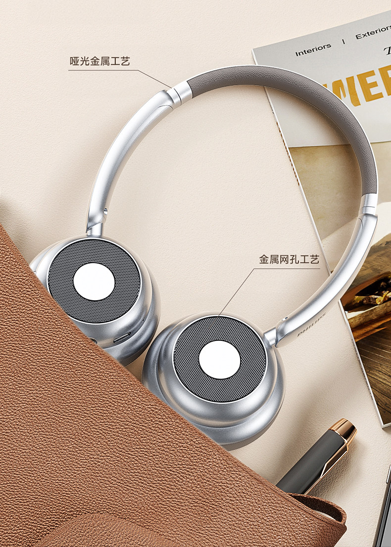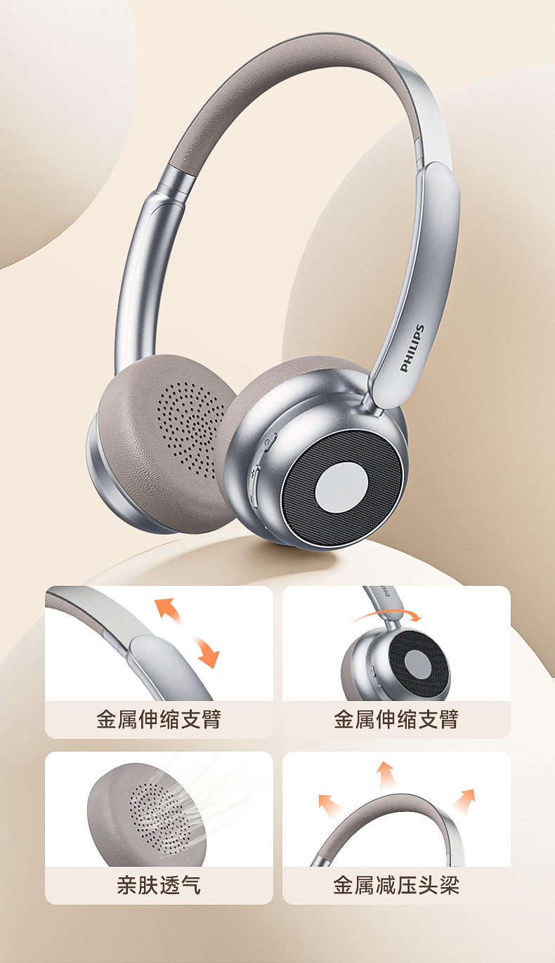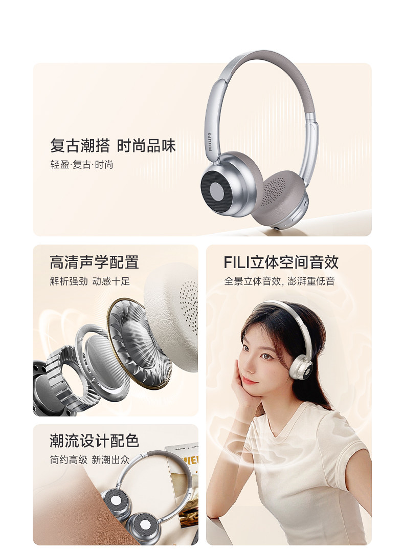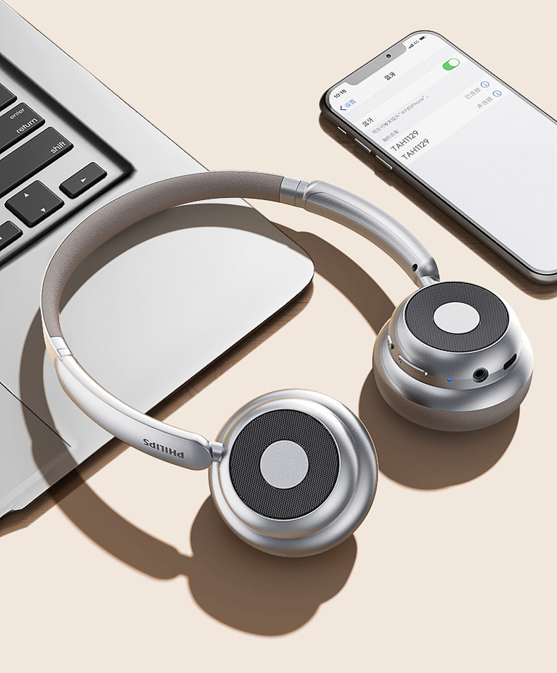 Philips Head-Mounted Wireless Bluetooth Noise-Canceling Headphones Tah1129 Girls Retro Compact Silver Fashion New Model