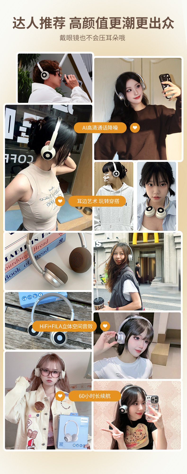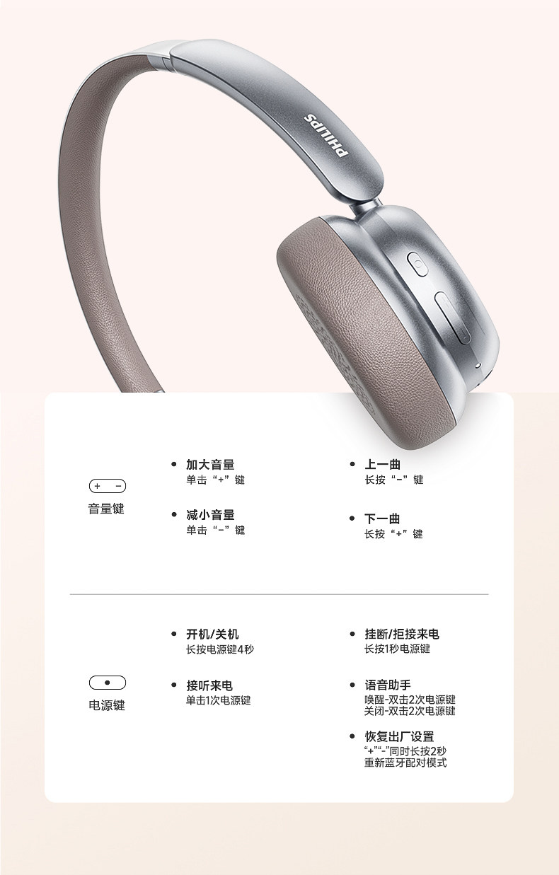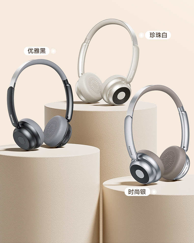 Philips Head-Mounted Wireless Bluetooth Noise-Canceling Headphones Tah1129 Girls Retro Compact Silver Fashion New Model