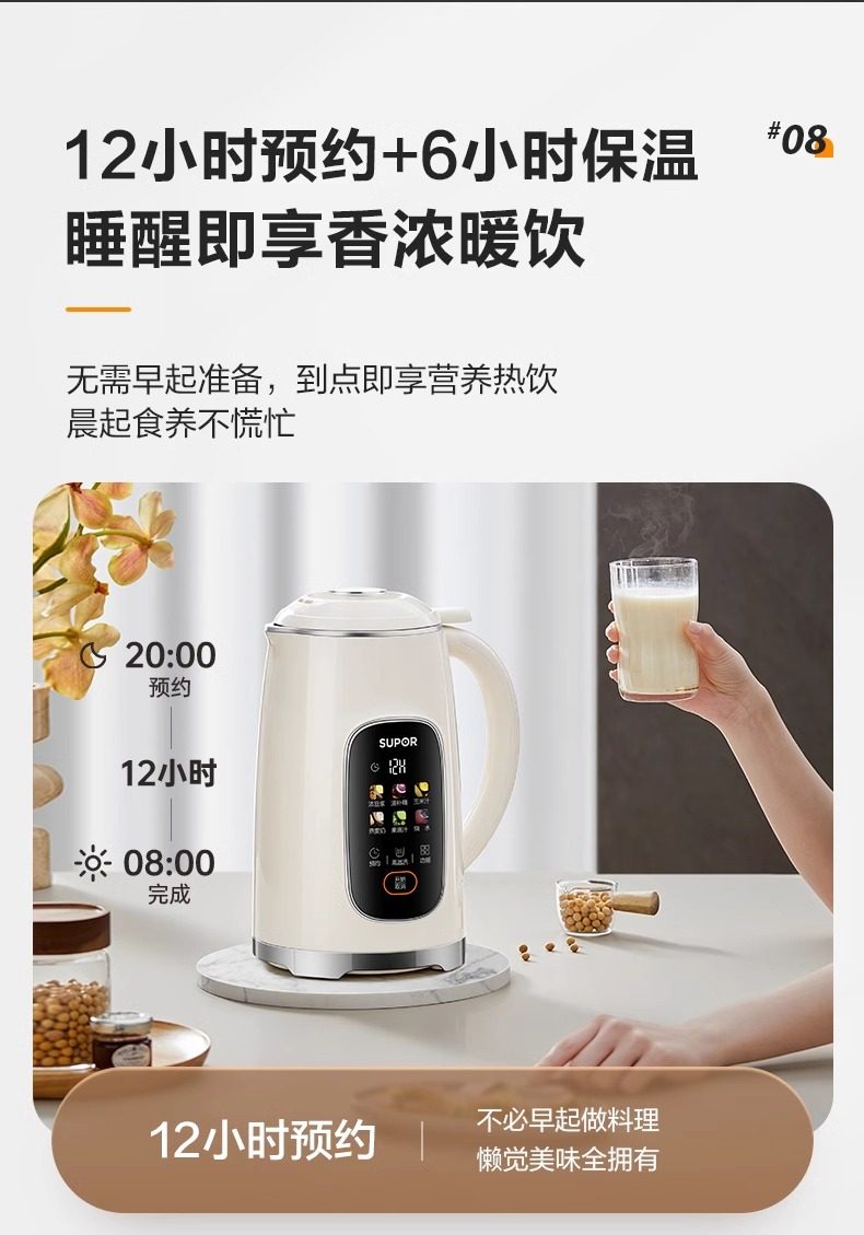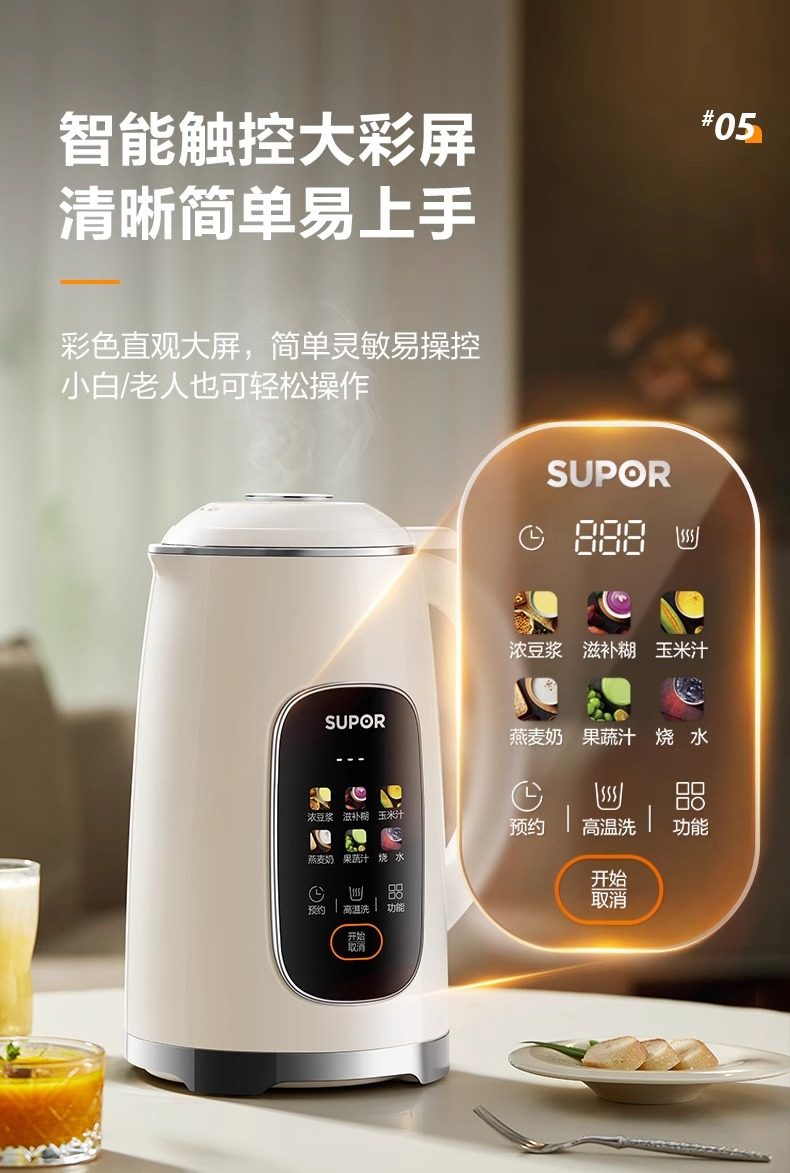 Supor Household Fully Automatic Silent Residue-Free Filter-Free No-Cook Multifunctional Soy Milk Maker 2025 New Flagship Model