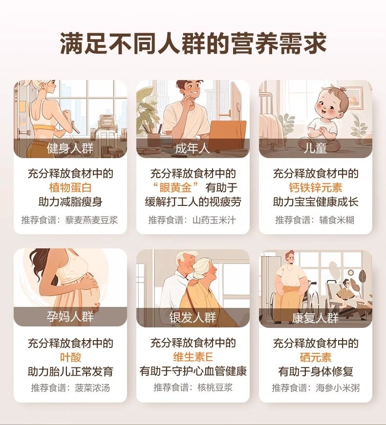 | Basic Functions | Supplementary Food,Slow Cooking,Milkshake,Crushed Ice,Soy Milk,Rice Cereal,Polishing,Juice,Self-Cleaning,Thick Soup,Corn Juice |