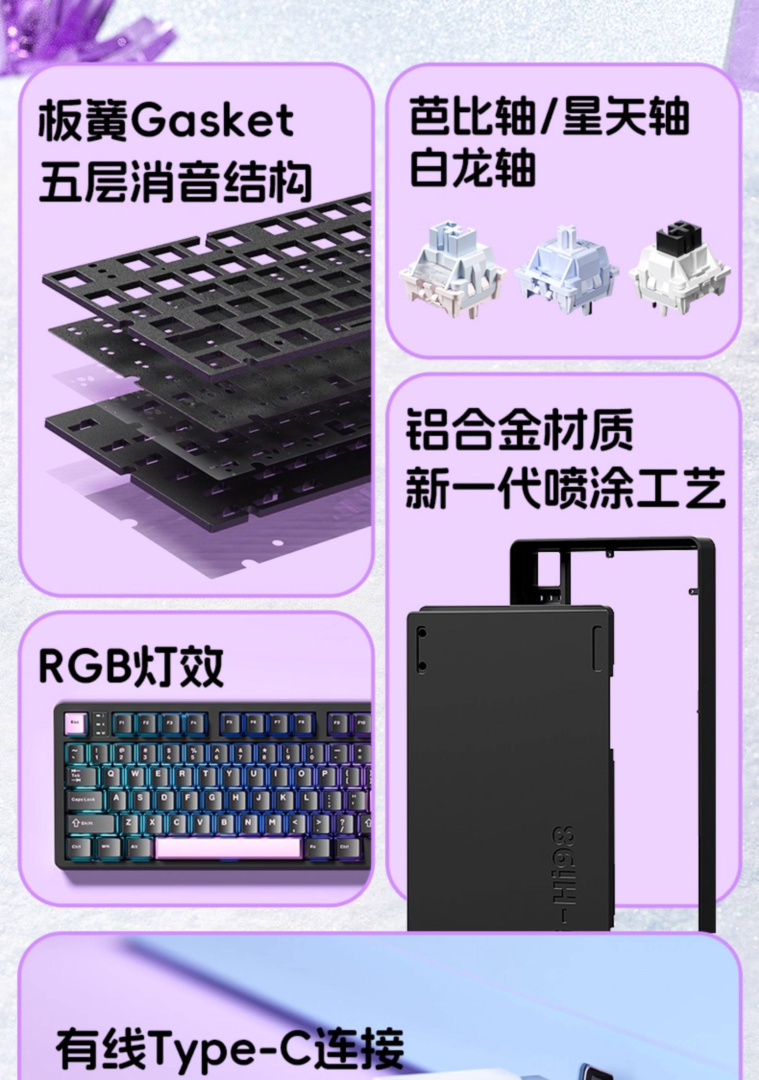 | Color Classification | Ink Black[White Dragon Axis]-Wired and Lightless-Youth Edition,Light Cloud White[Star Axis]-Wired Rgb-Youth Edition,Nebula Purple[Star Axis]-Wired Rgb-Youth Edition,Nebula Purple[Barbie Axis]-Wired Rgb-Youth Edition,Spray Coating - Obsidian Black (Rambo Switch) - 8000Mah Battery,Spray-Painted - Ice Crystal Blue Side Engraving (Rambo Shaft) - 8000Mah Battery,Spray-Painting-Taoyao Powder (Barbie Shaft)-8000Mah Battery,Spray-Painted Phantom Black (Barbie Shaft)-8000Mah Battery,Spray Cloud Blue (Barbie Axis)-8000Mah Battery,Spray-Painted - Light Cloud White (Barbie Shaft) - 8000Mah Battery,Spray-Painted - Water-Polished Black (White Dragon Shaft) - 4000Mah Battery,Spray-Painted - Minimalist White (White Dragon Axis) - 4000Mah Battery,Hi98 Minimalist White[Wired and Lightless - White Dragon Axis],Hi98 Cloud Water Blue[Wired Rgb - Starry Axis] |